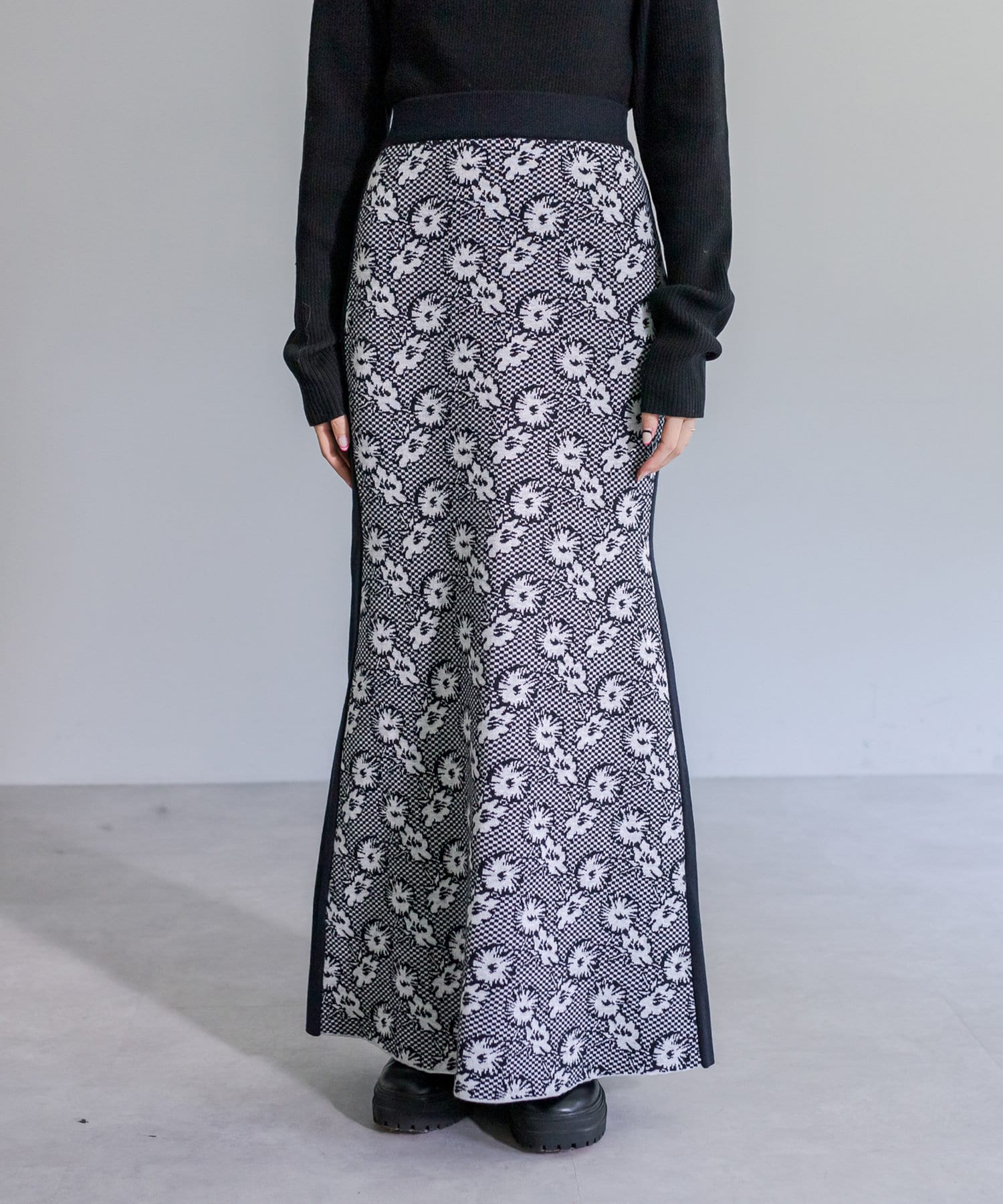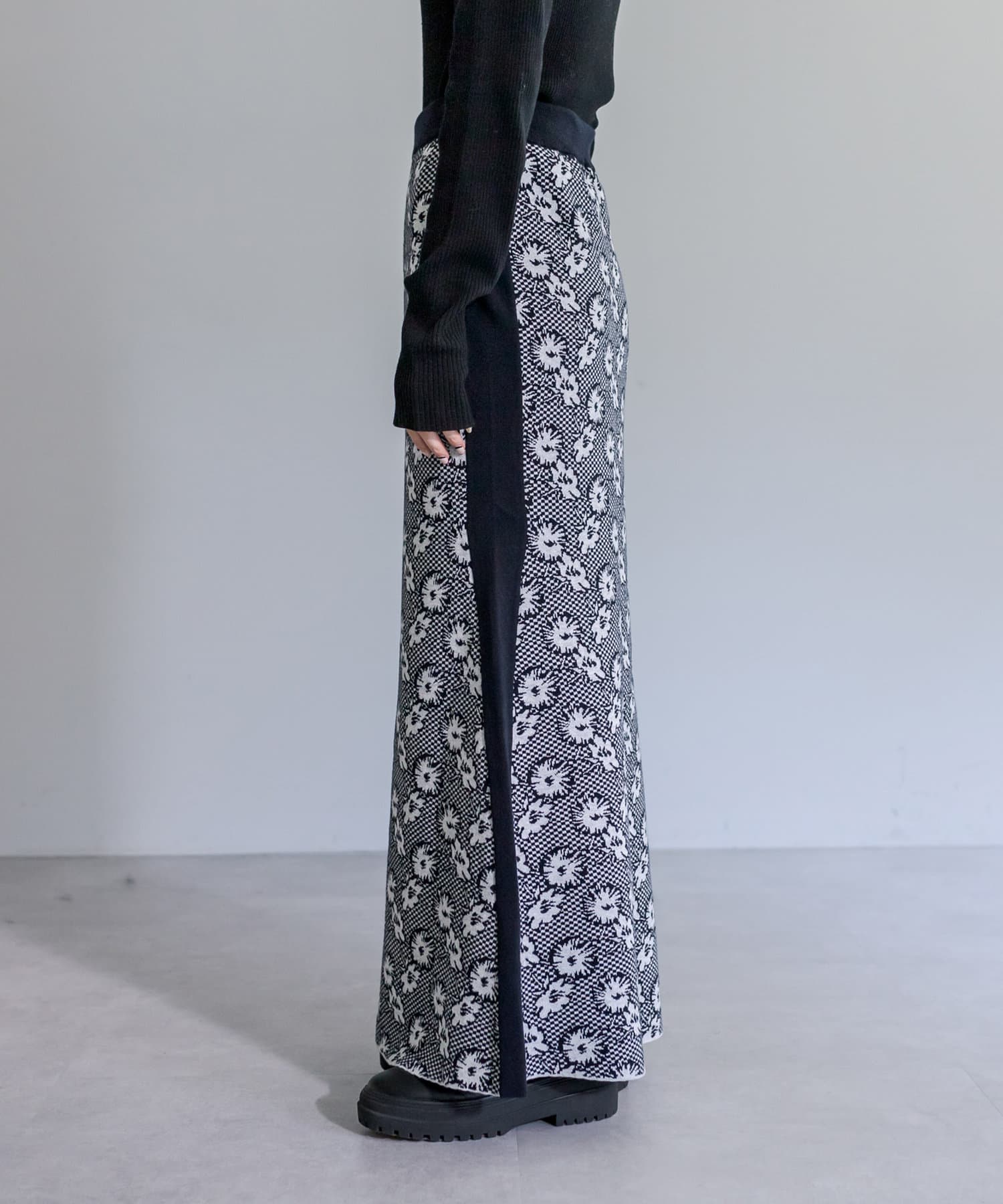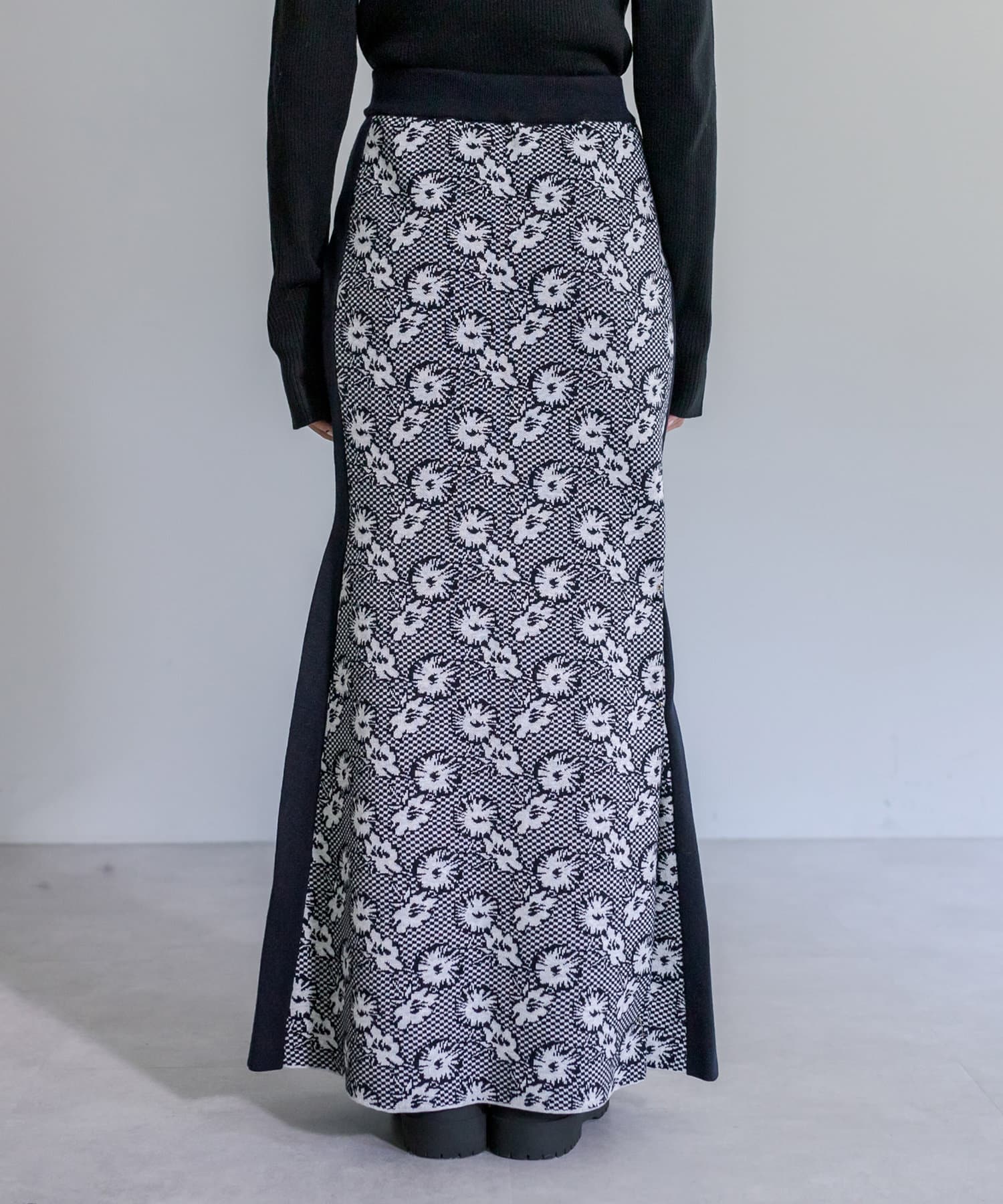 【サイズ展開あり】花柄ジャガードニットスカート