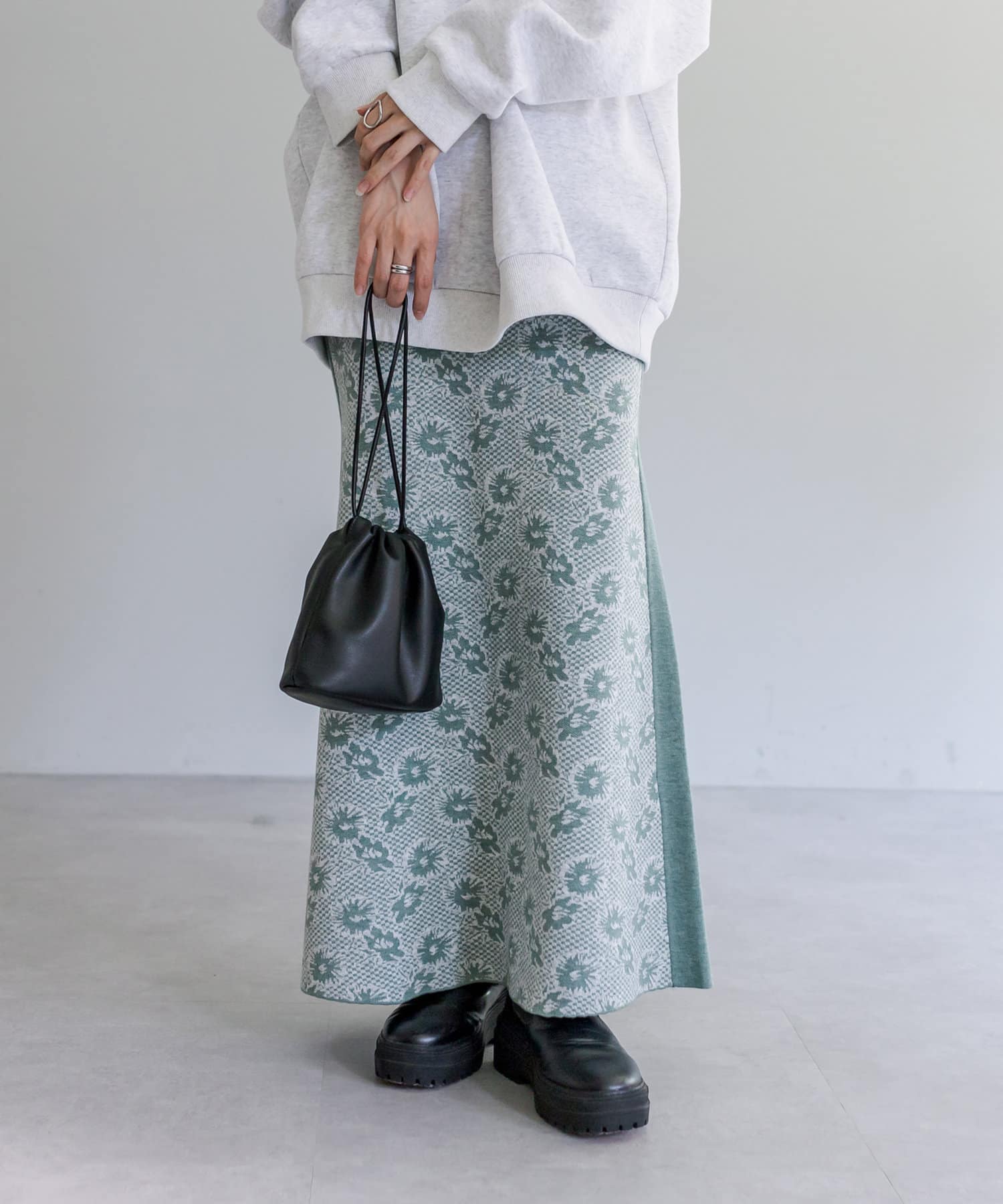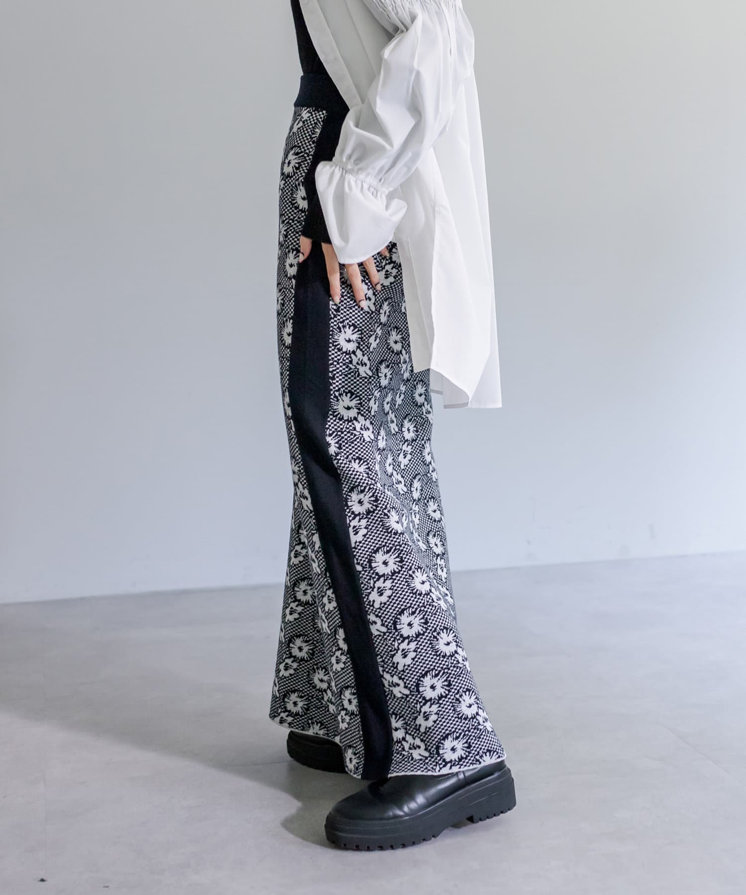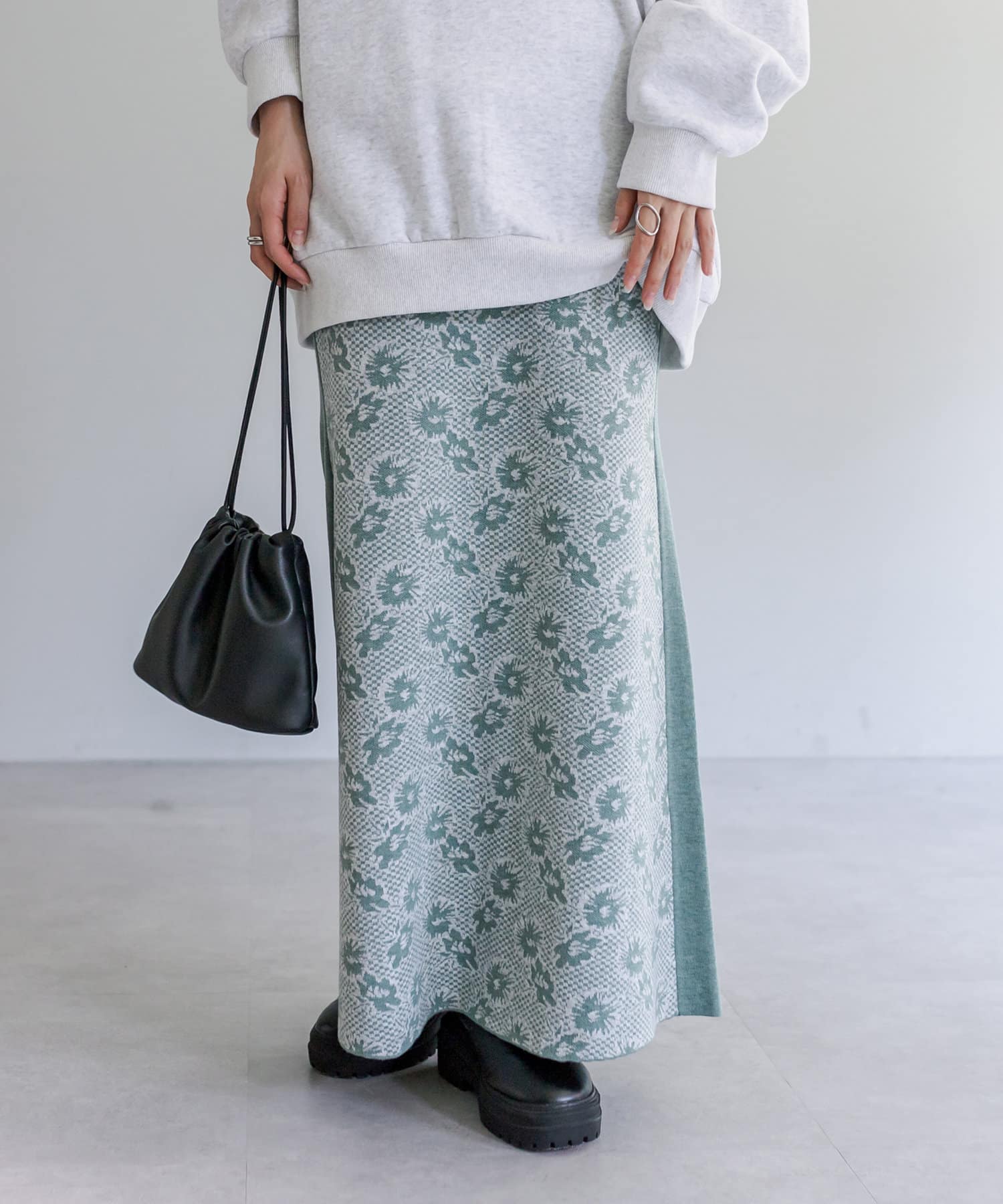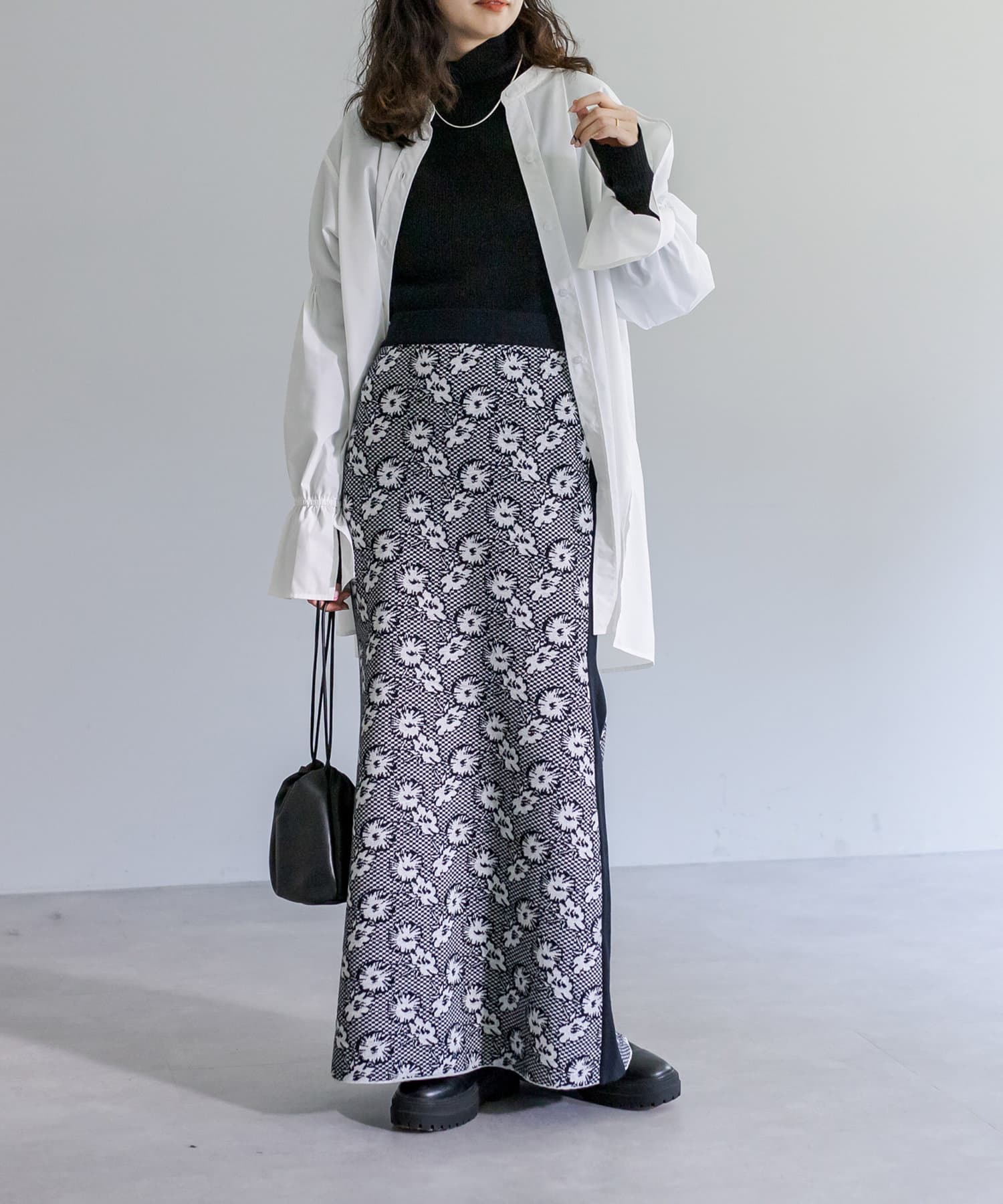 【サイズ展開あり】花柄ジャガードニットスカート