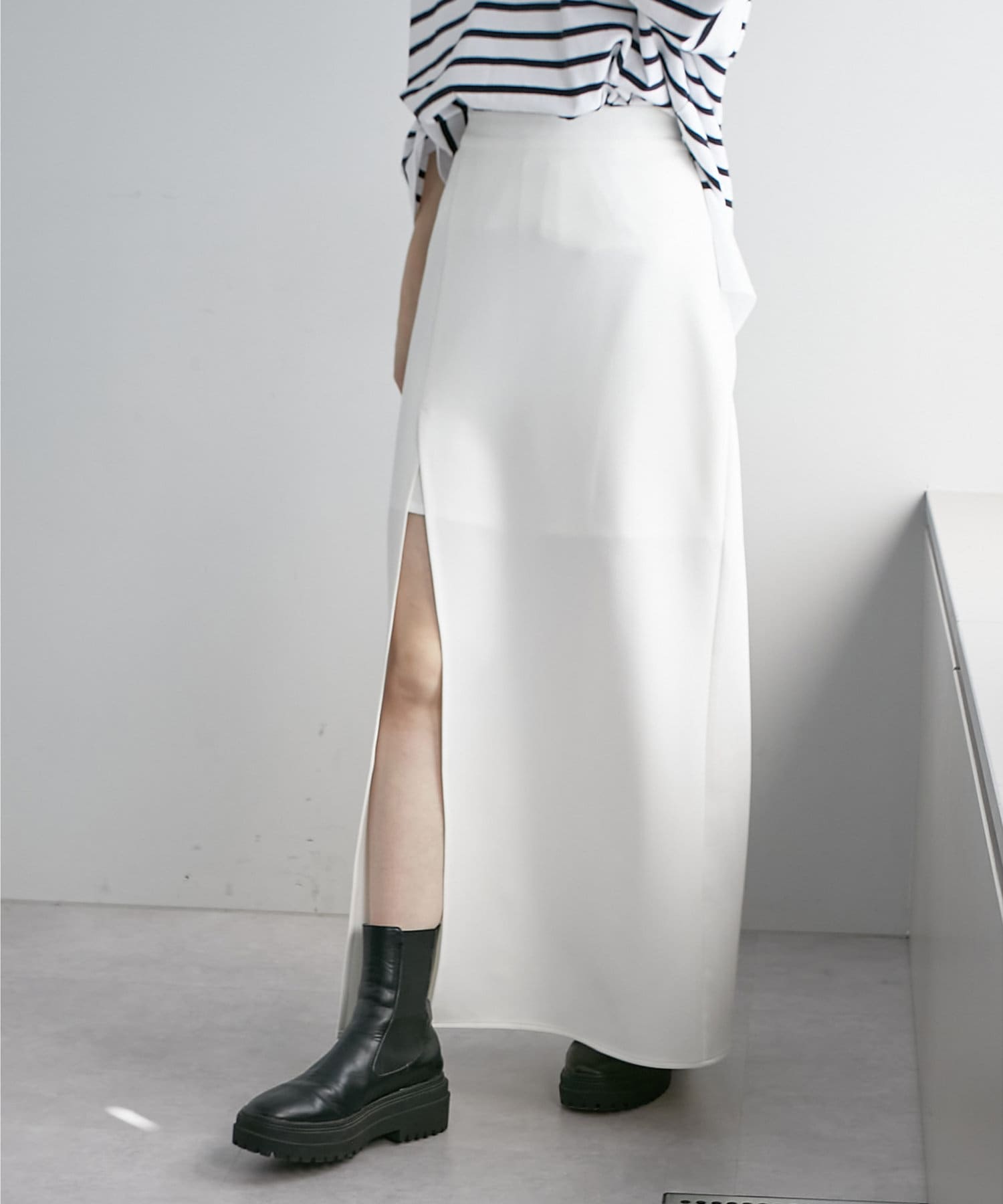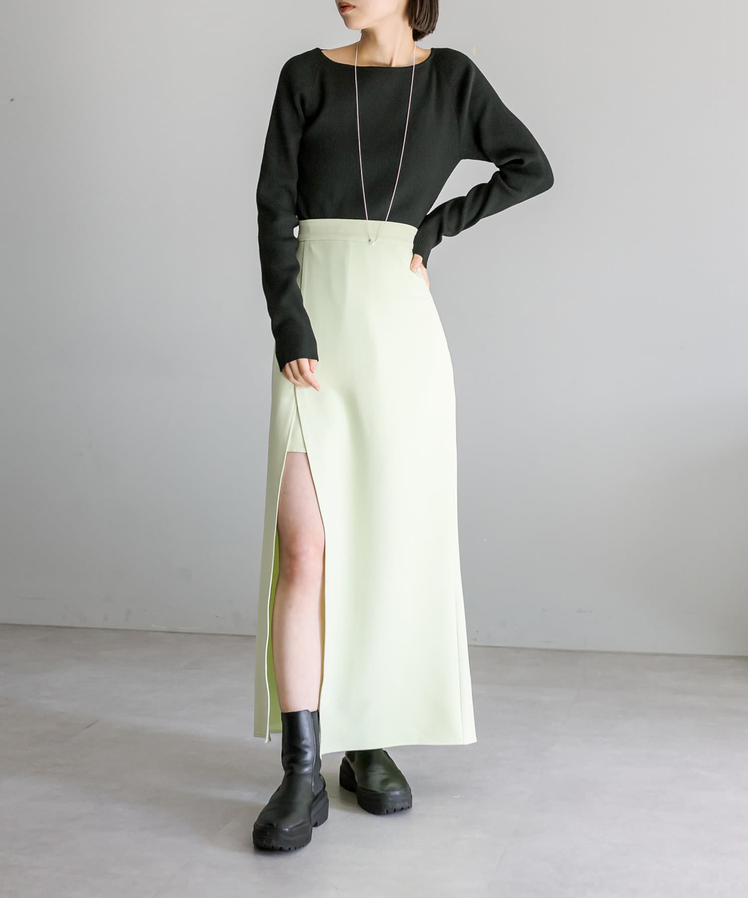 ・レイヤード風の深めのスリットデザインがポイントのロング丈のスカパンが登場!