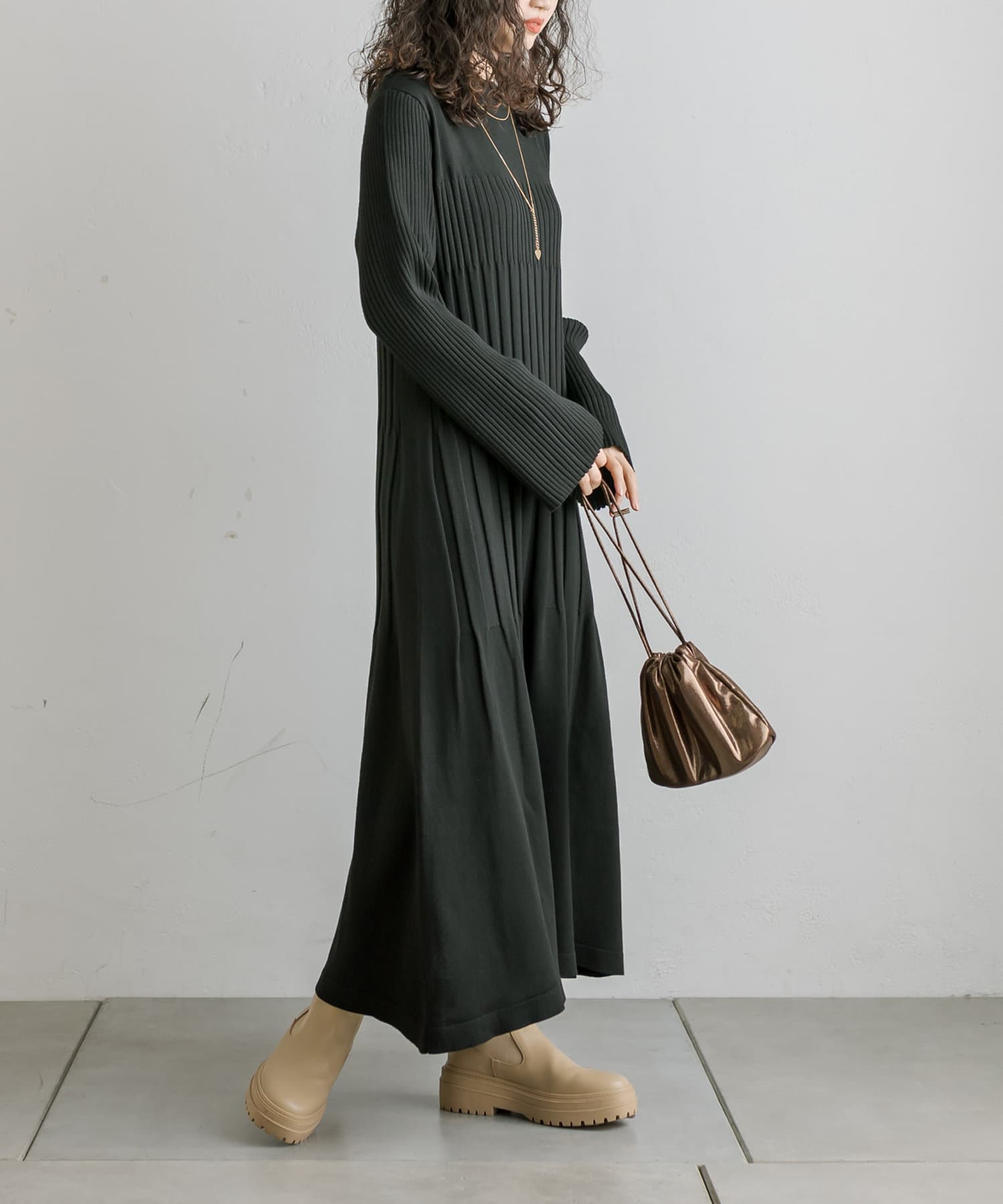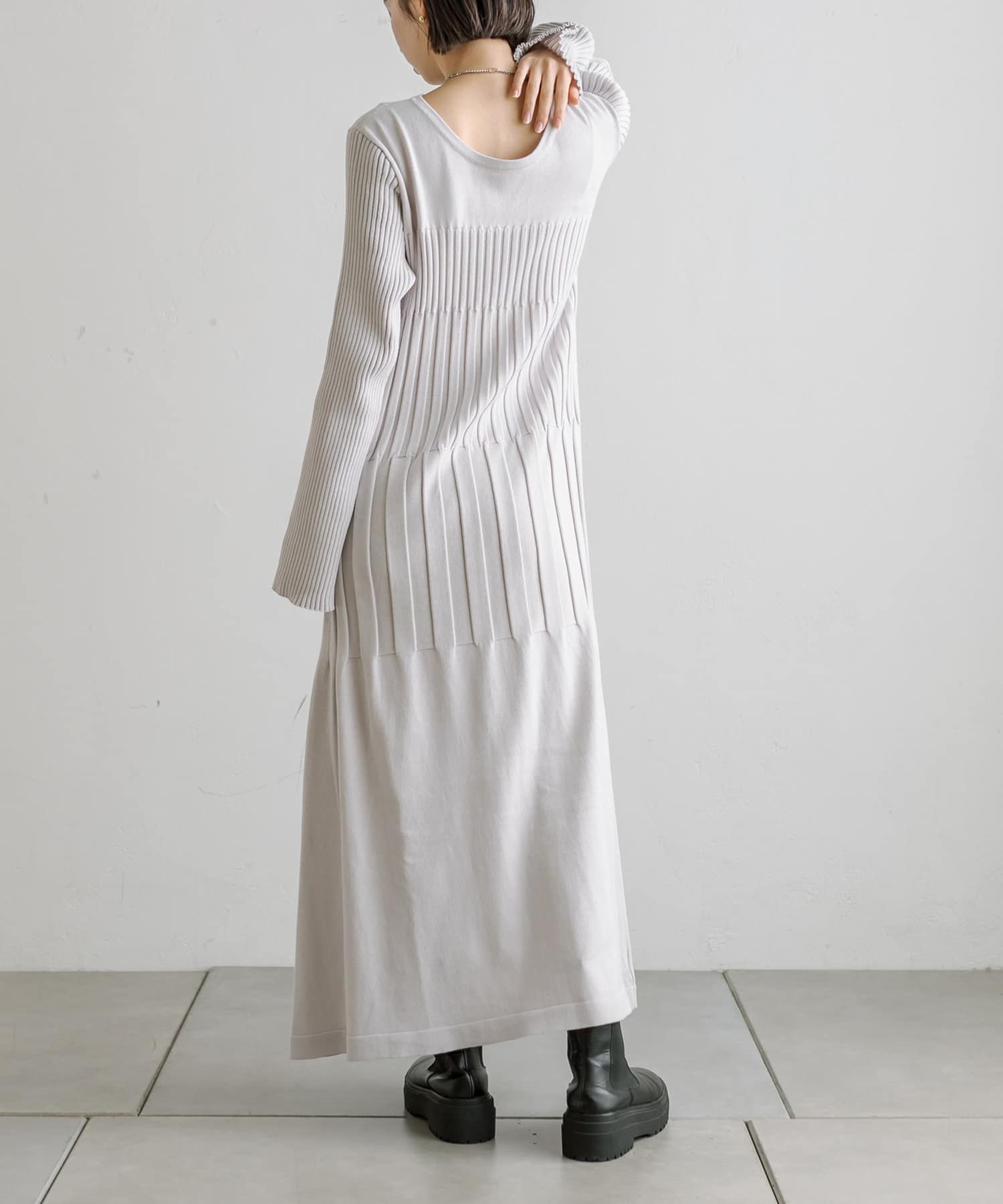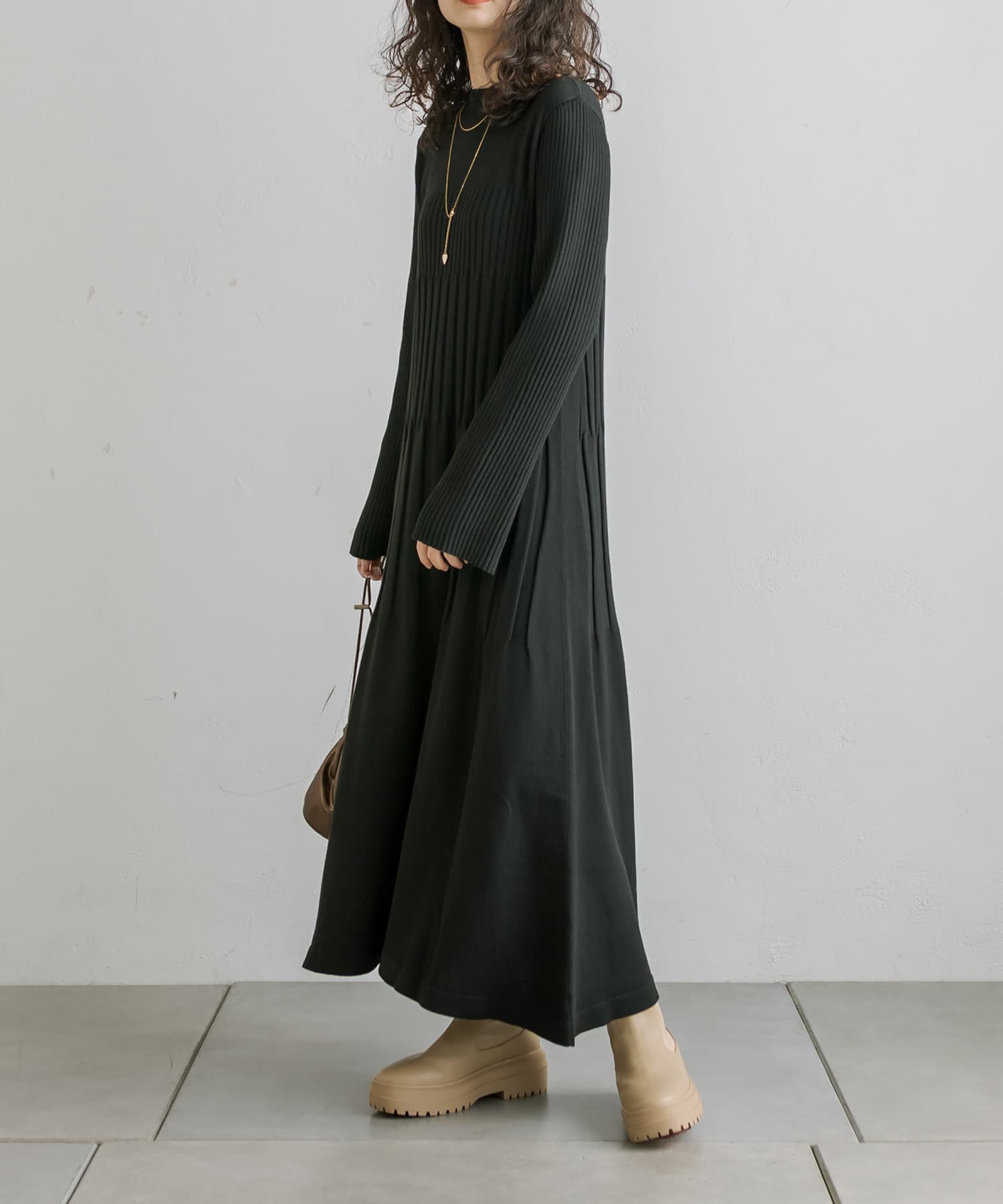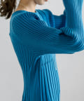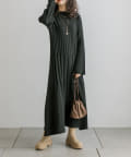 ・ウエストからボディラインにかけてすっきり見えるリブ素材のニットワンピース。