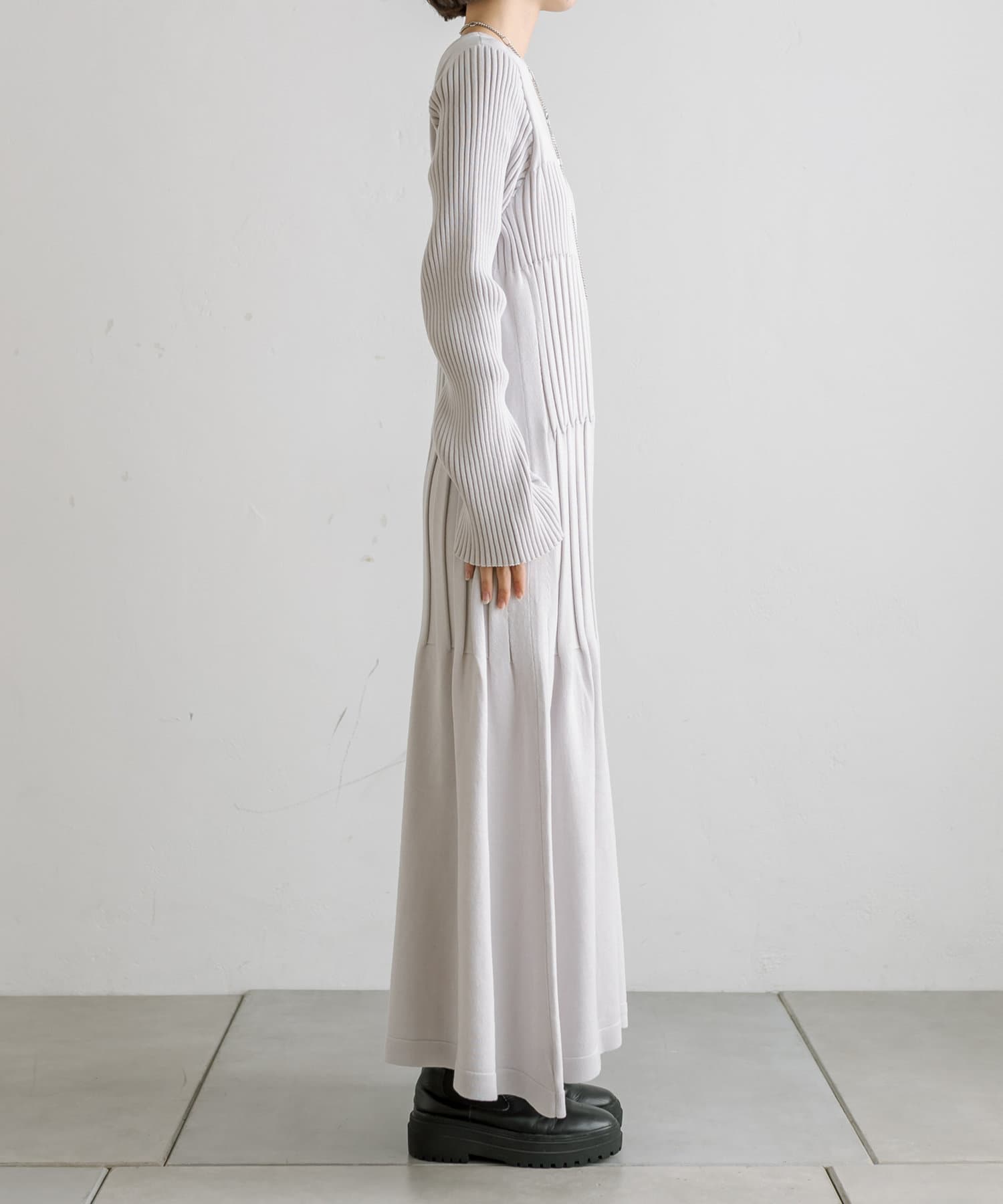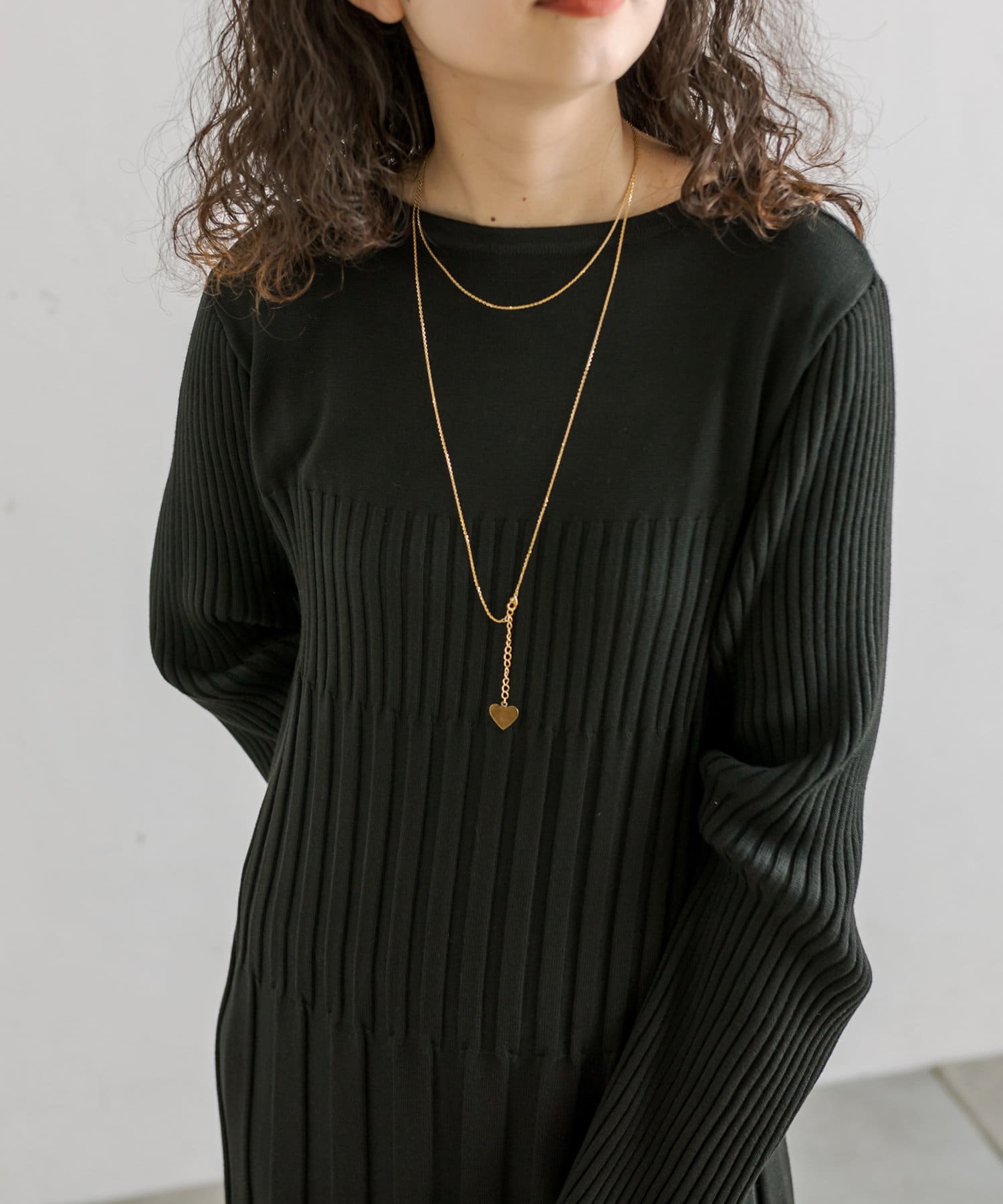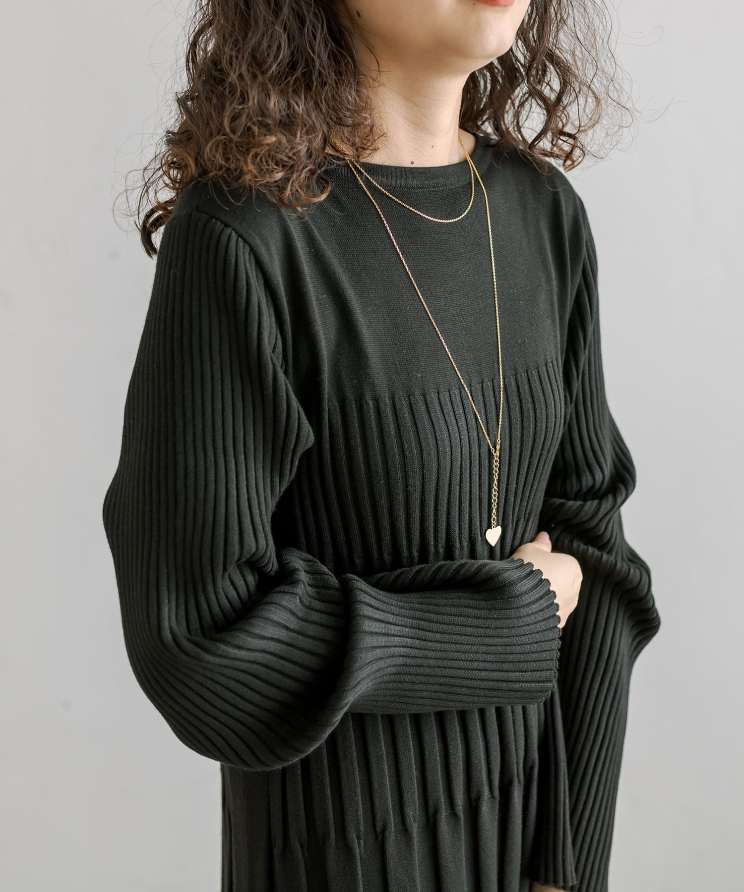・ウエストからボディラインにかけてすっきり見えるリブ素材のニットワンピース。