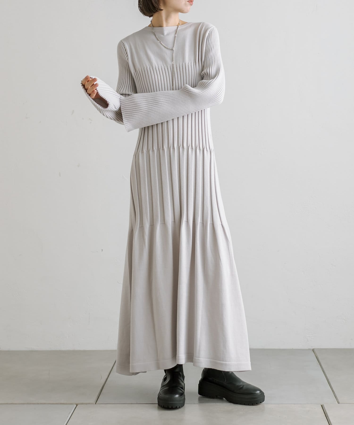 【サイズ展開あり】ティアードリブニットワンピース
