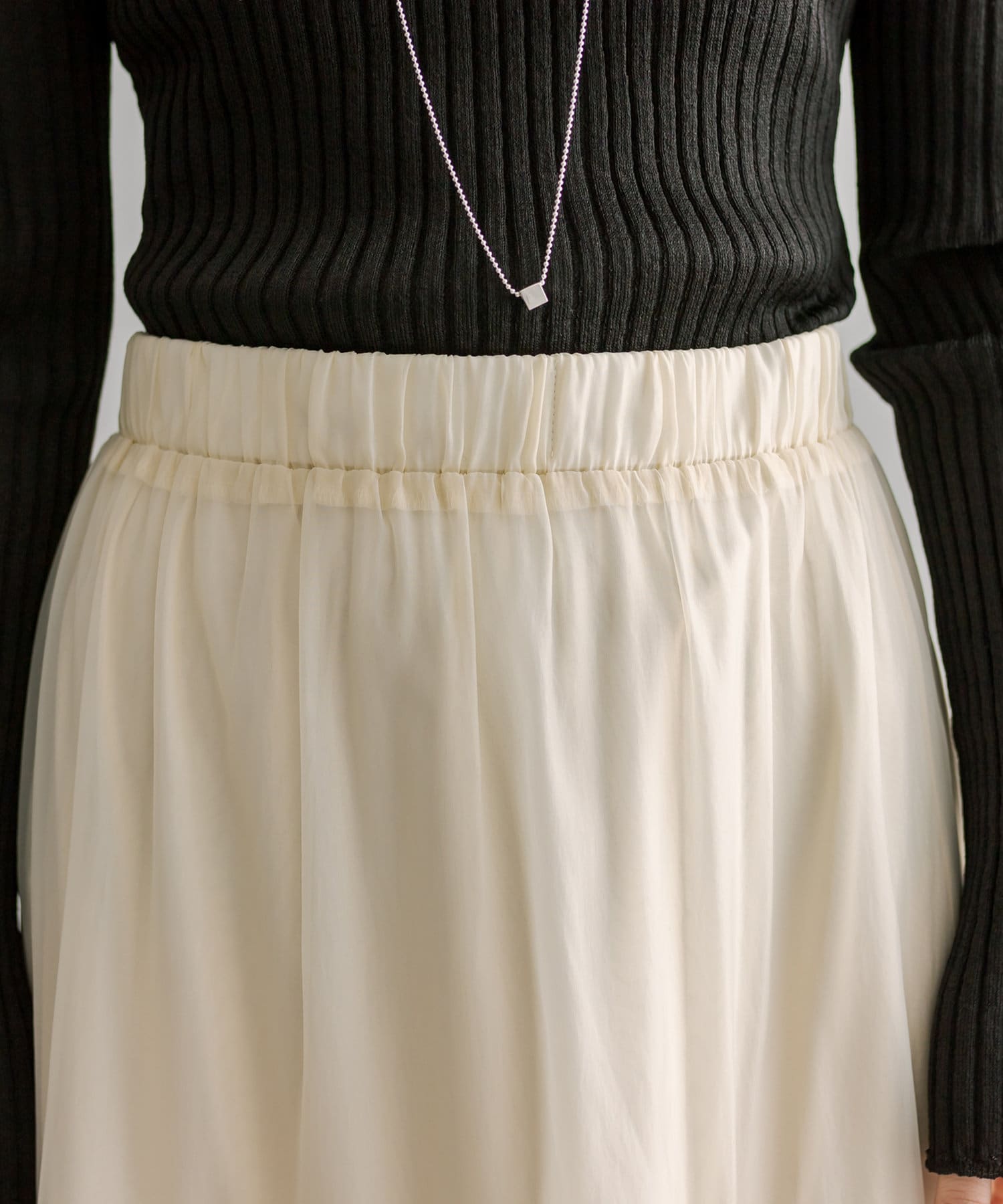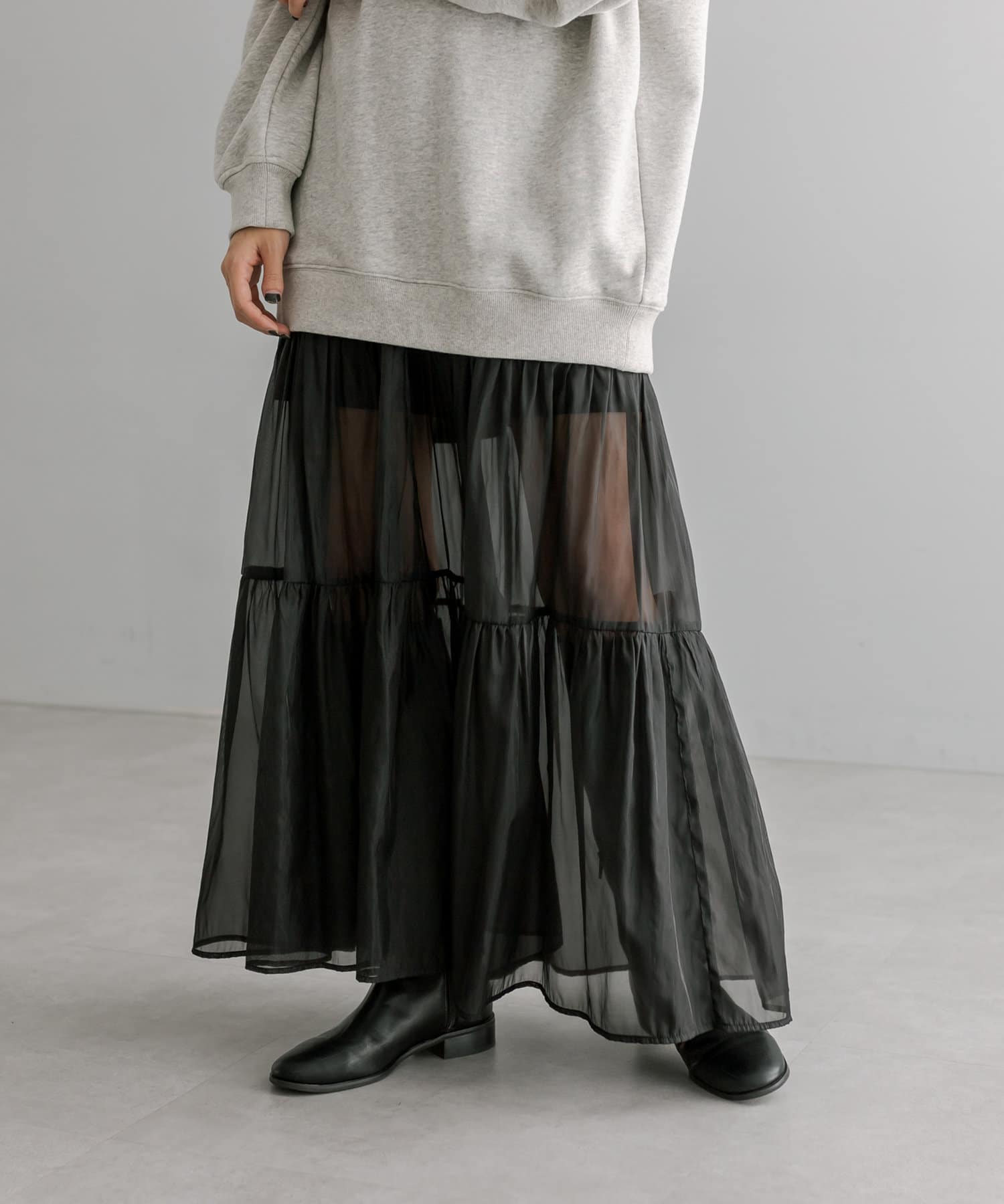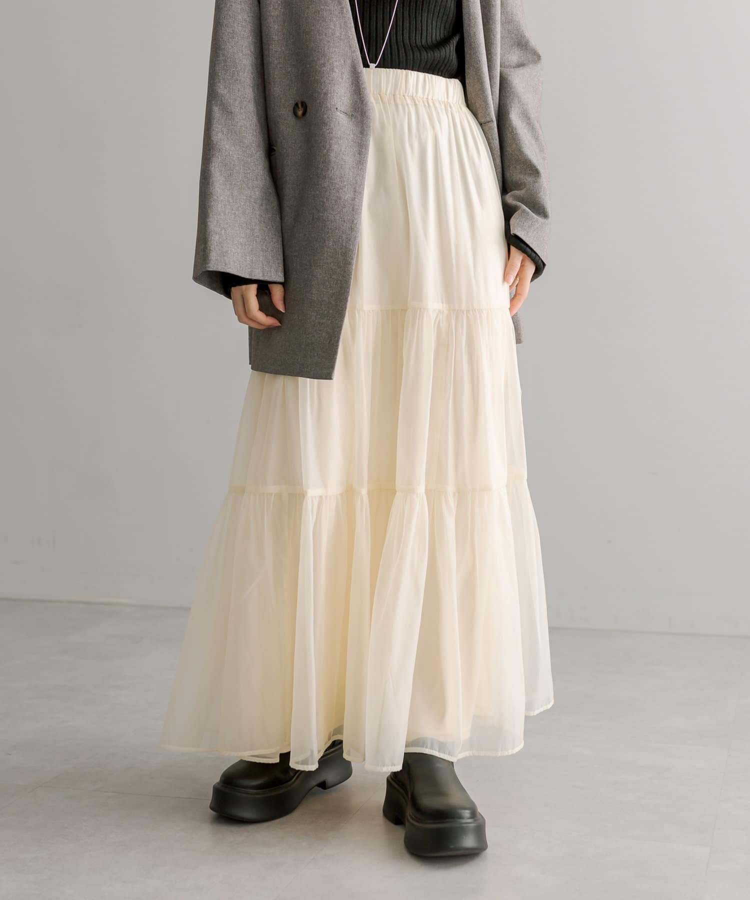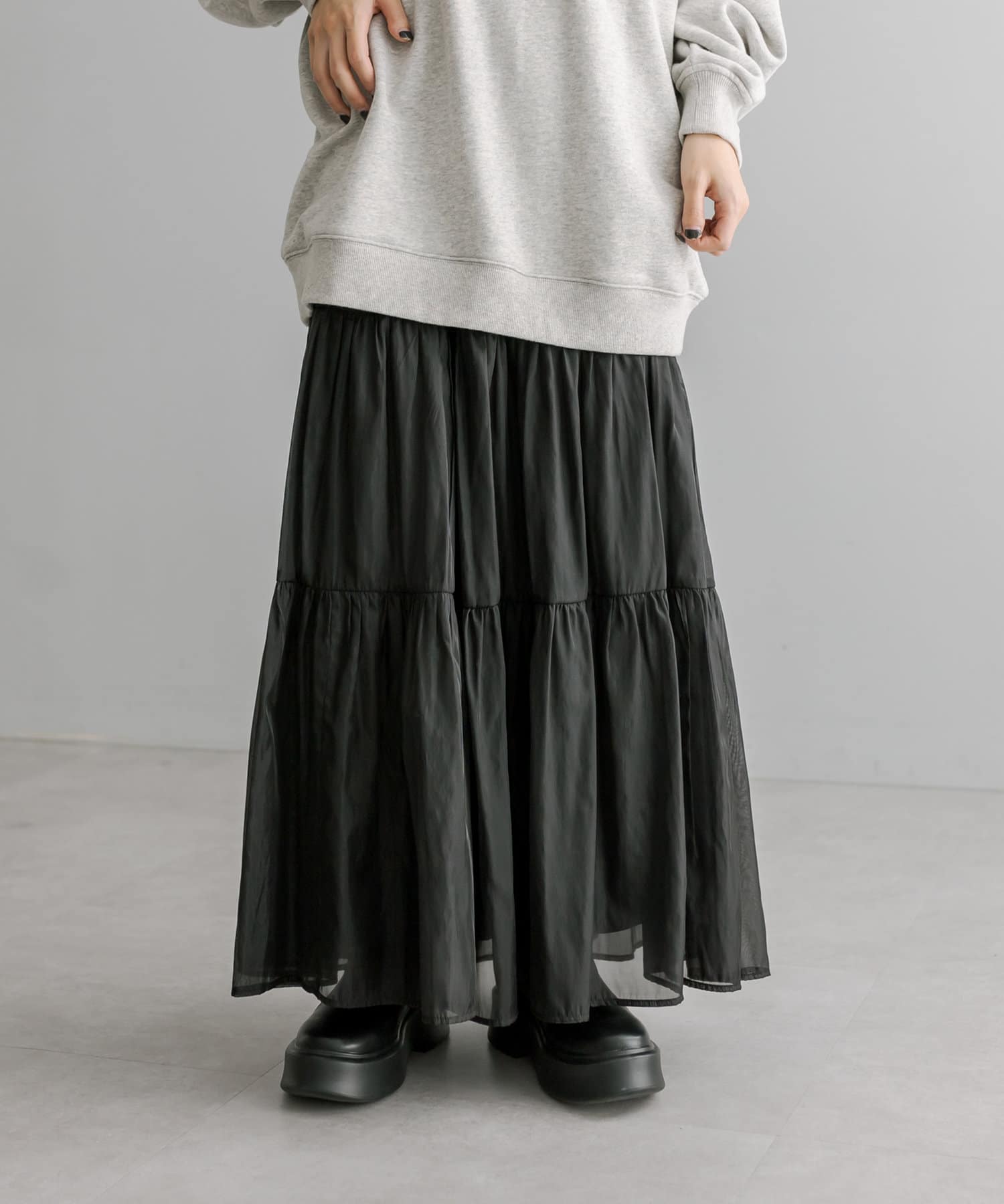 トレンドのシアー素材が目を惹くティアードスカート