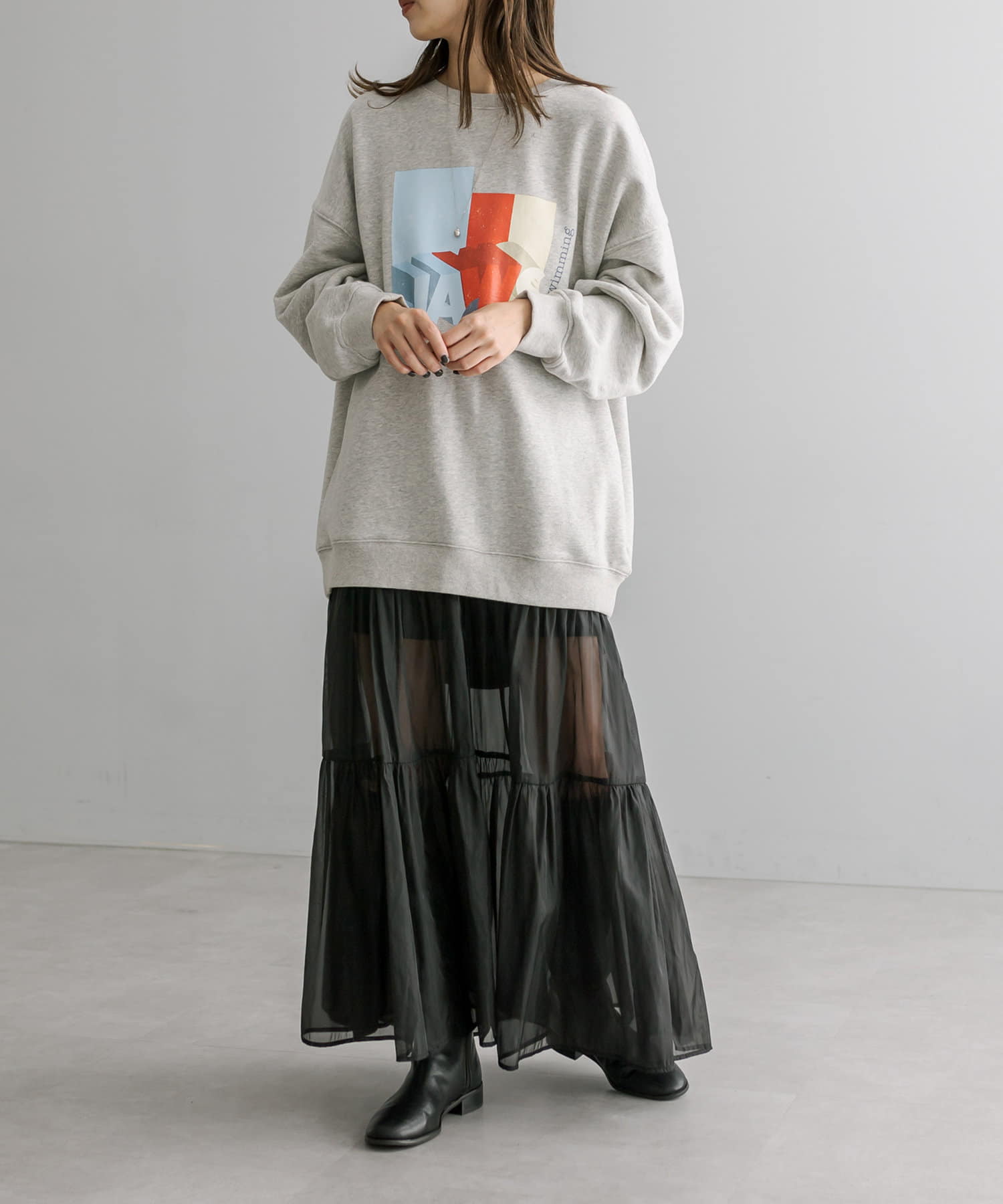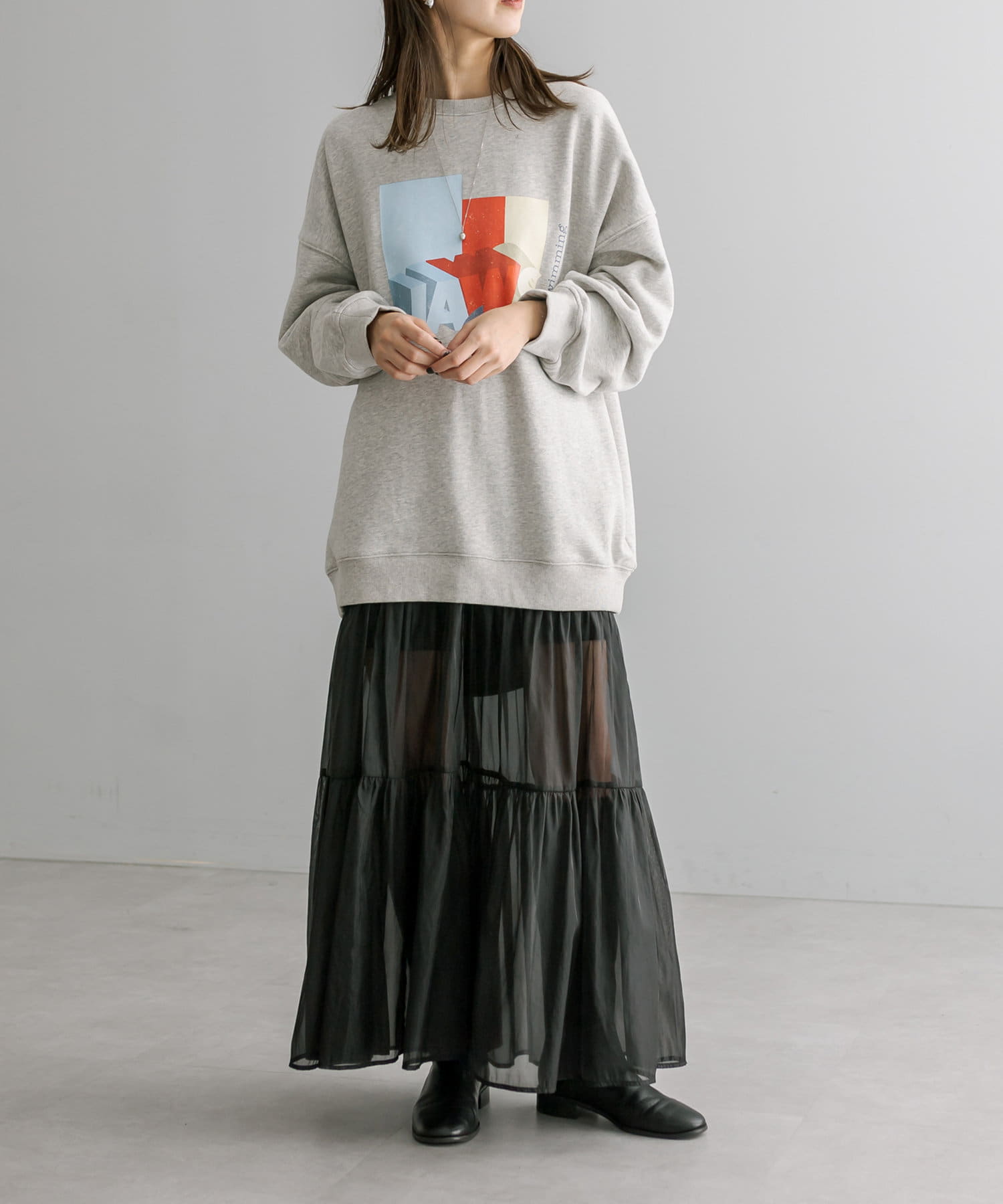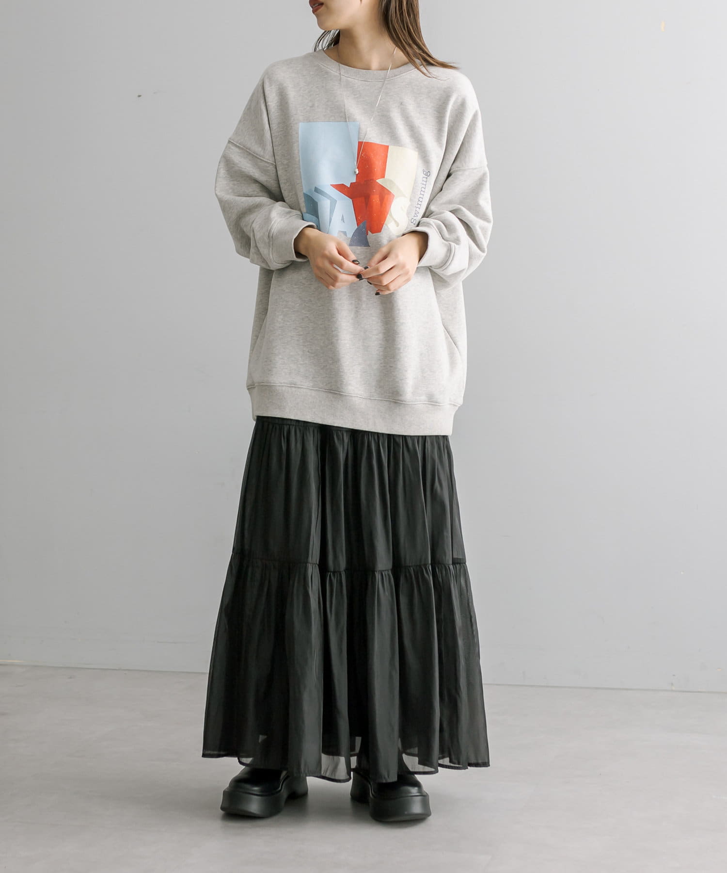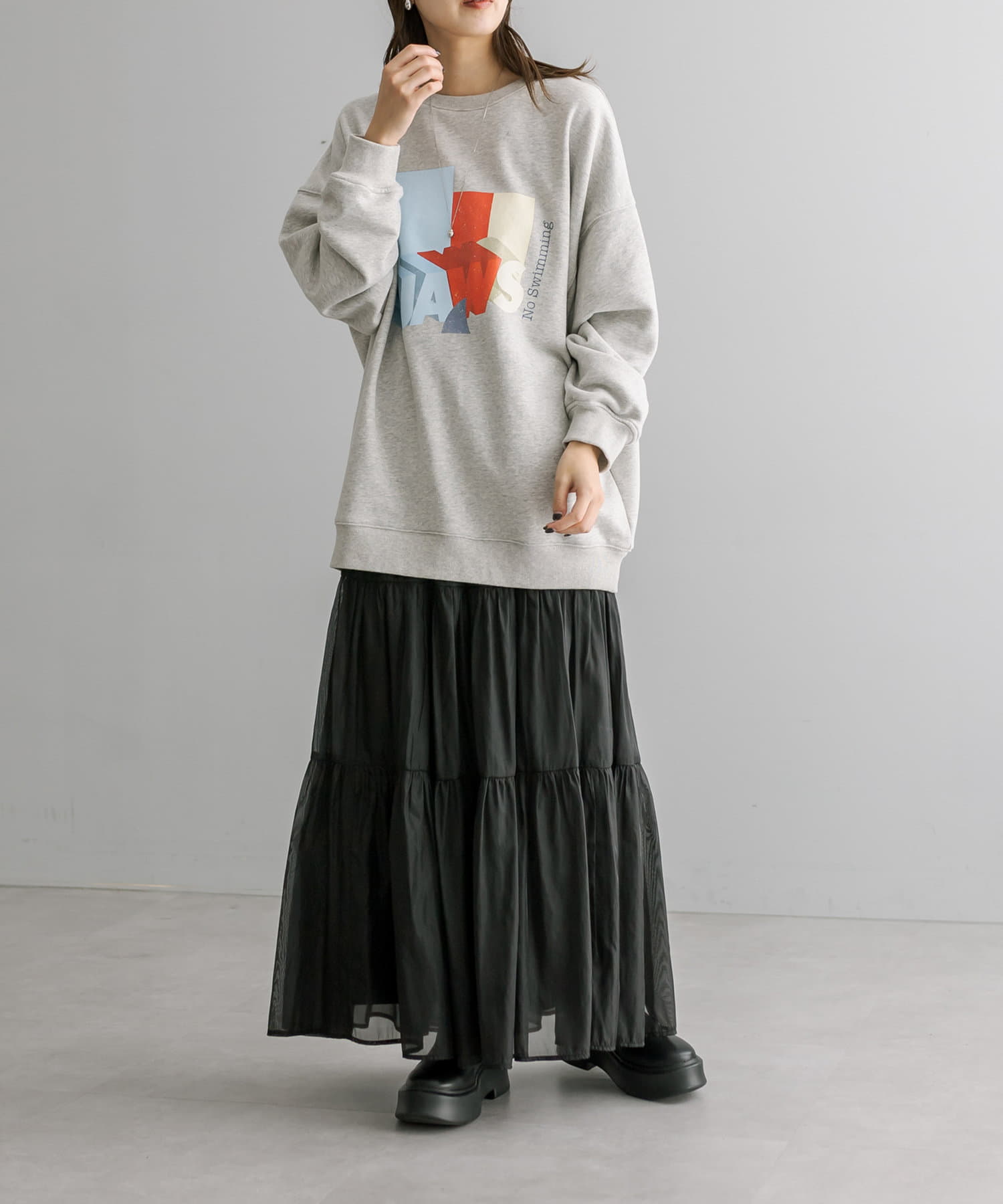 トレンドのシアー素材が目を惹くティアードスカート