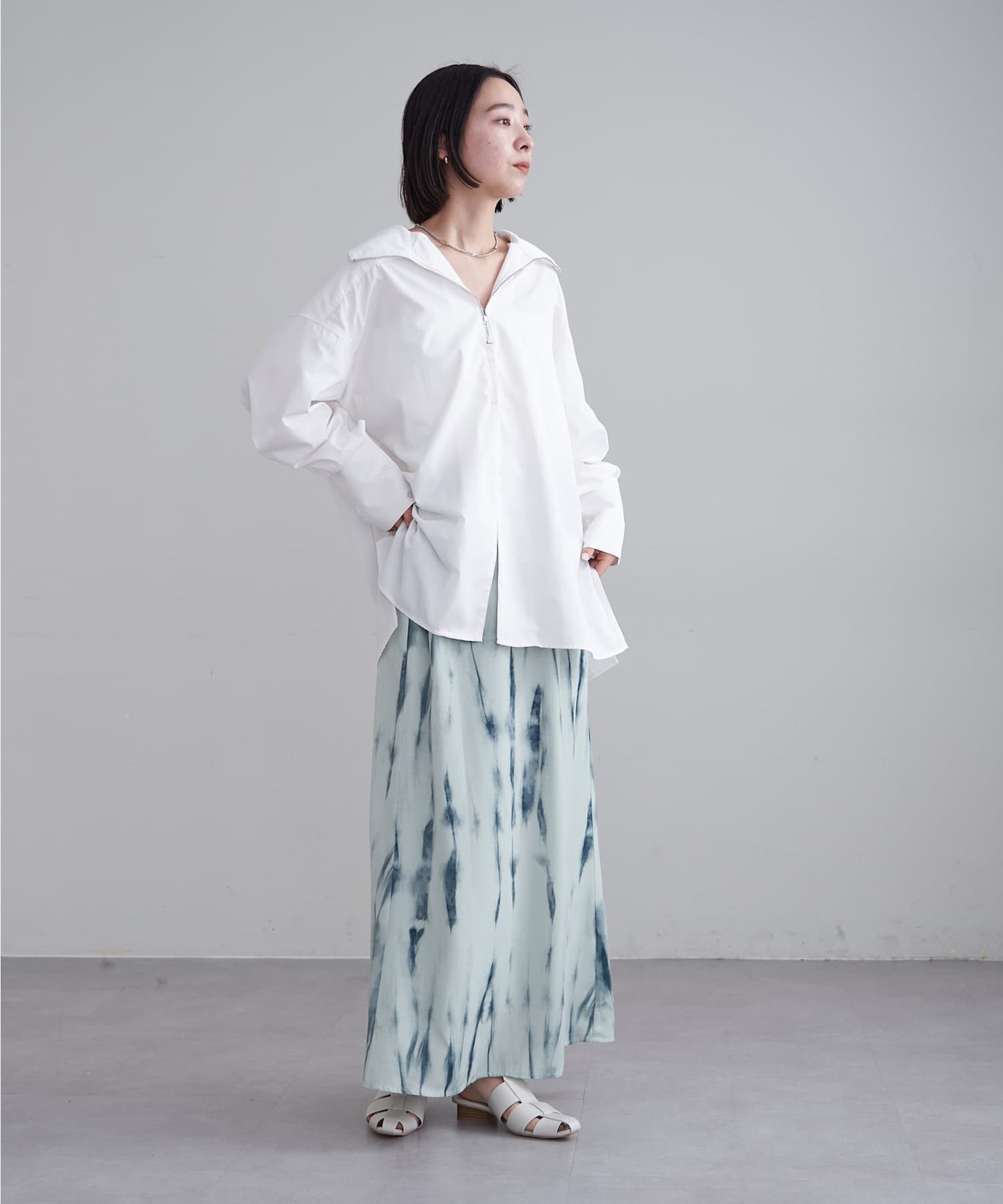 ・タイダイ柄が1枚でこなれた印象にしあがる1枚。