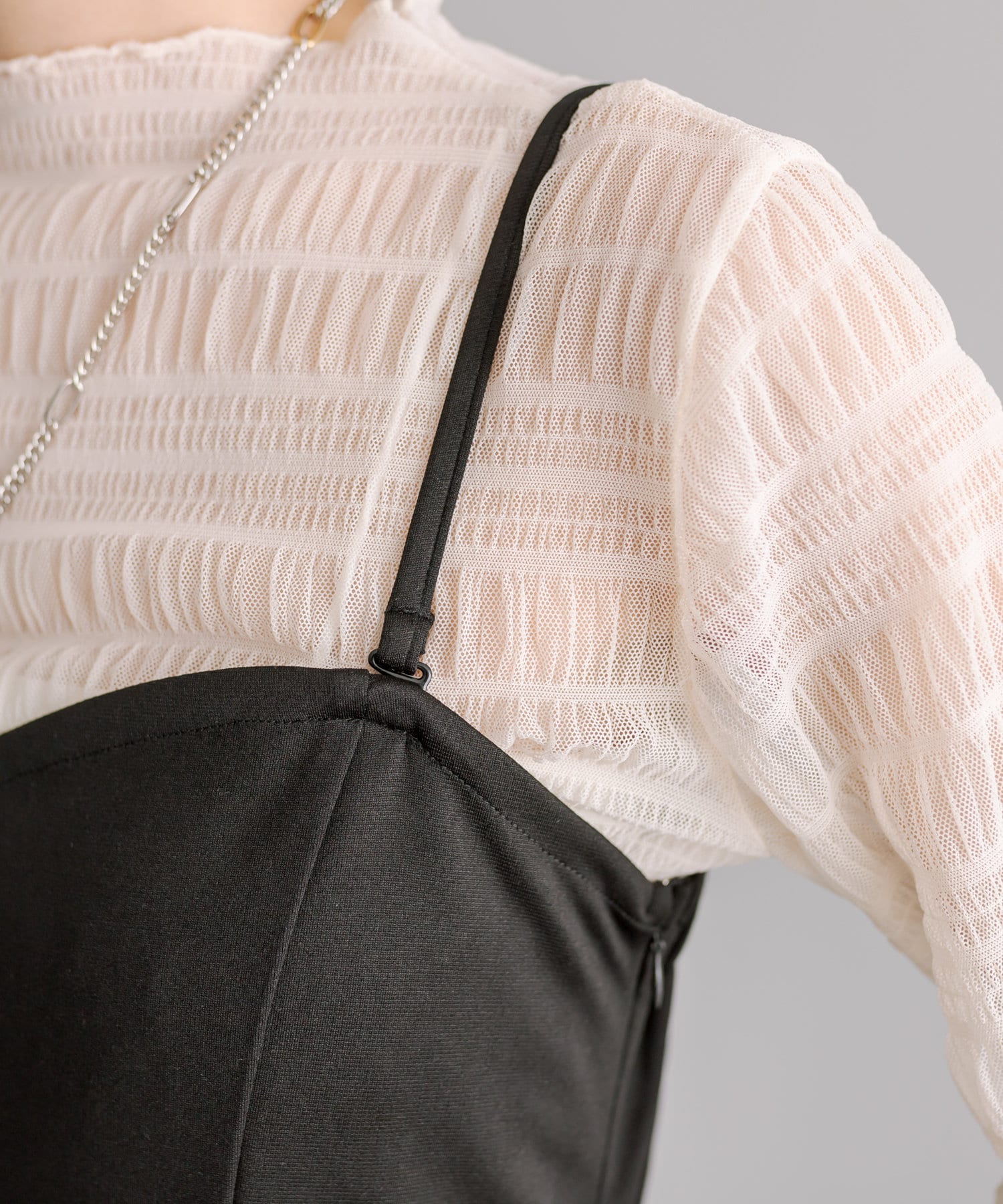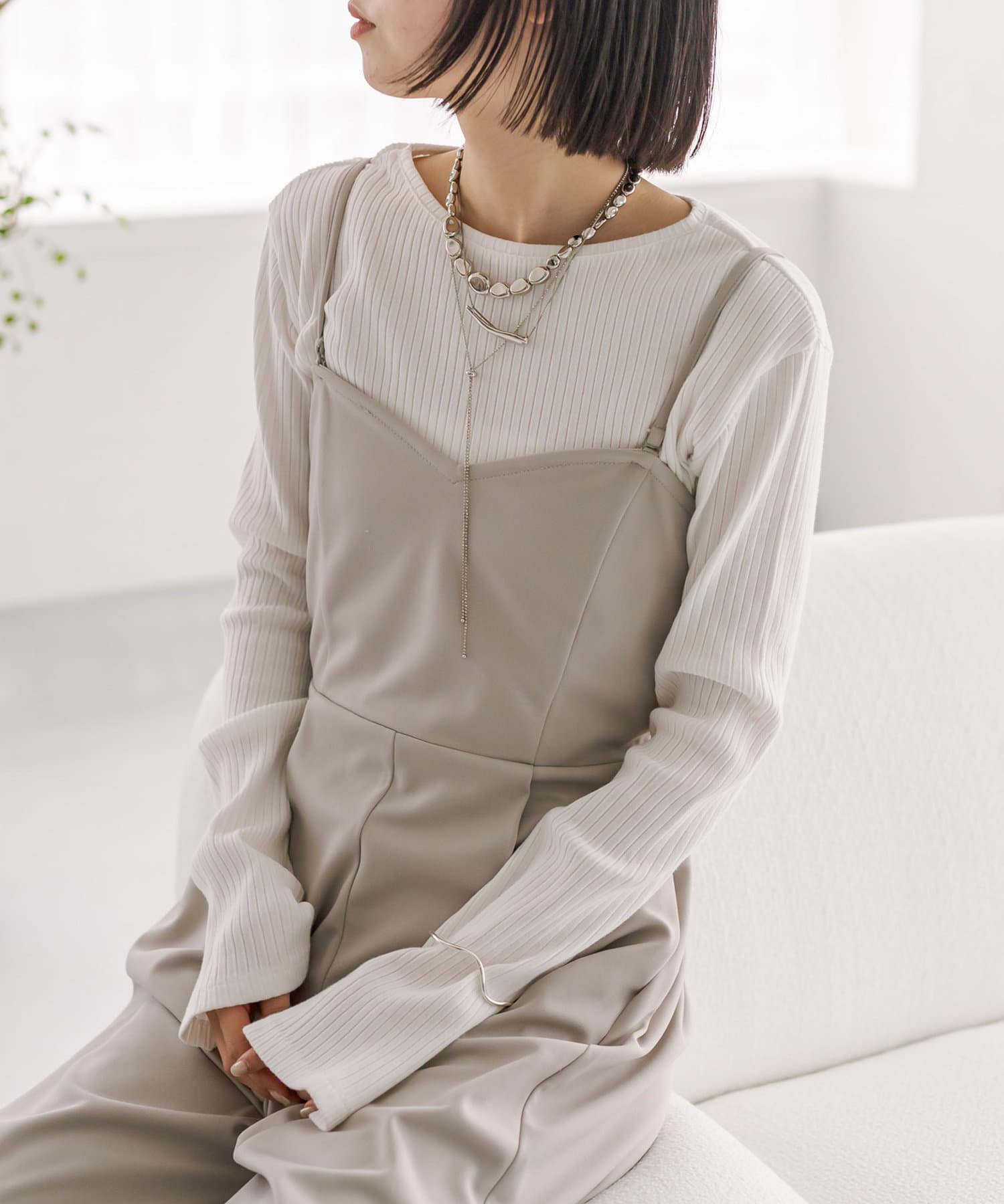 ・インナーはパット付キャミソールを合わせて頂くとすっきり決まります。