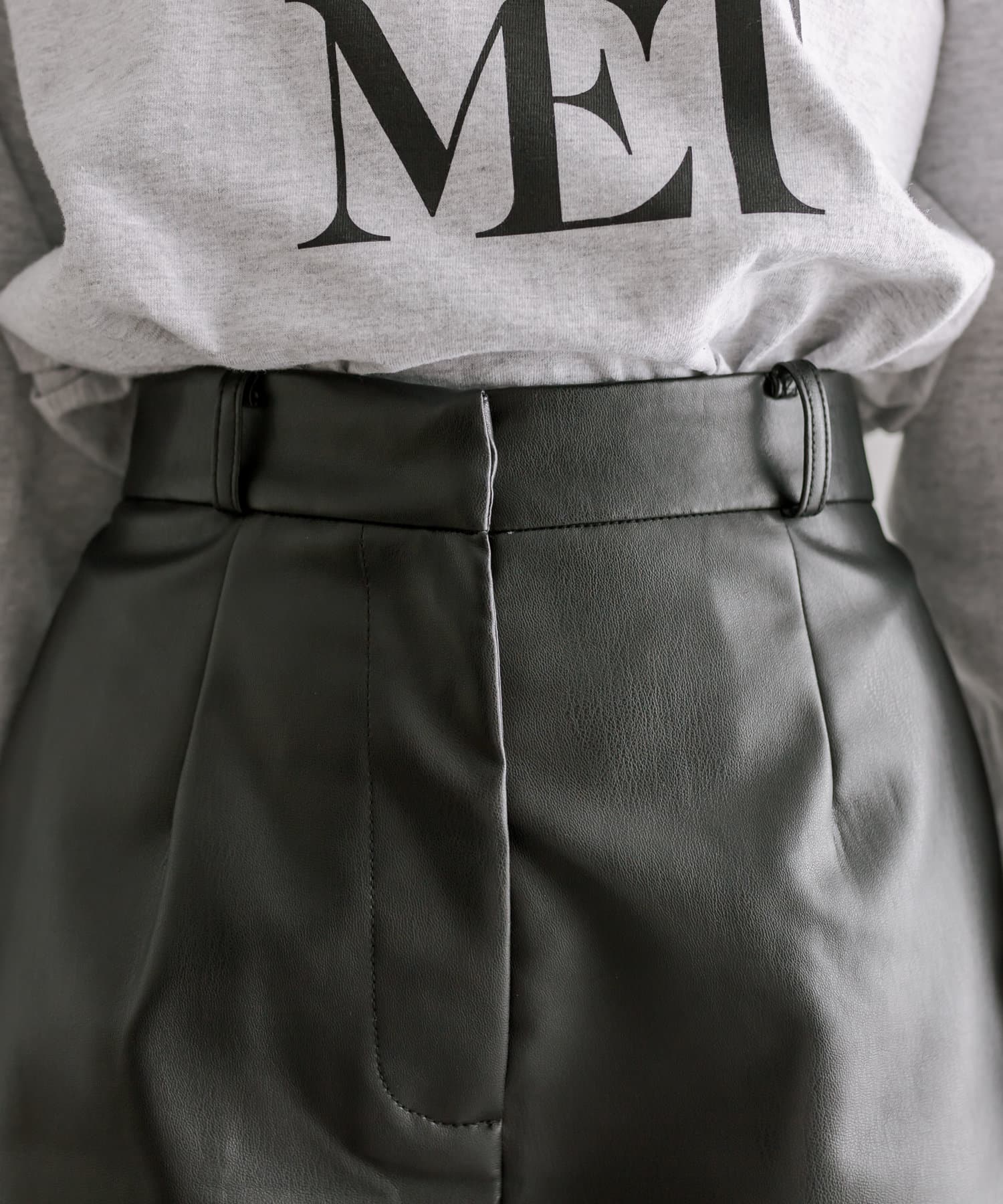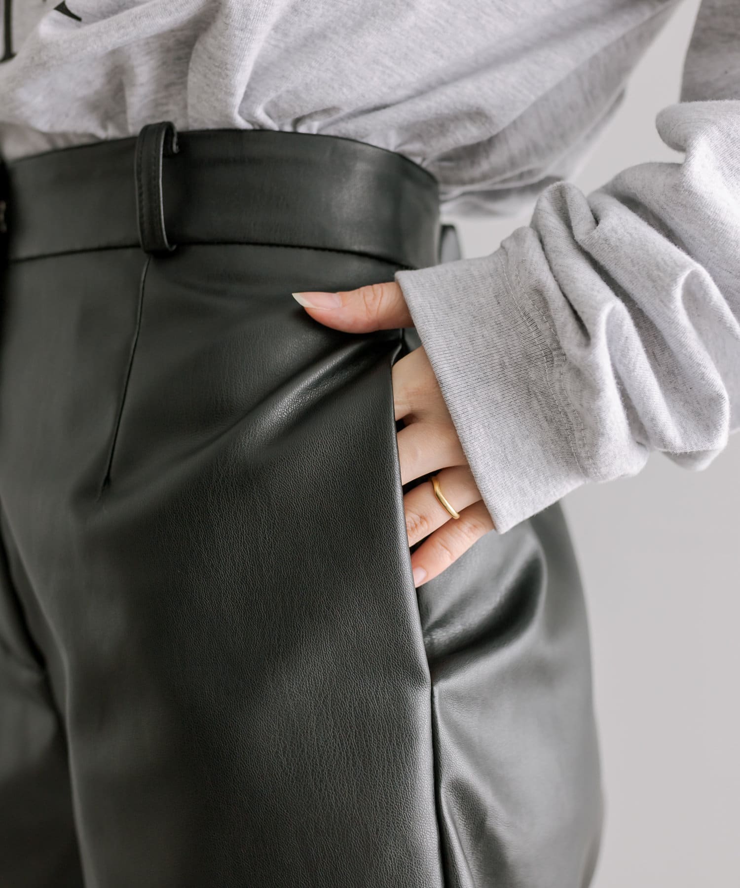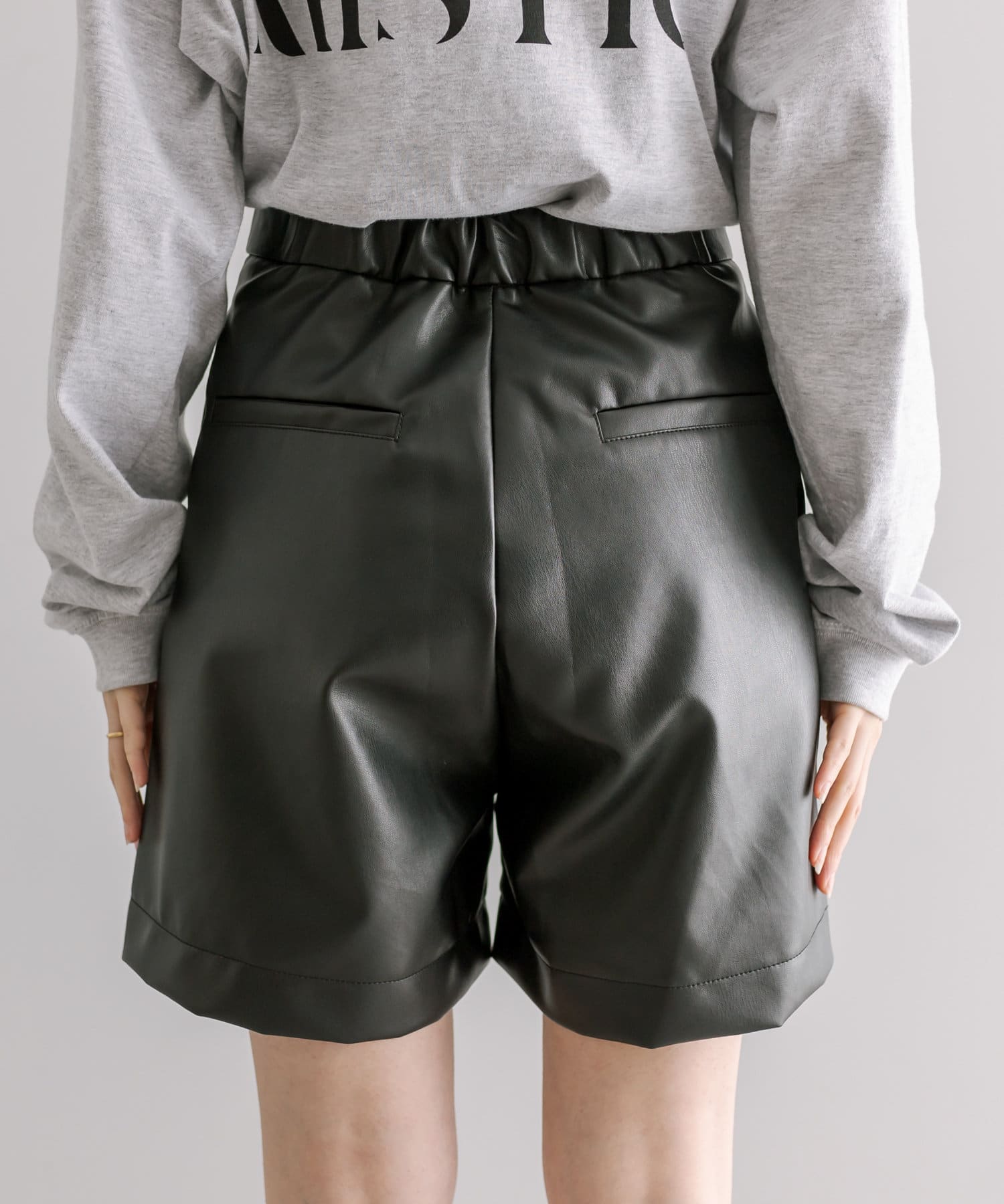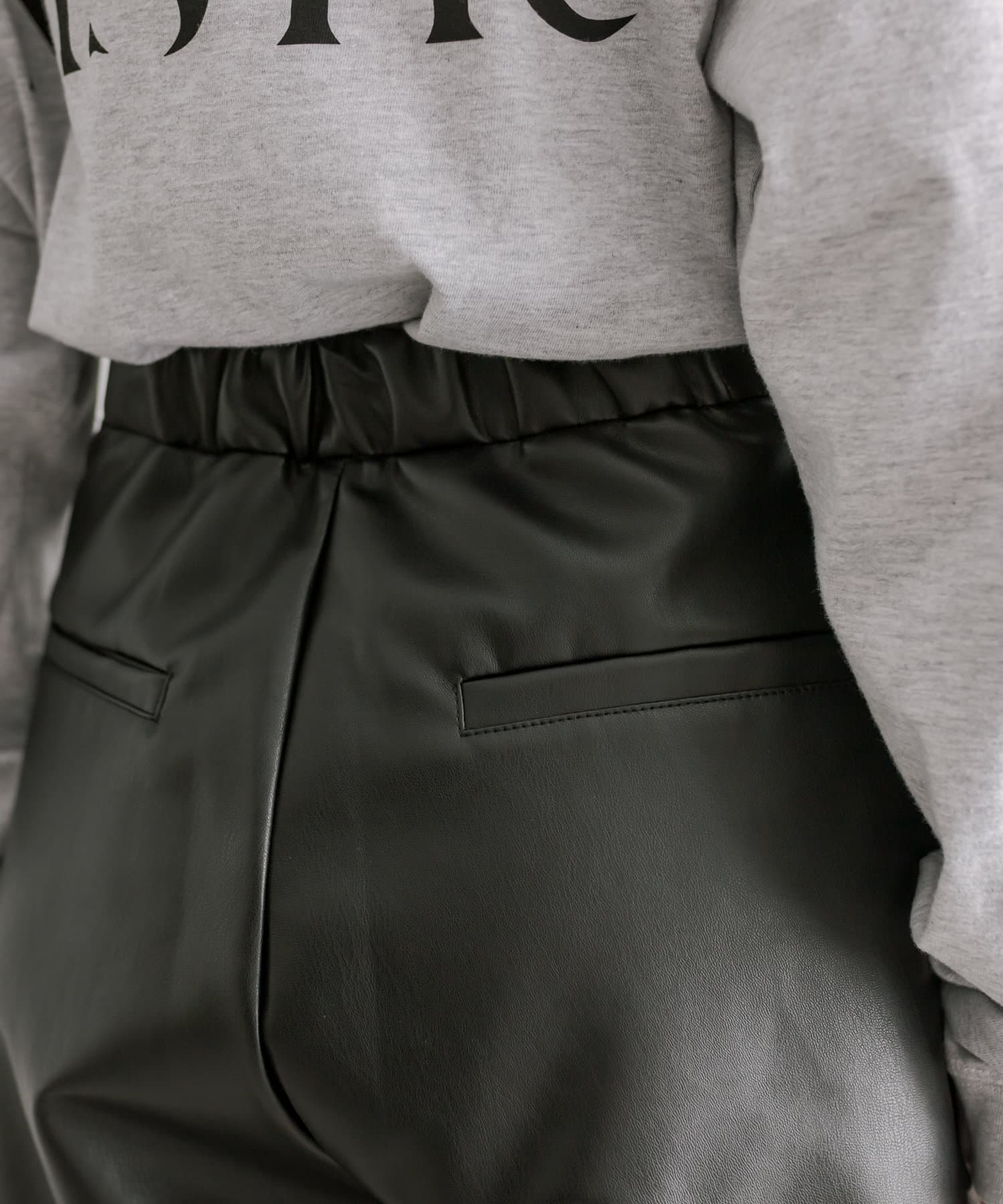 ・柔らかな生地感のフェイクレザー。ウエストもゴム仕様となっており履き心地抜群。