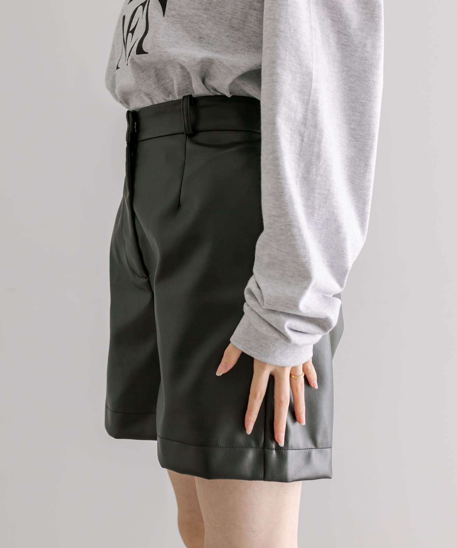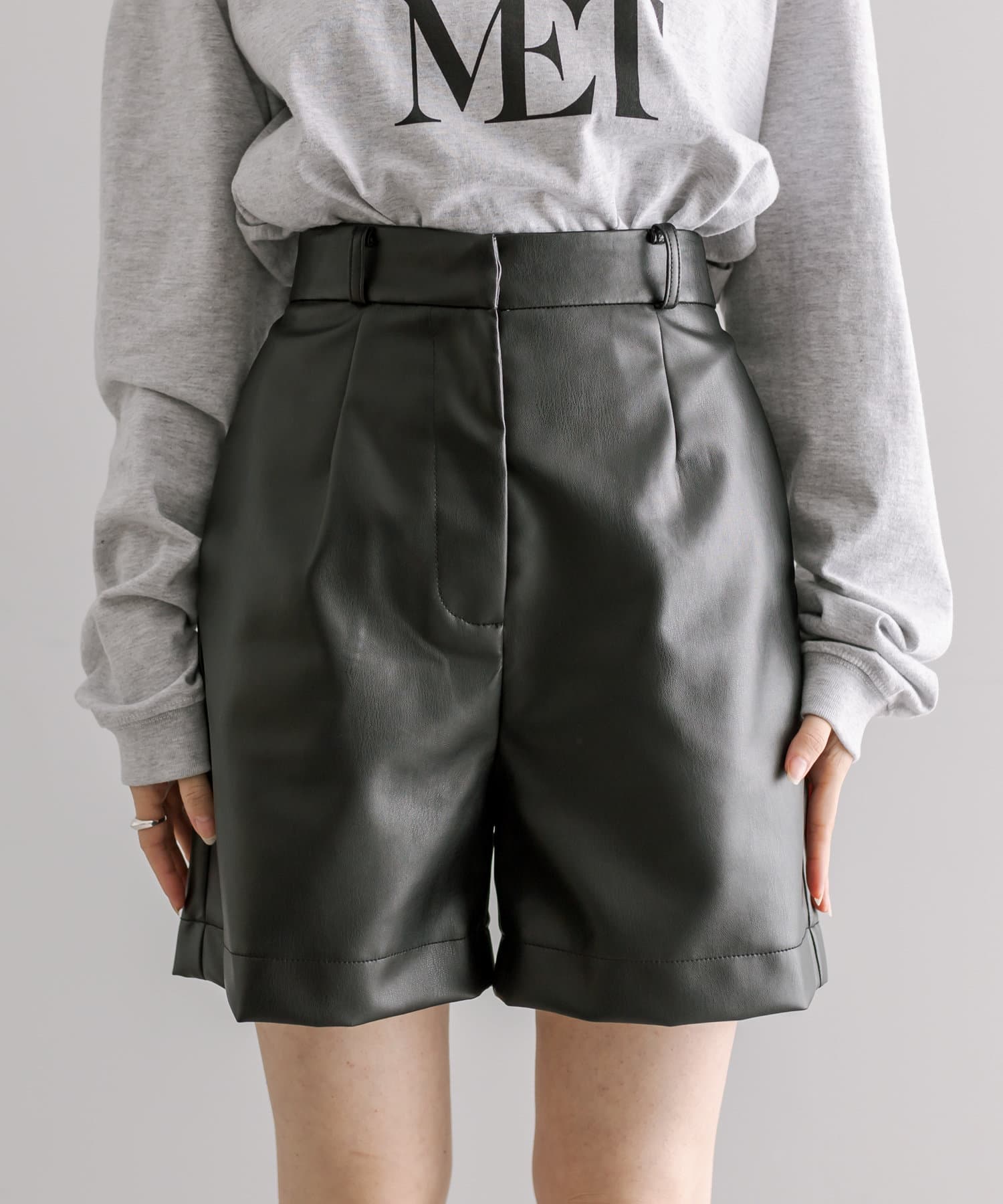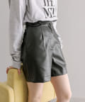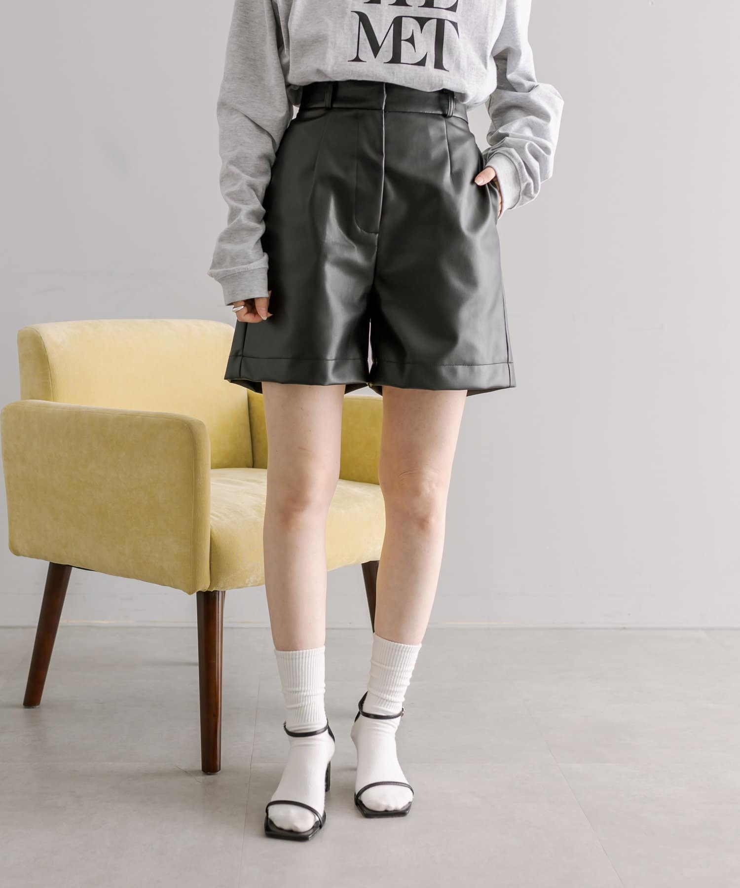 ・柔らかな生地感のフェイクレザー。ウエストもゴム仕様となっており履き心地抜群。