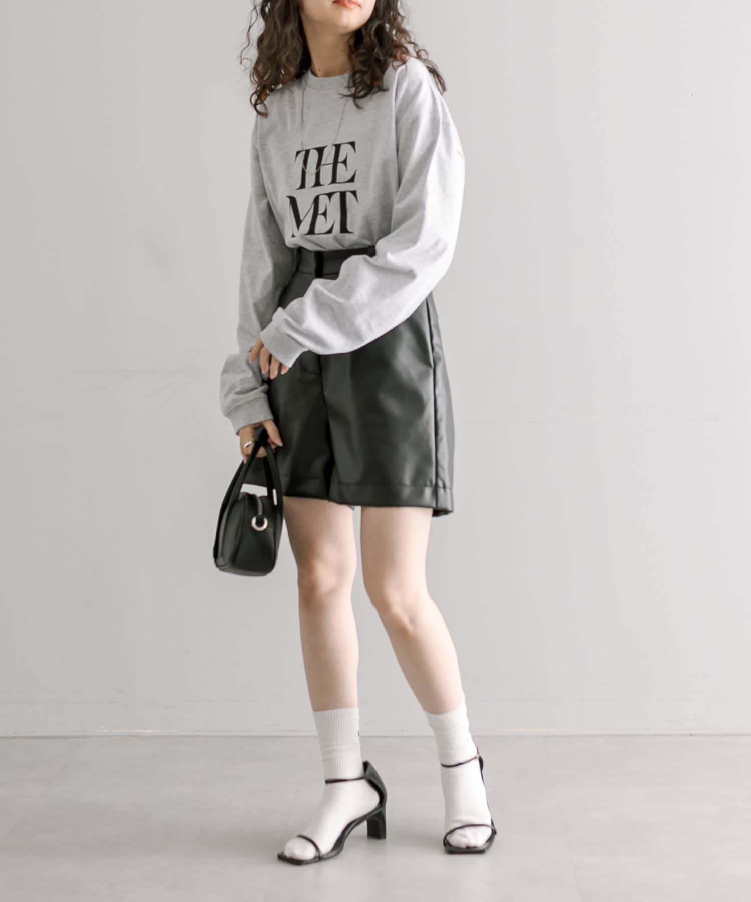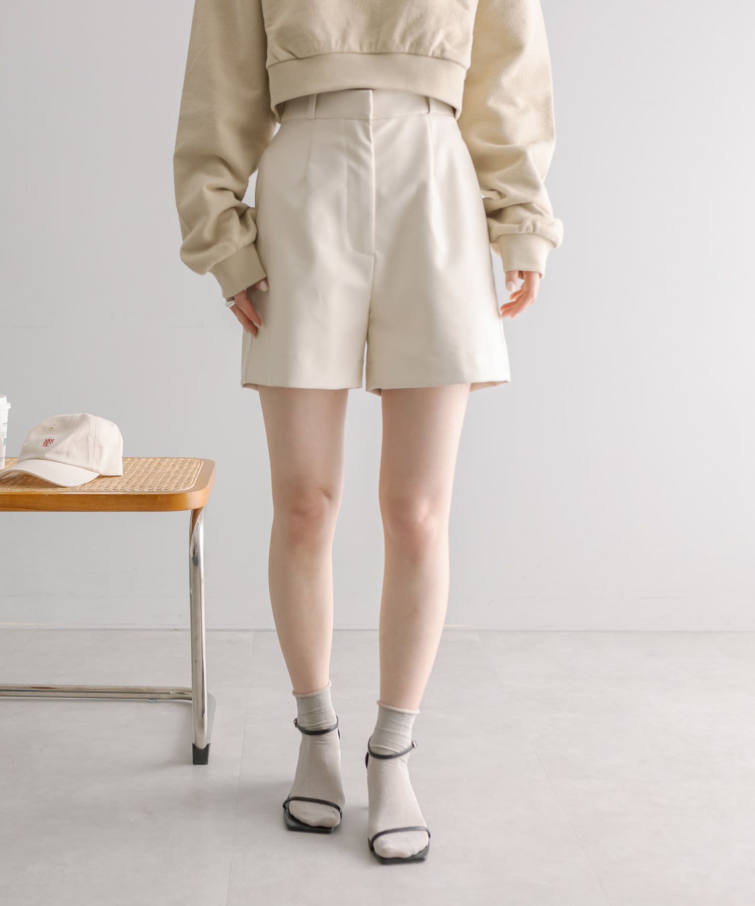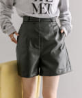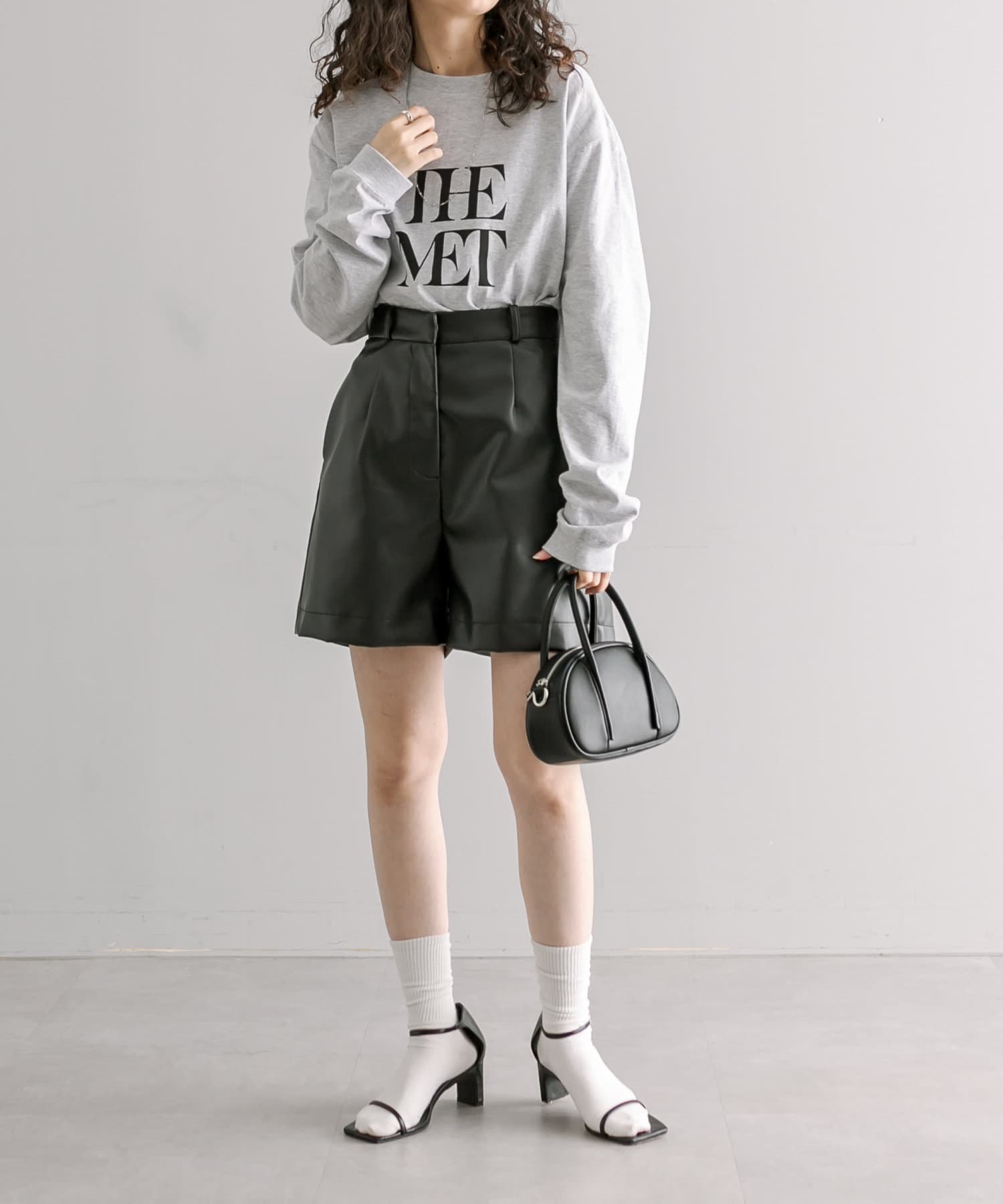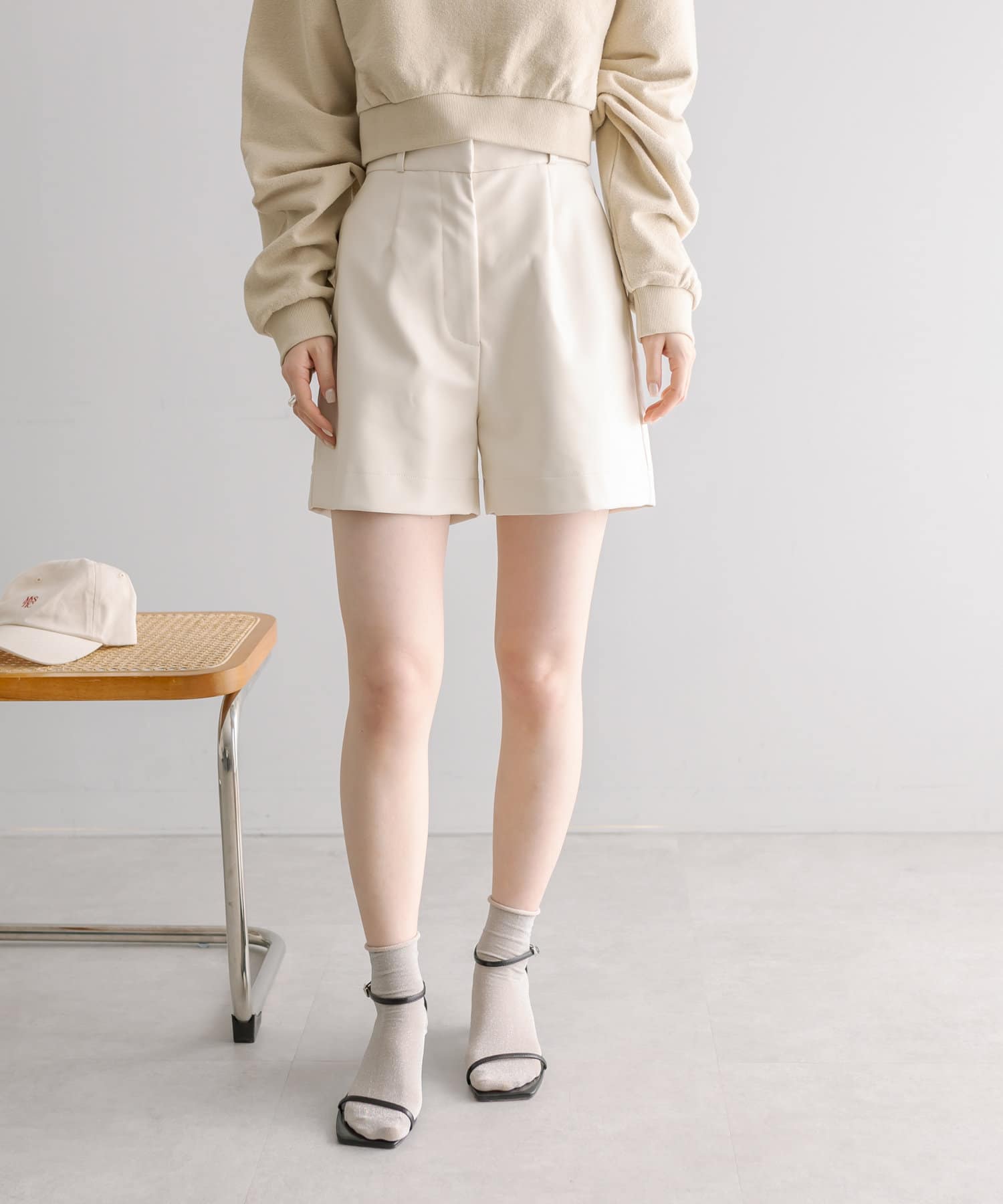・柔らかな生地感のフェイクレザー。ウエストもゴム仕様となっており履き心地抜群。