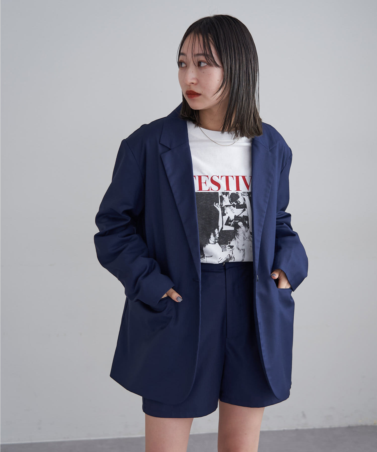 ・同素材のジャケットを合わせてセットアップとしても着ていただけます。