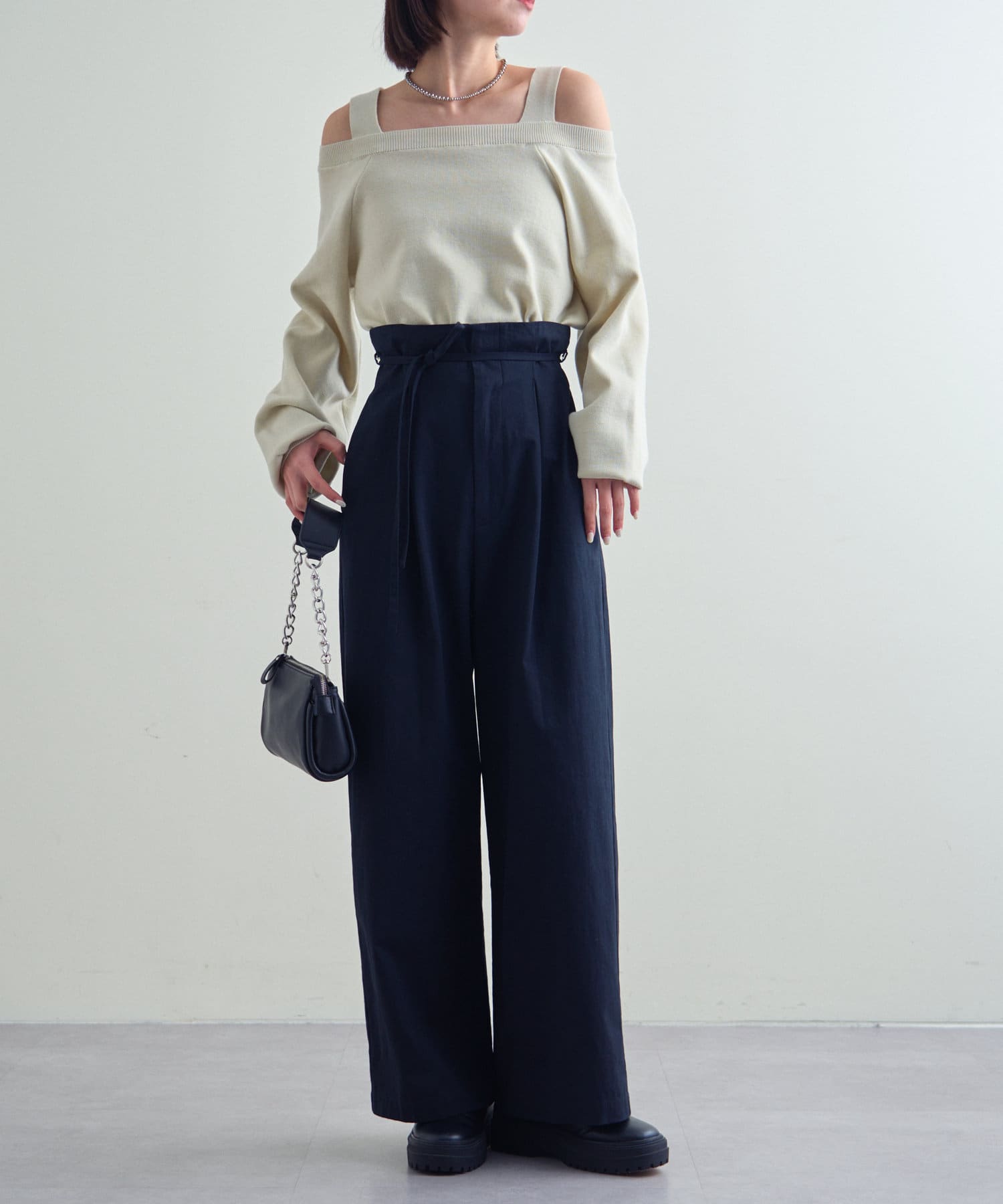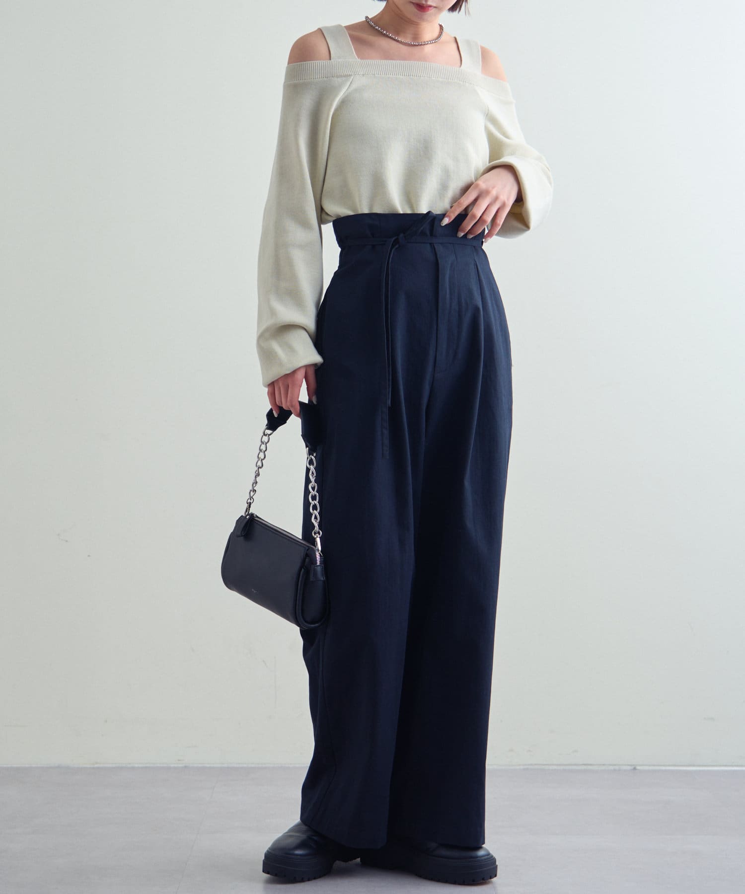 【サイズ展開あり】[mline]ハイウエストベルトパンツ