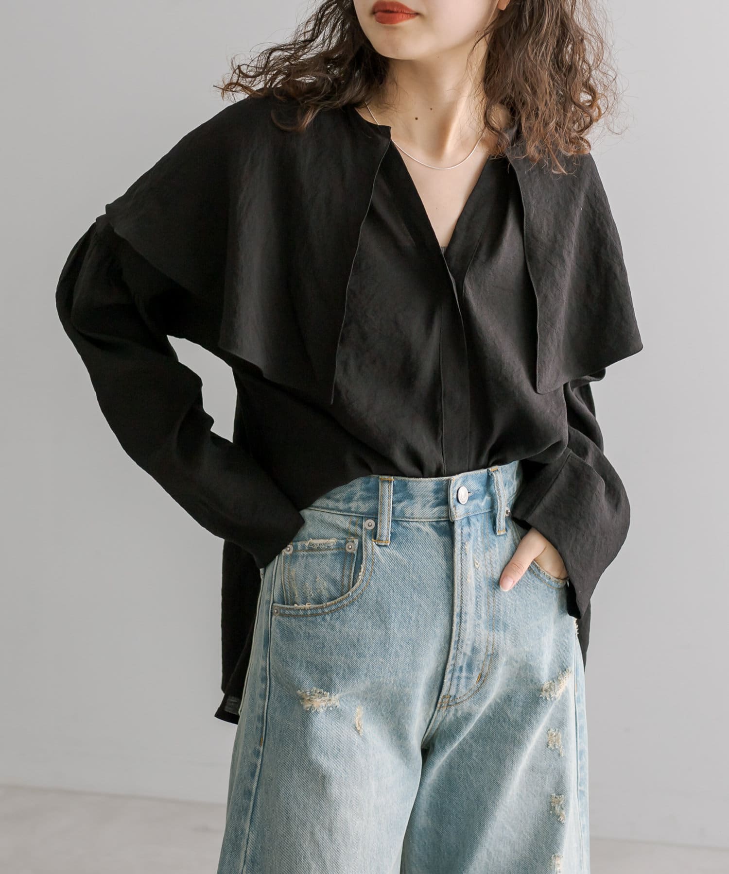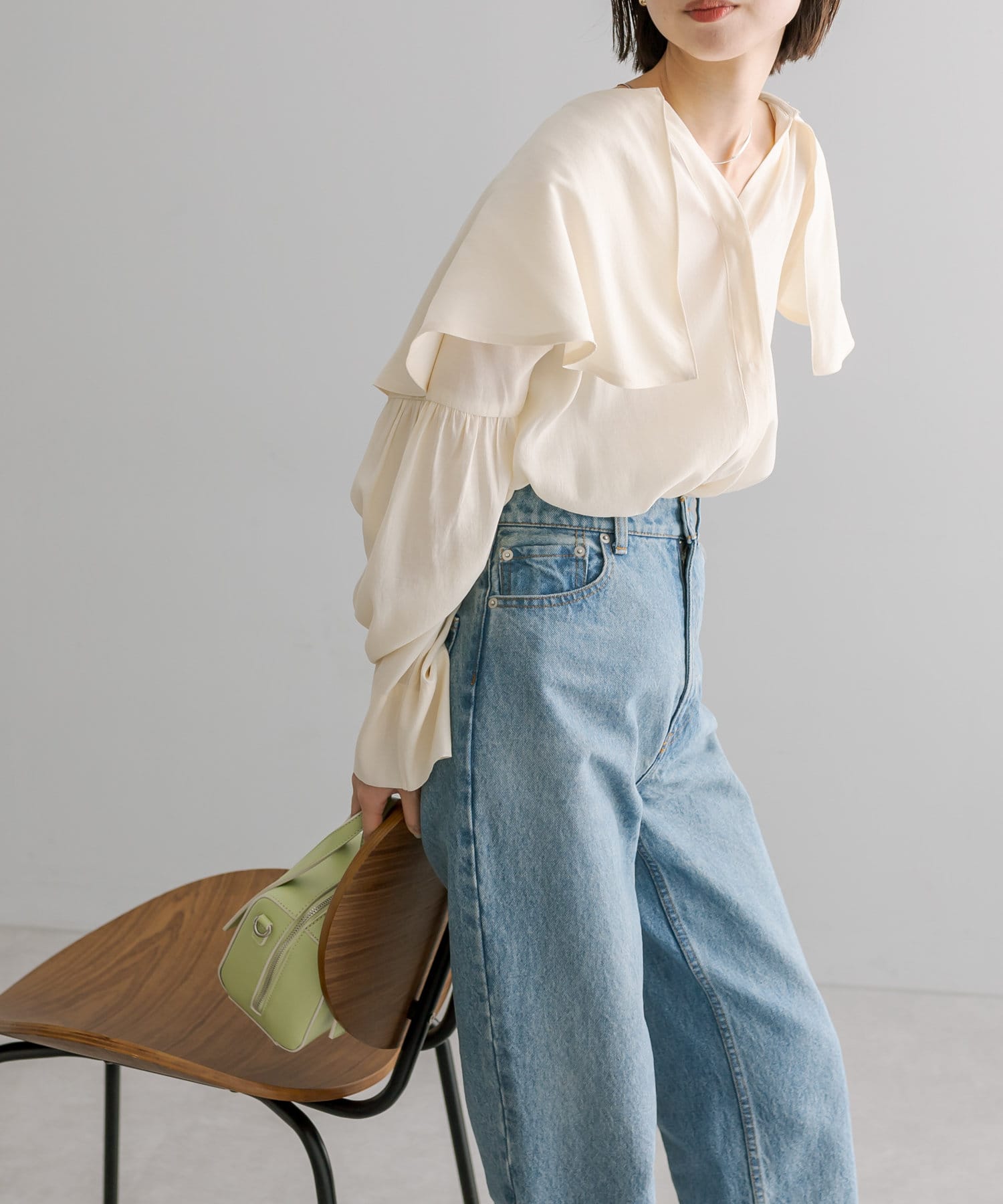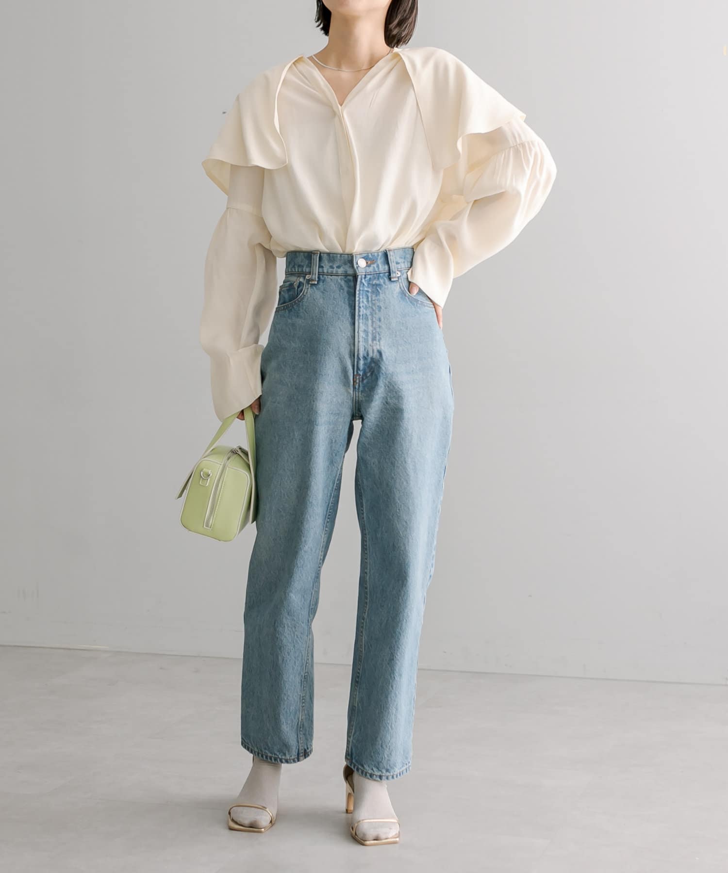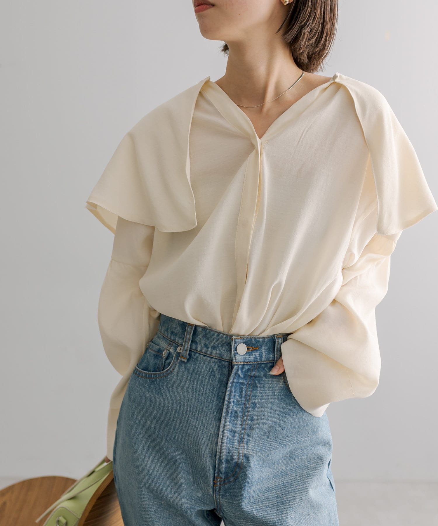 ラッフルデザインが華やかな印象の王道ブラウス。
