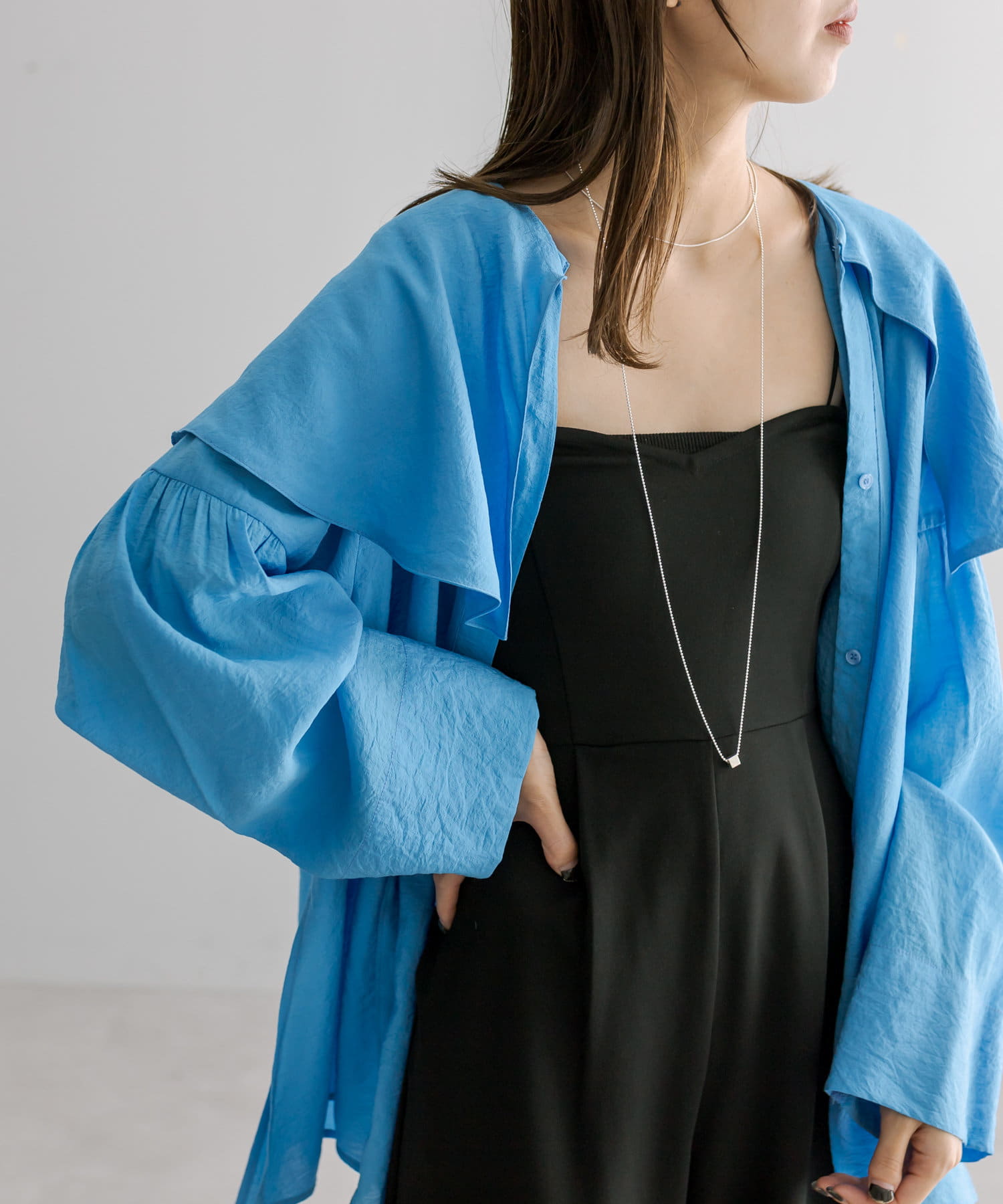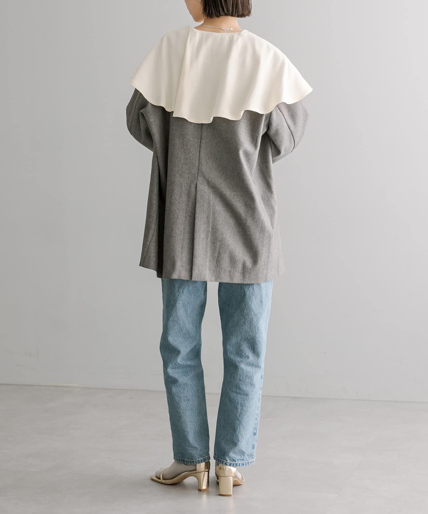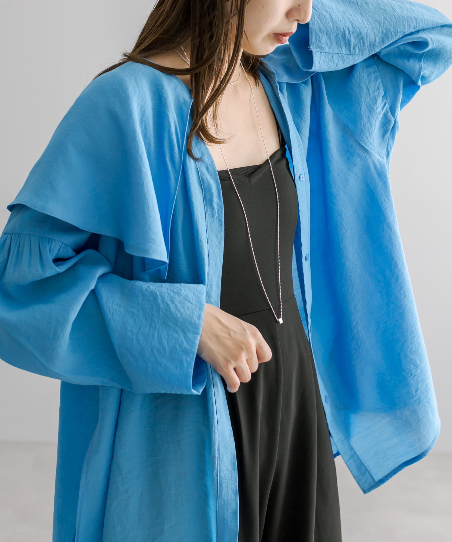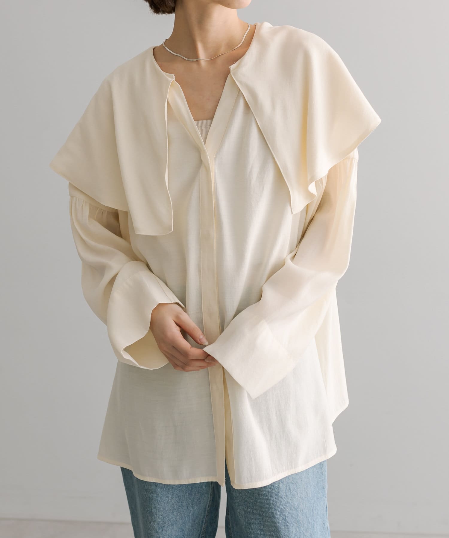 今年も流行るビッグカラー。思ったよりも薄くシアー感もあるので、初夏まで活躍しそうです。