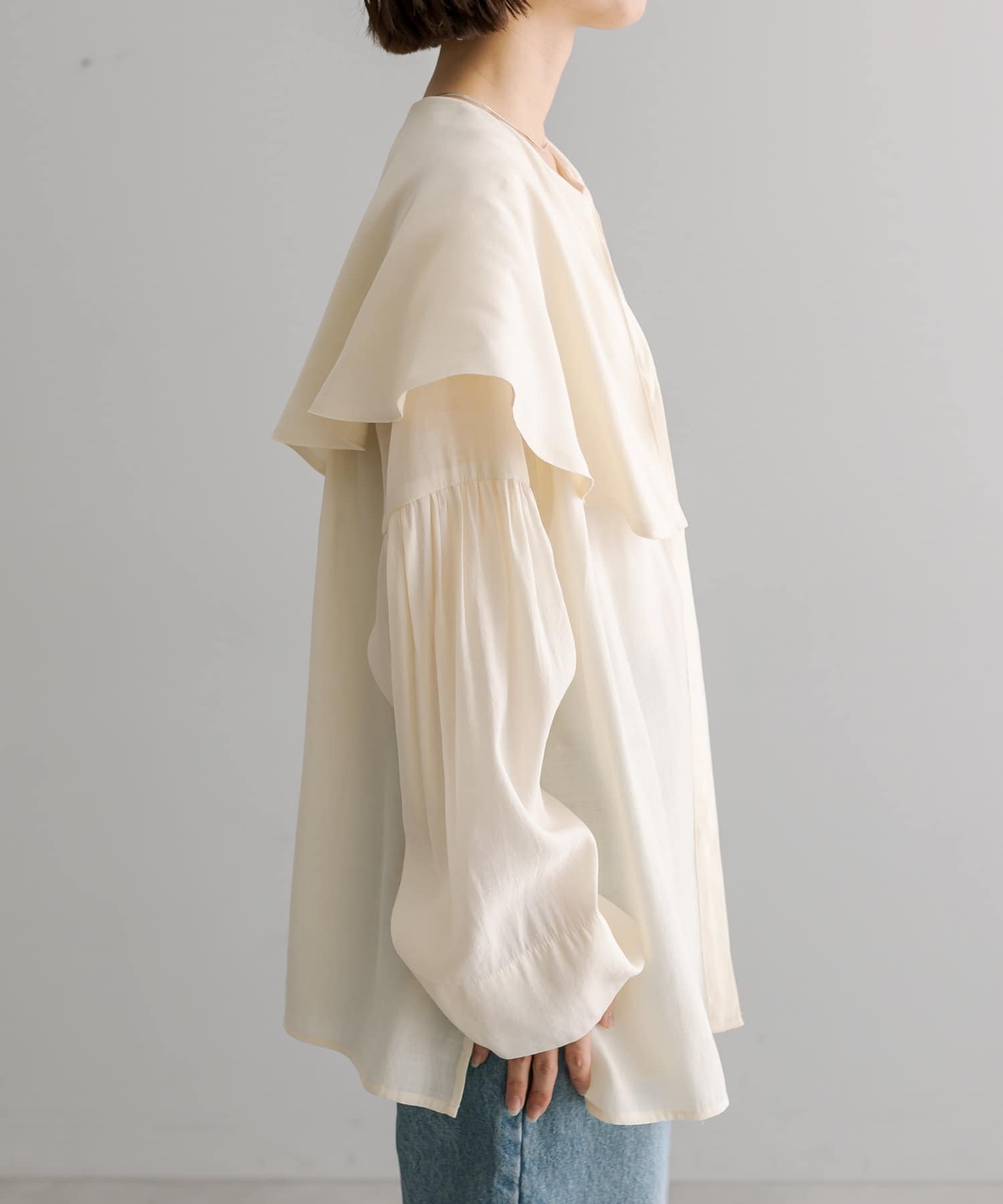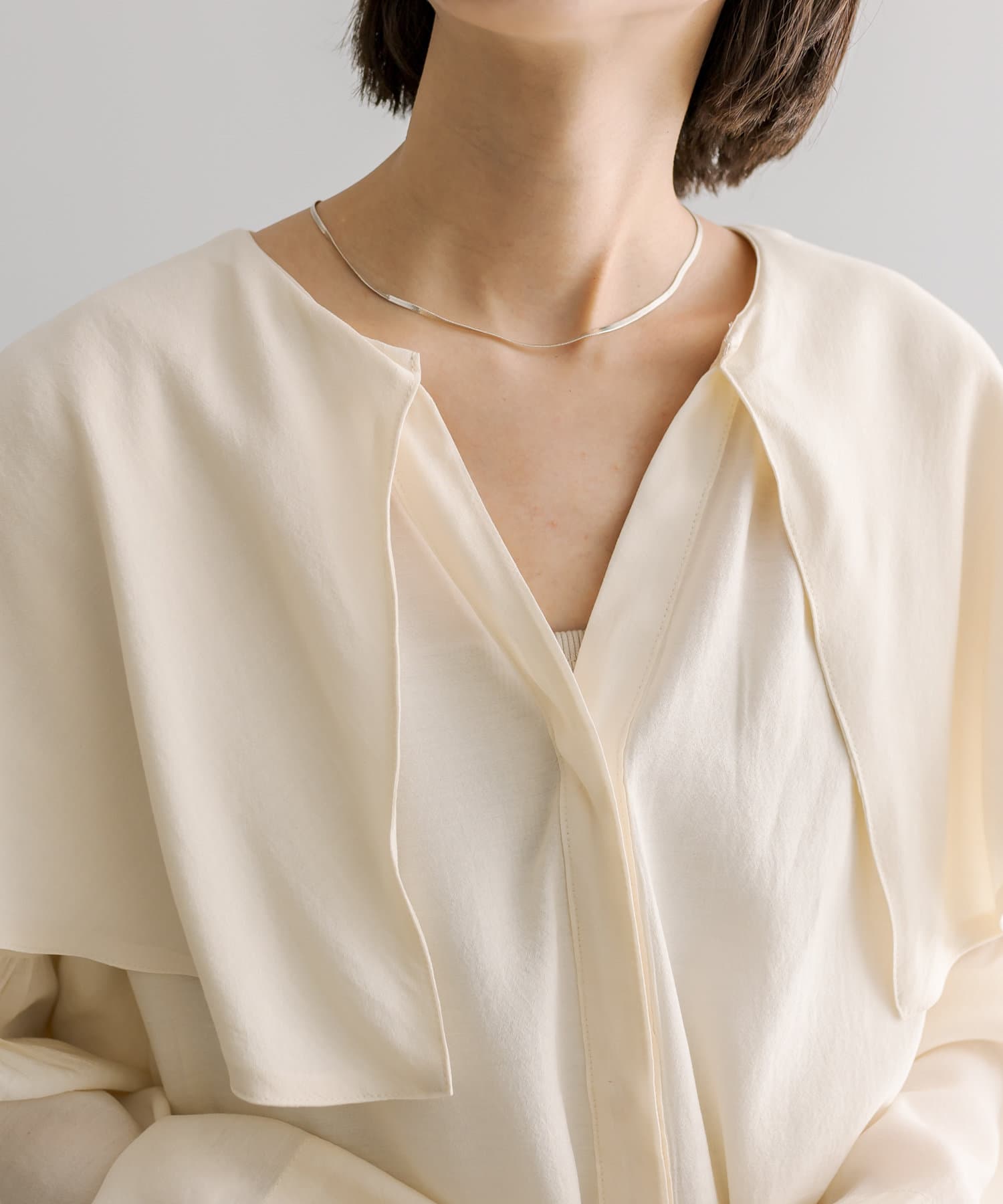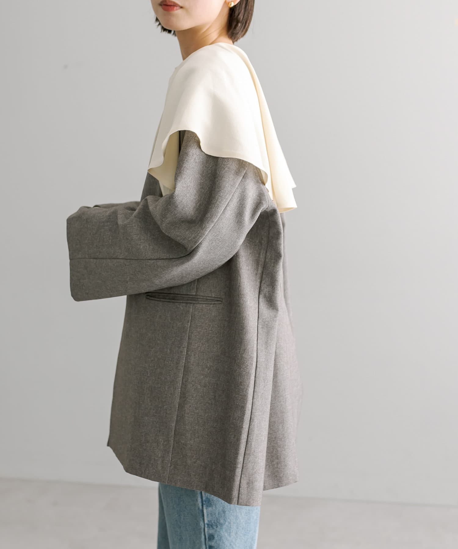 今年も流行るビッグカラー。思ったよりも薄くシアー感もあるので、初夏まで活躍しそうです。
