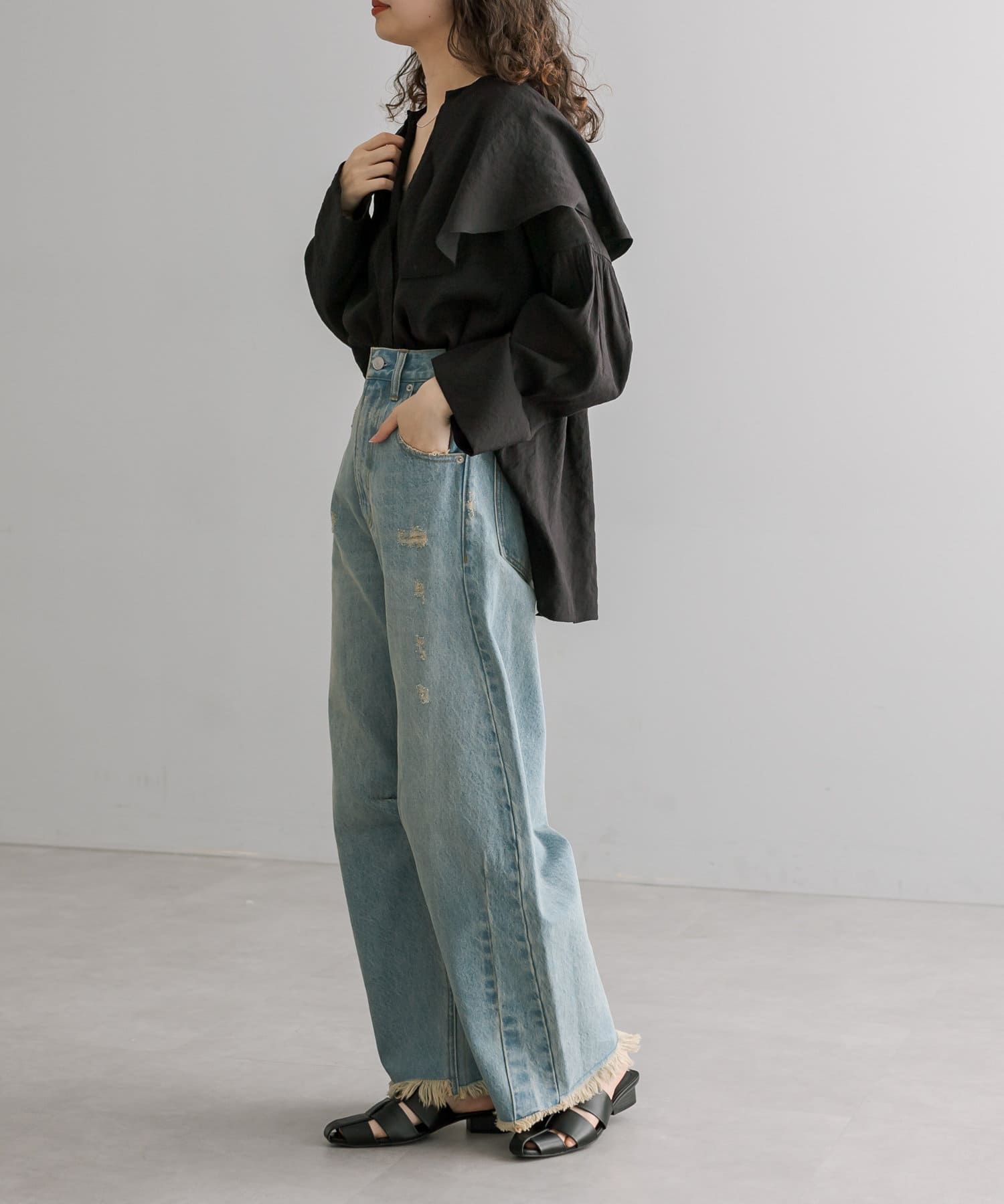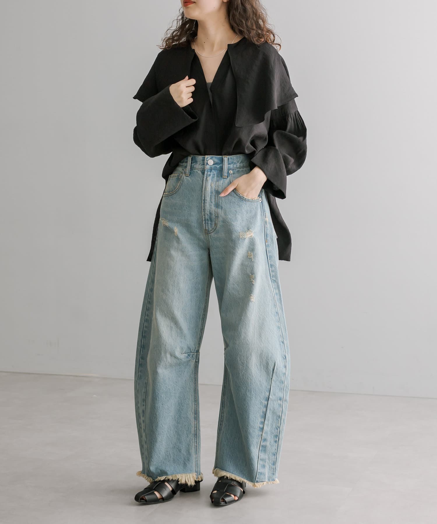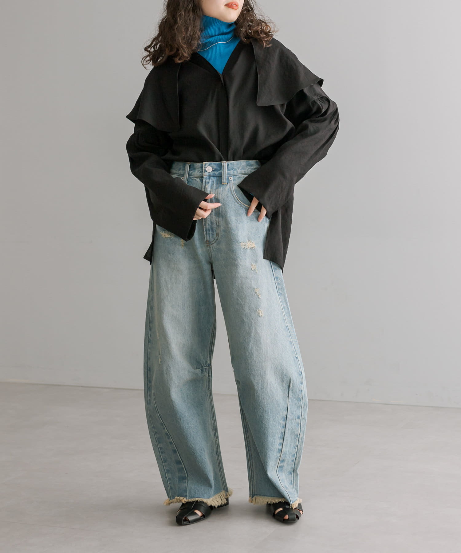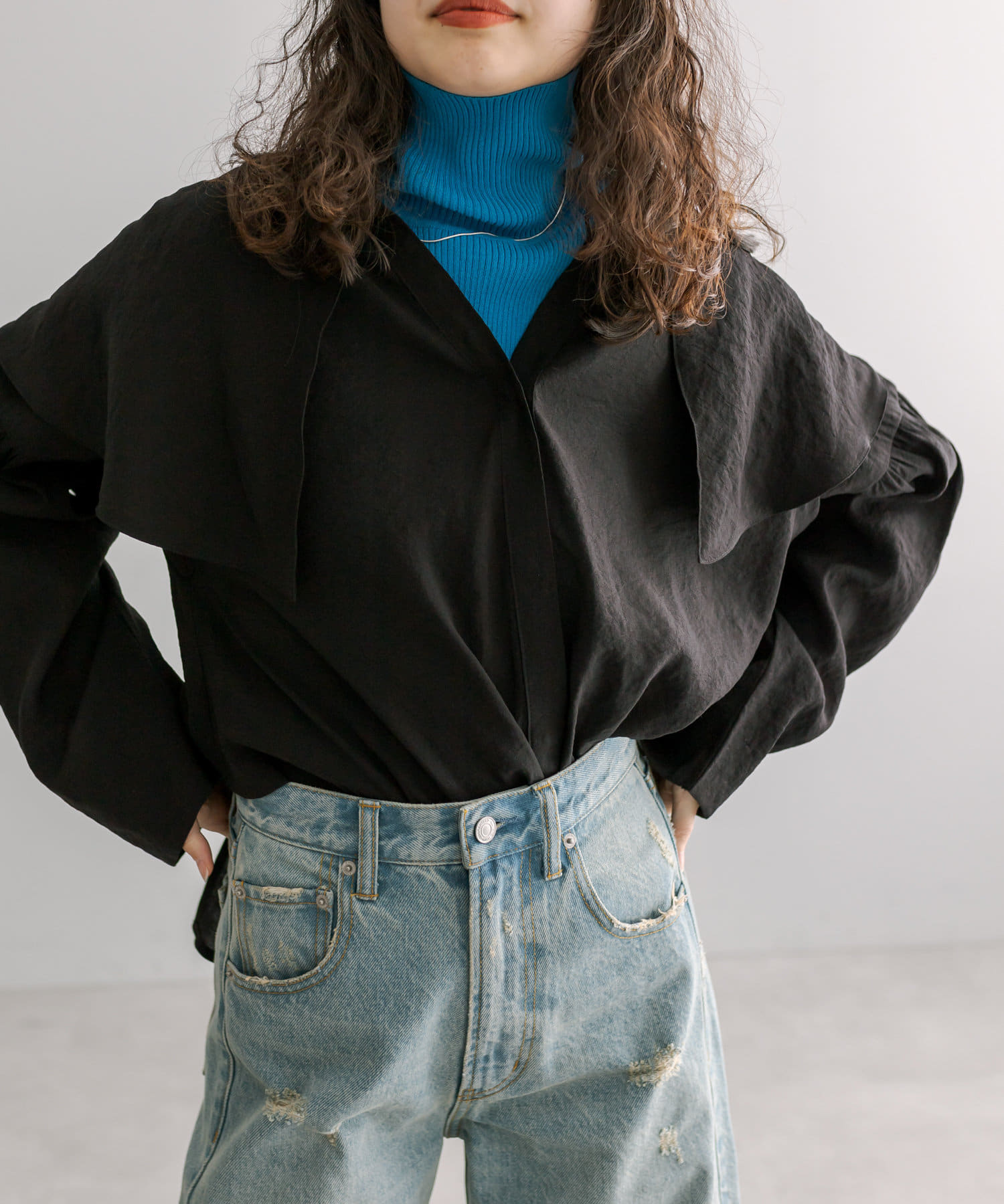 今年も流行るビッグカラー。思ったよりも薄くシアー感もあるので、初夏まで活躍しそうです。