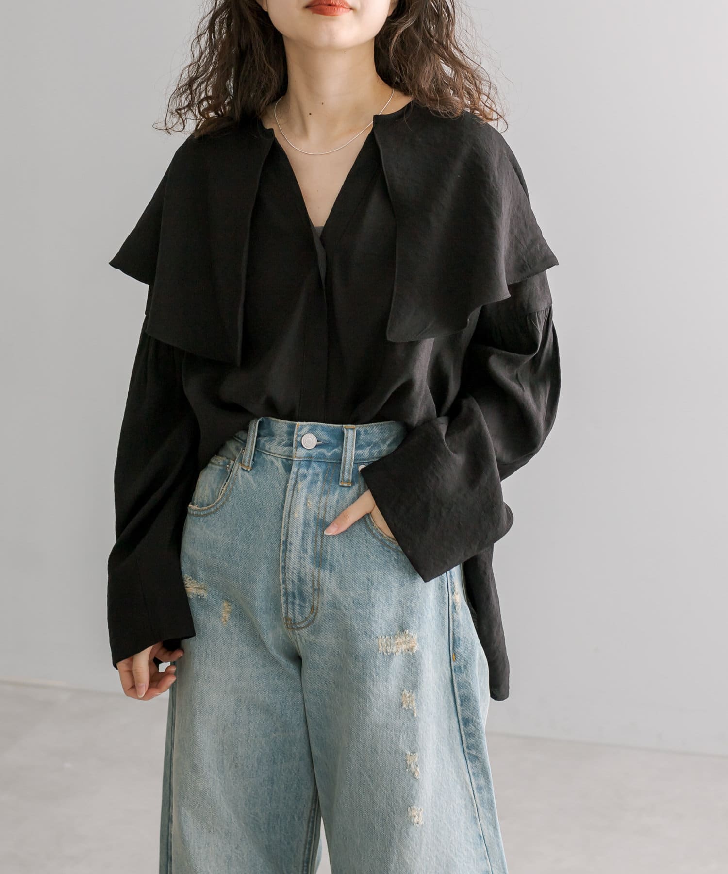 購入場所:店舗春用にブラウスを探していたのですが、襟がとても可愛くてどんなボトムにもあう万能なお洋服だったので購入しました!