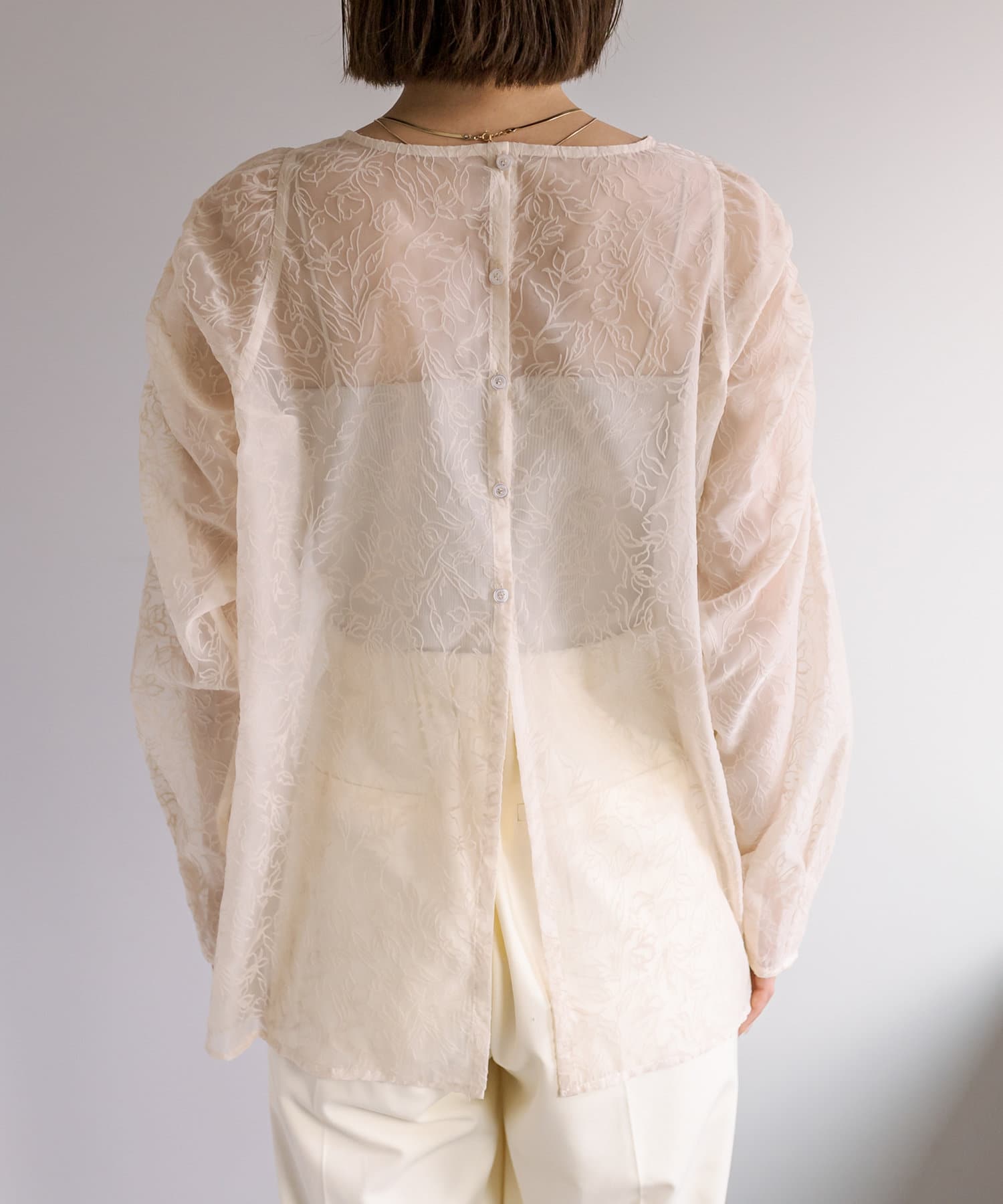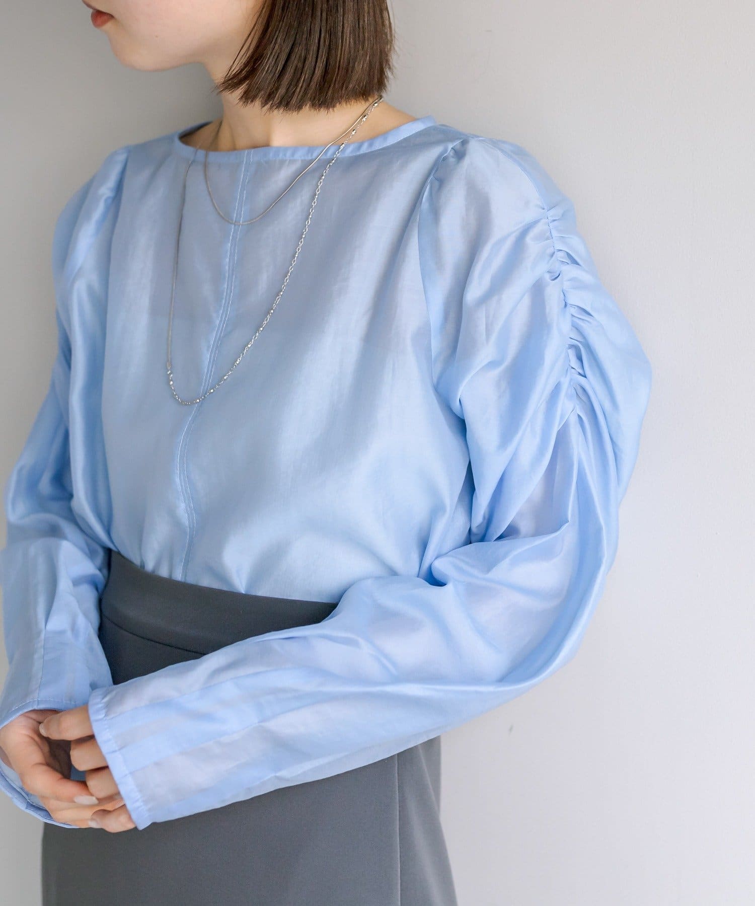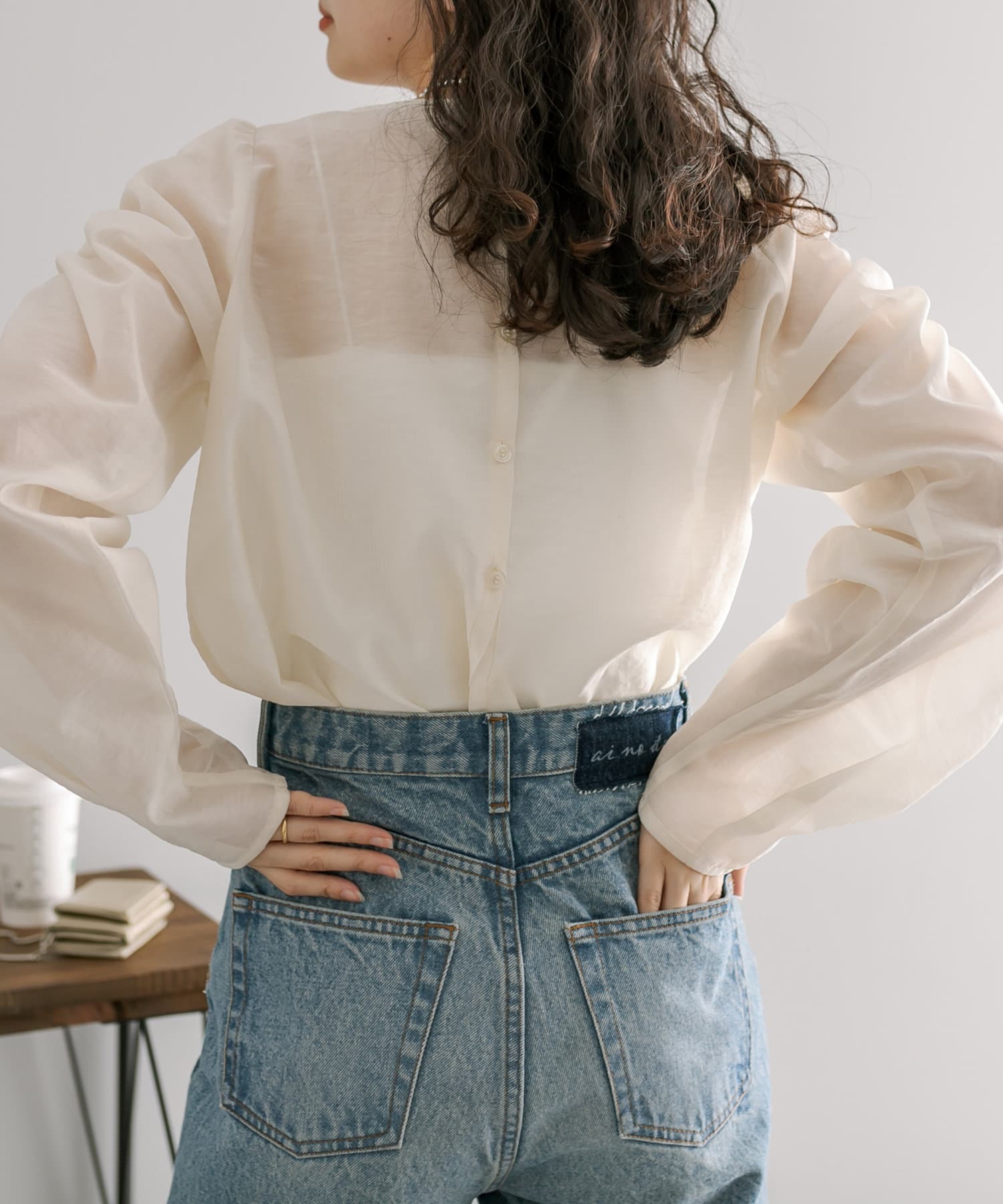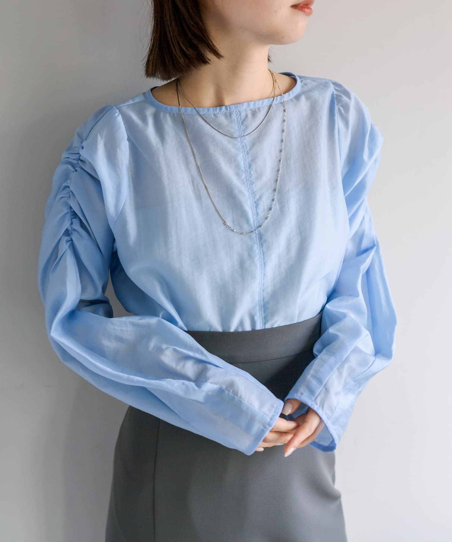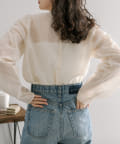 無地・柄の4色展開!パワショルデザインが目を惹くシアーブラウス。