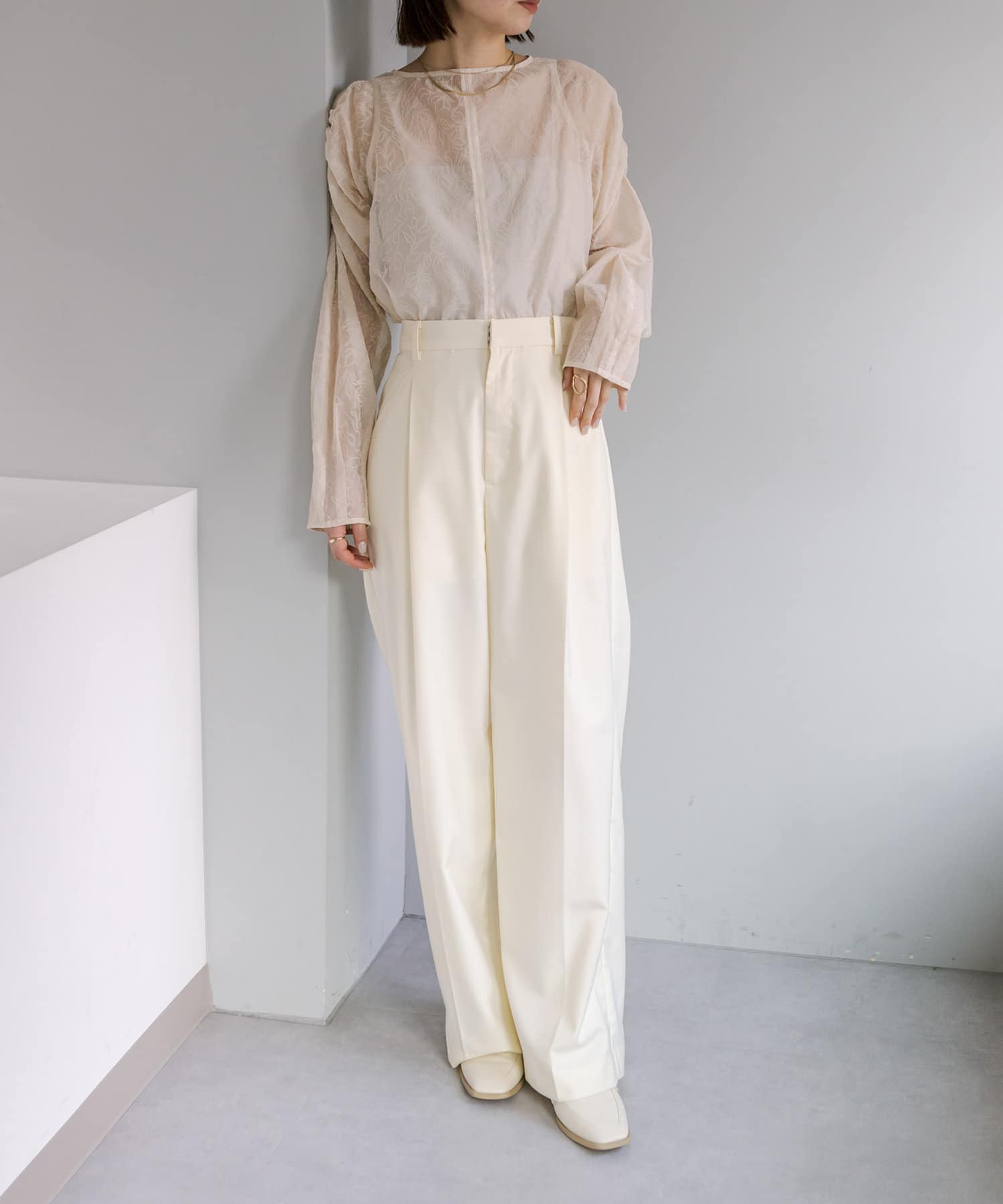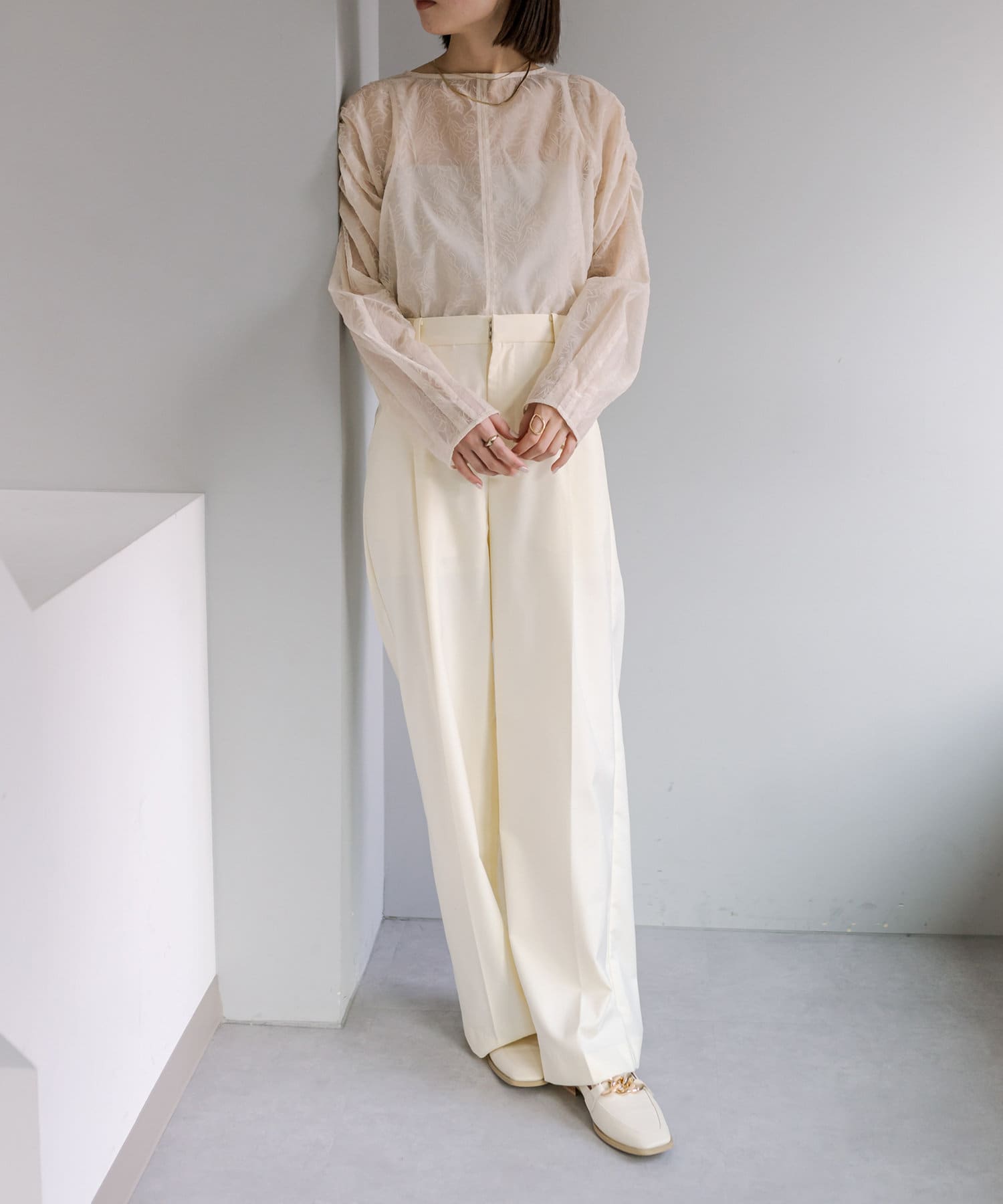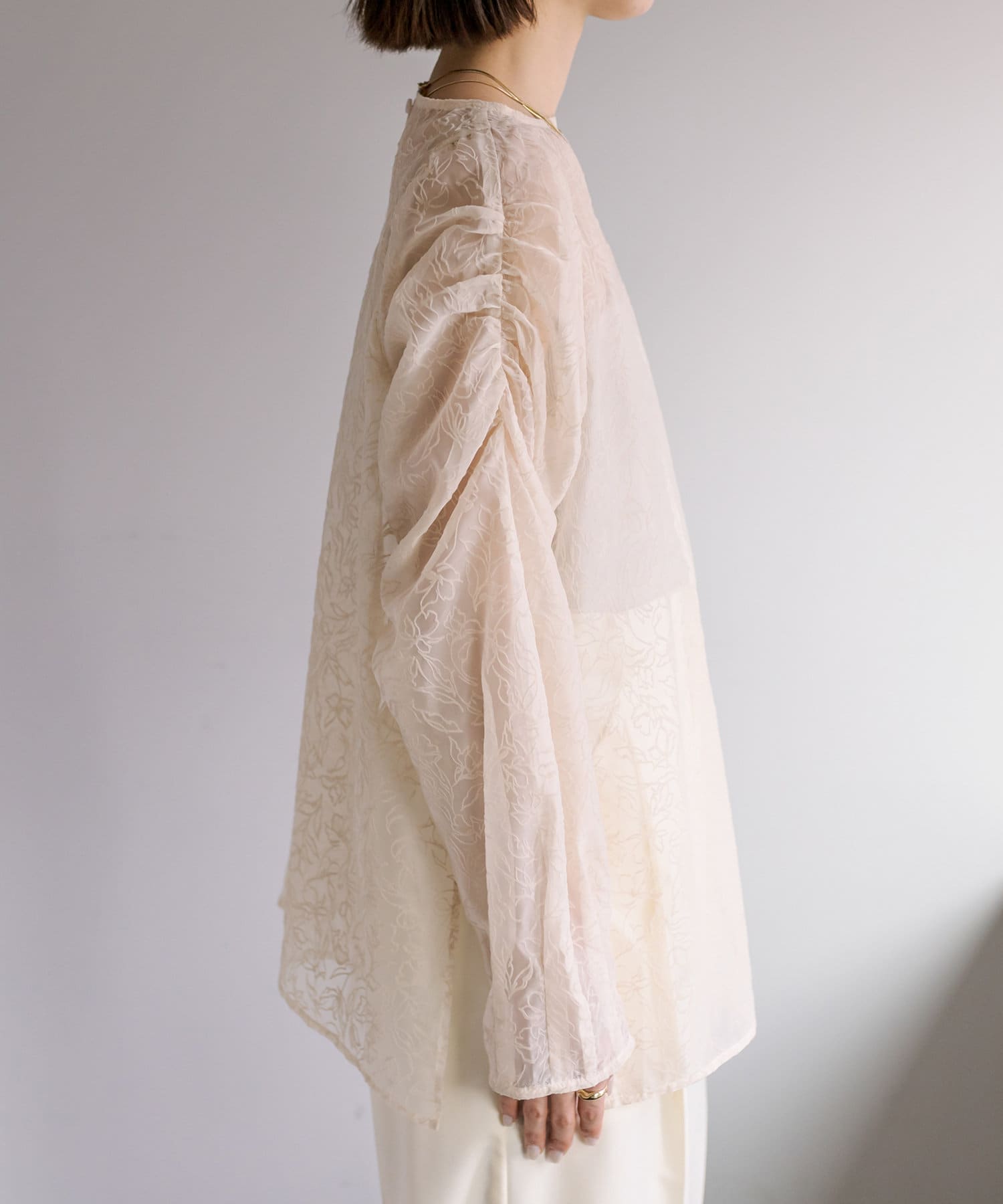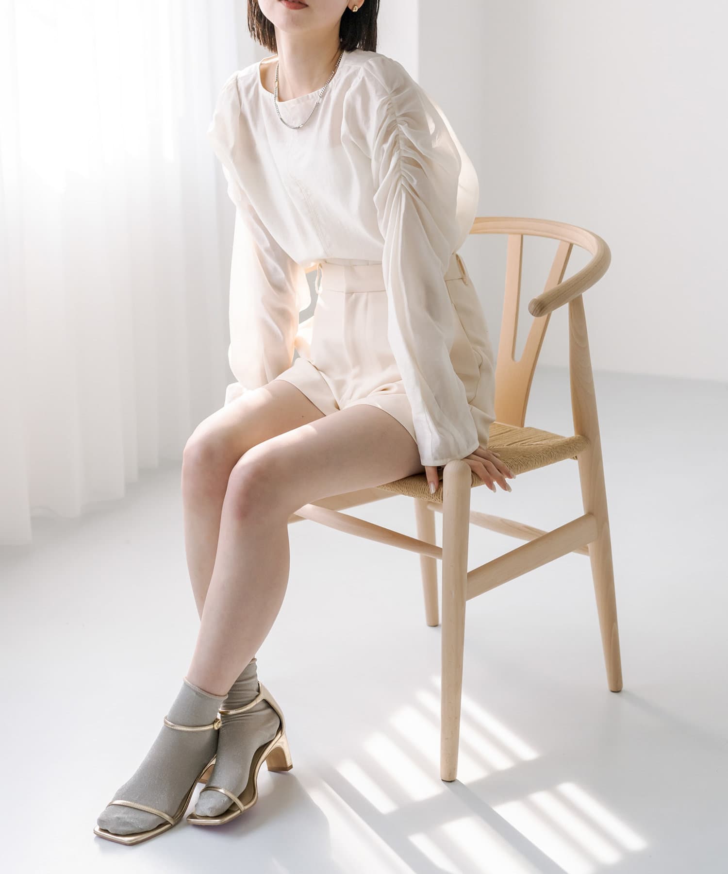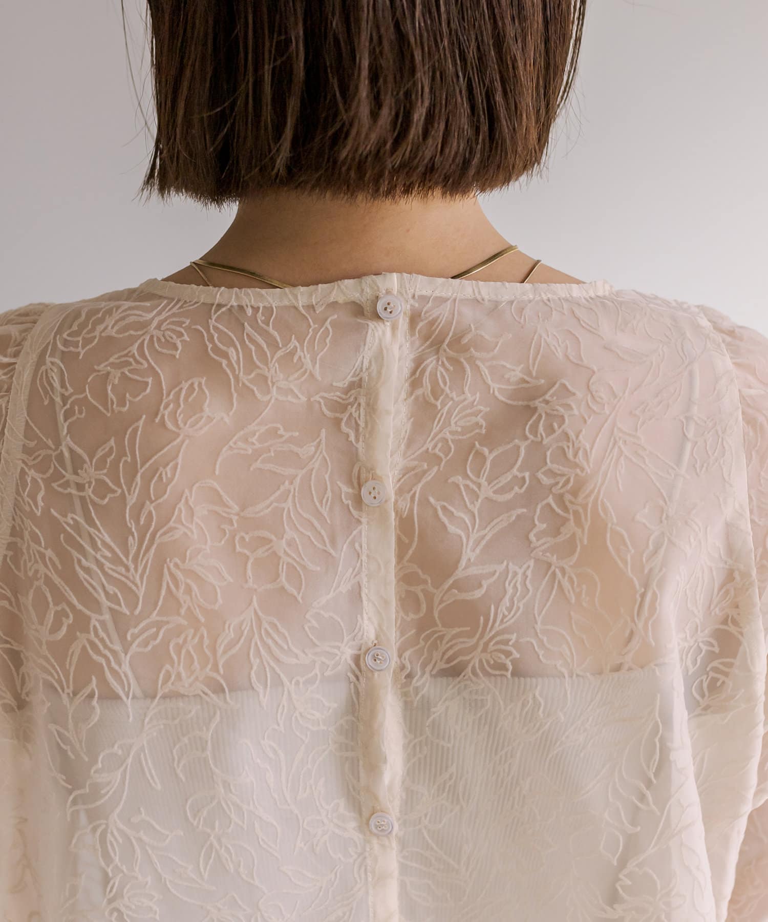 無地・柄の4色展開!パワショルデザインが目を惹くシアーブラウス。