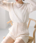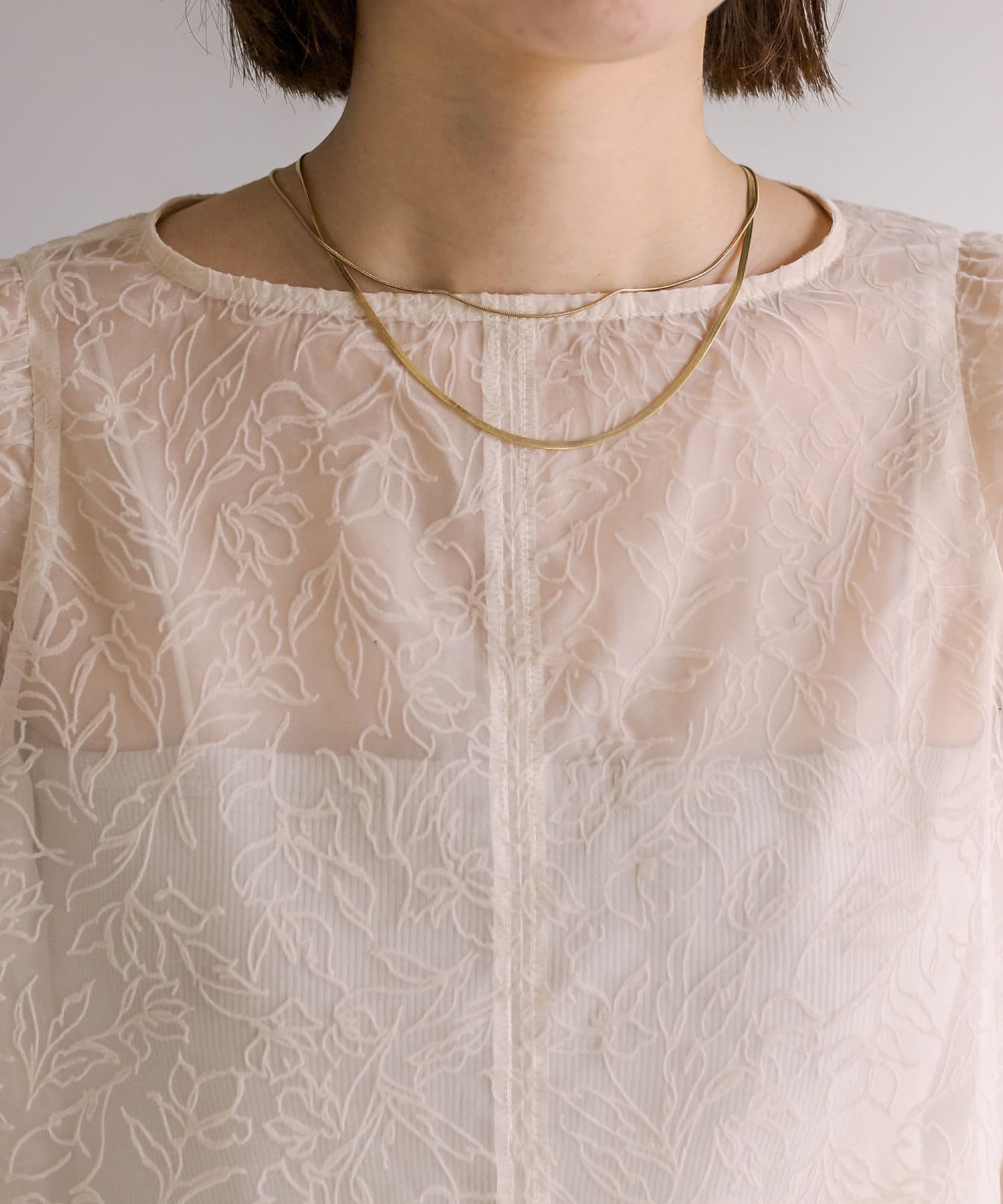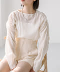 ・透け感のあるアイテムなので同色に近いパット付キャミソールを合わせて頂くのがオススメ!