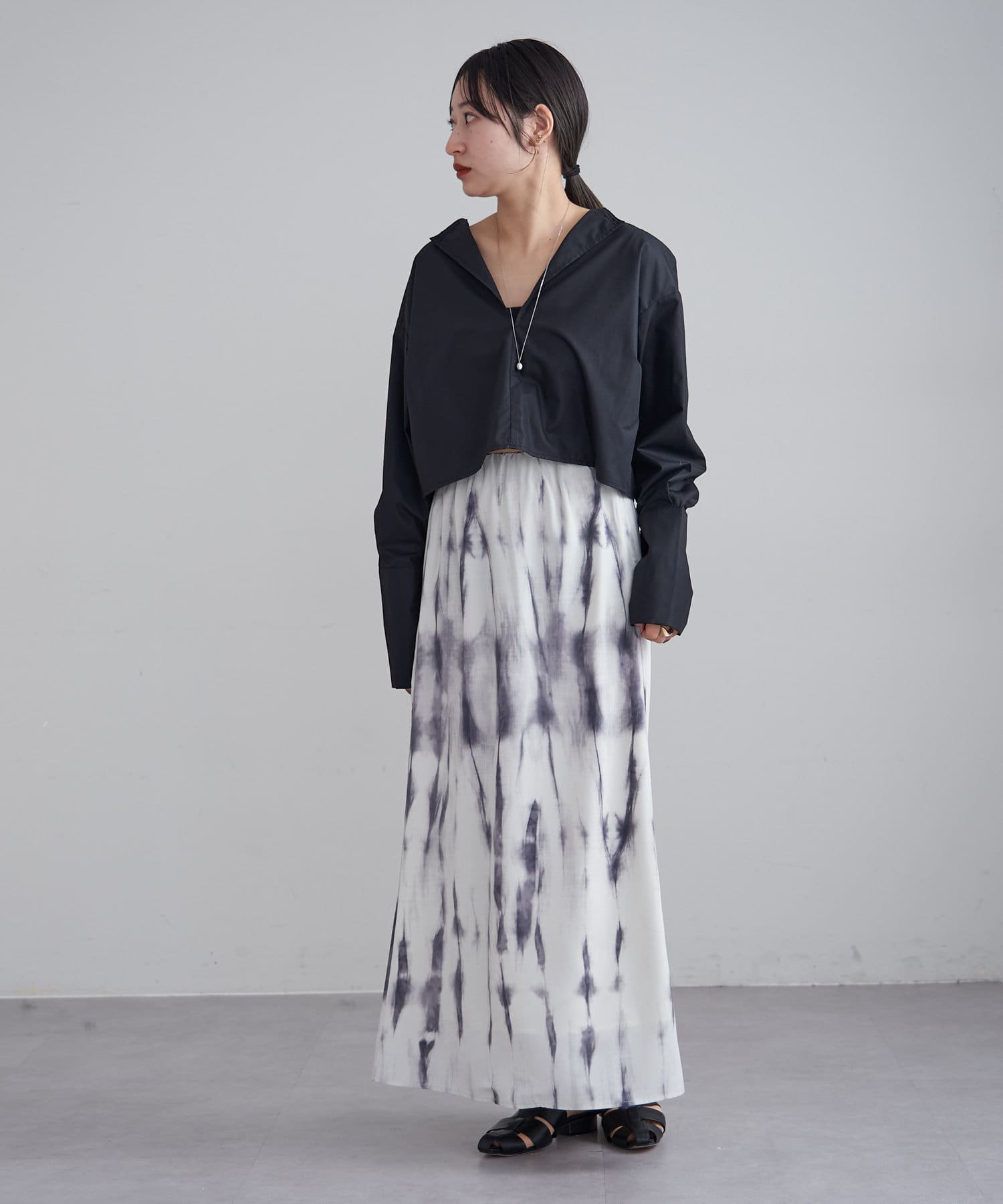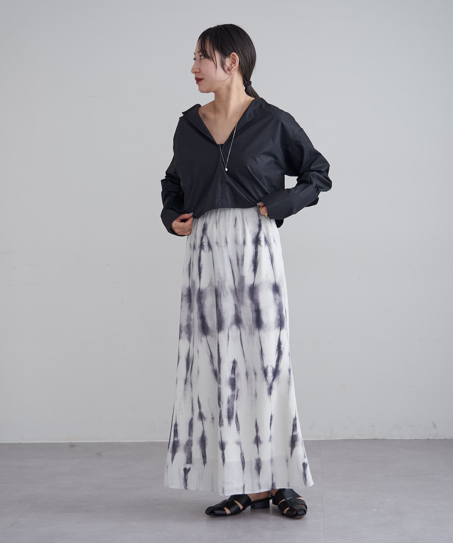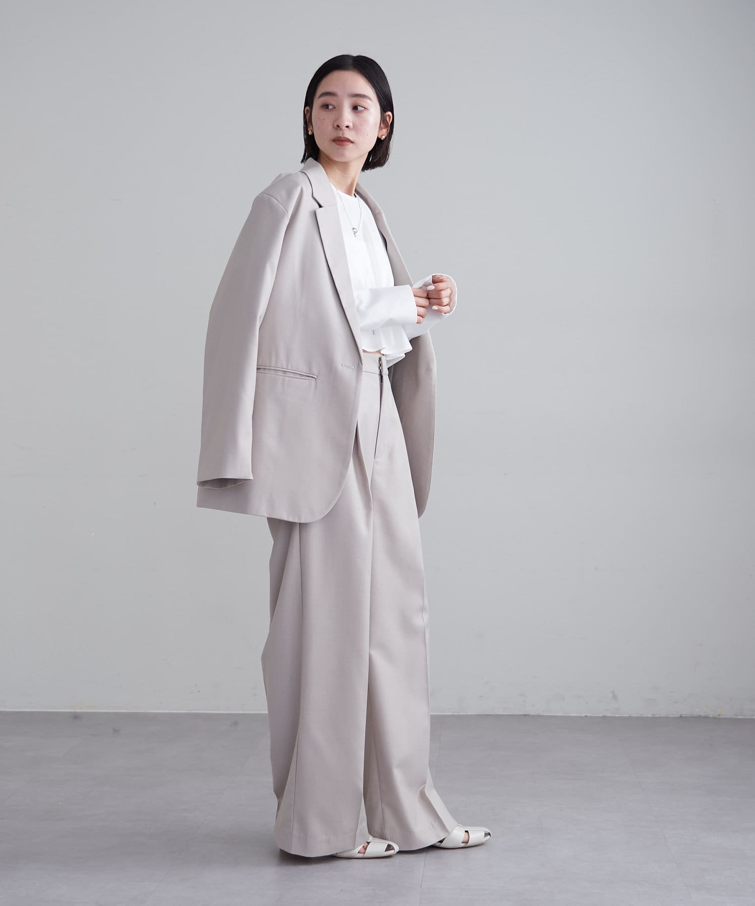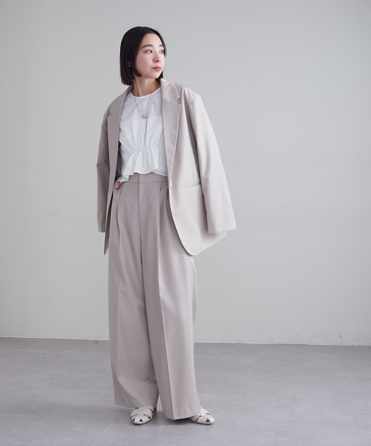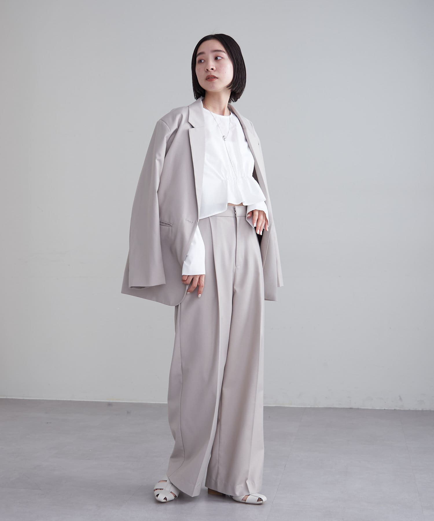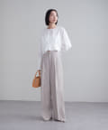 ・スラックスやハイウエストのボトムを合わせるとよりすっきりと着て頂けます。