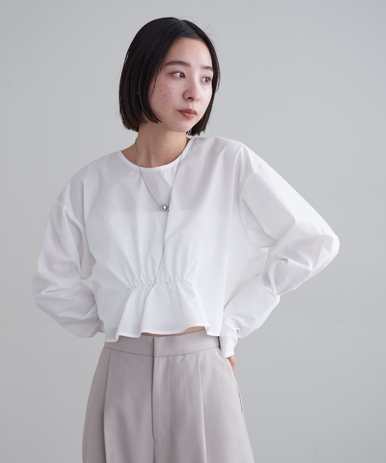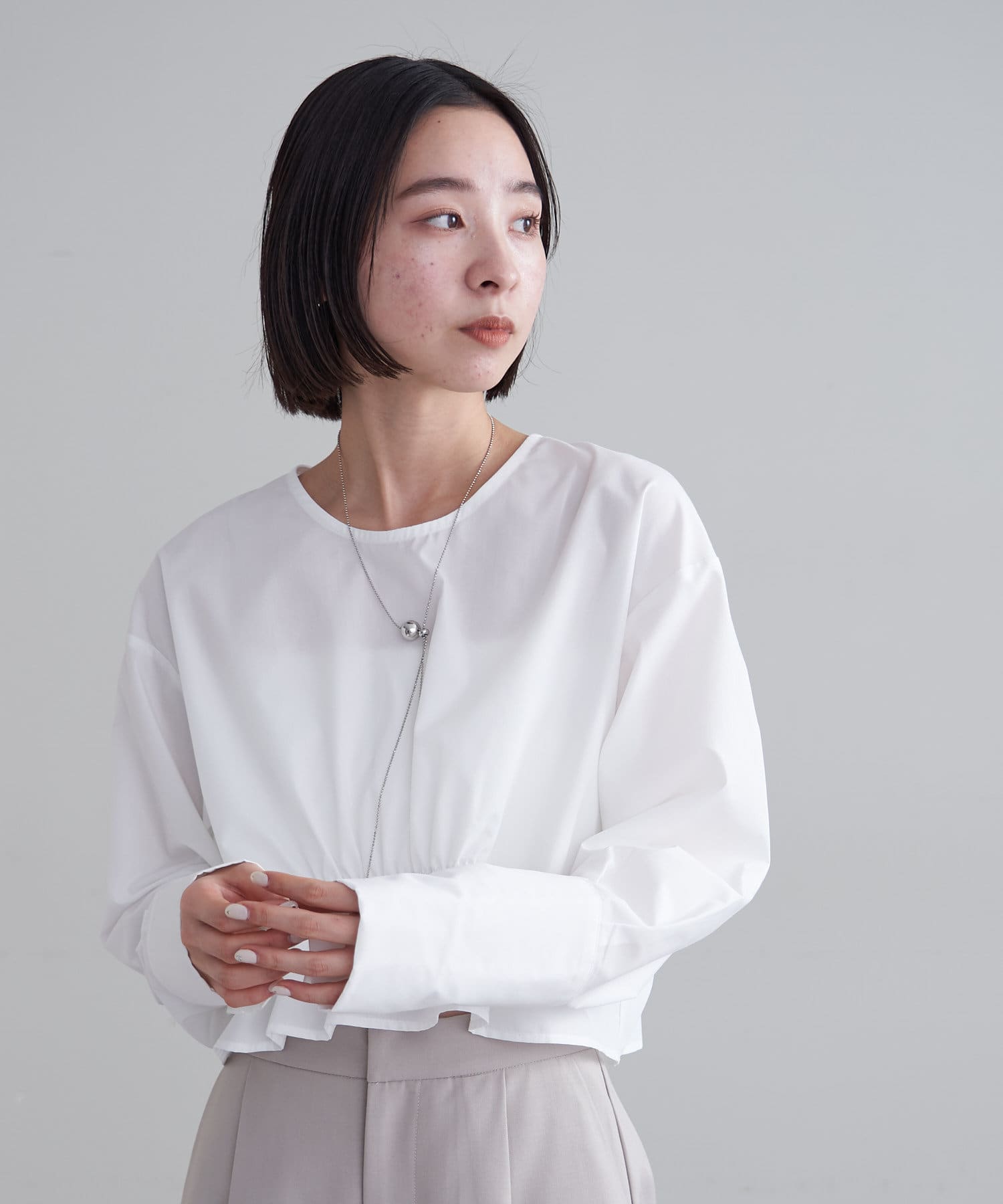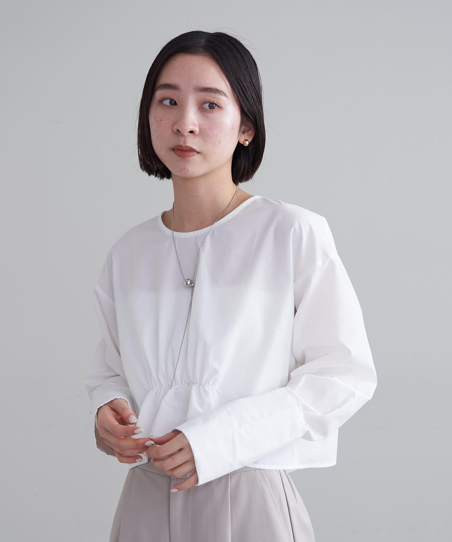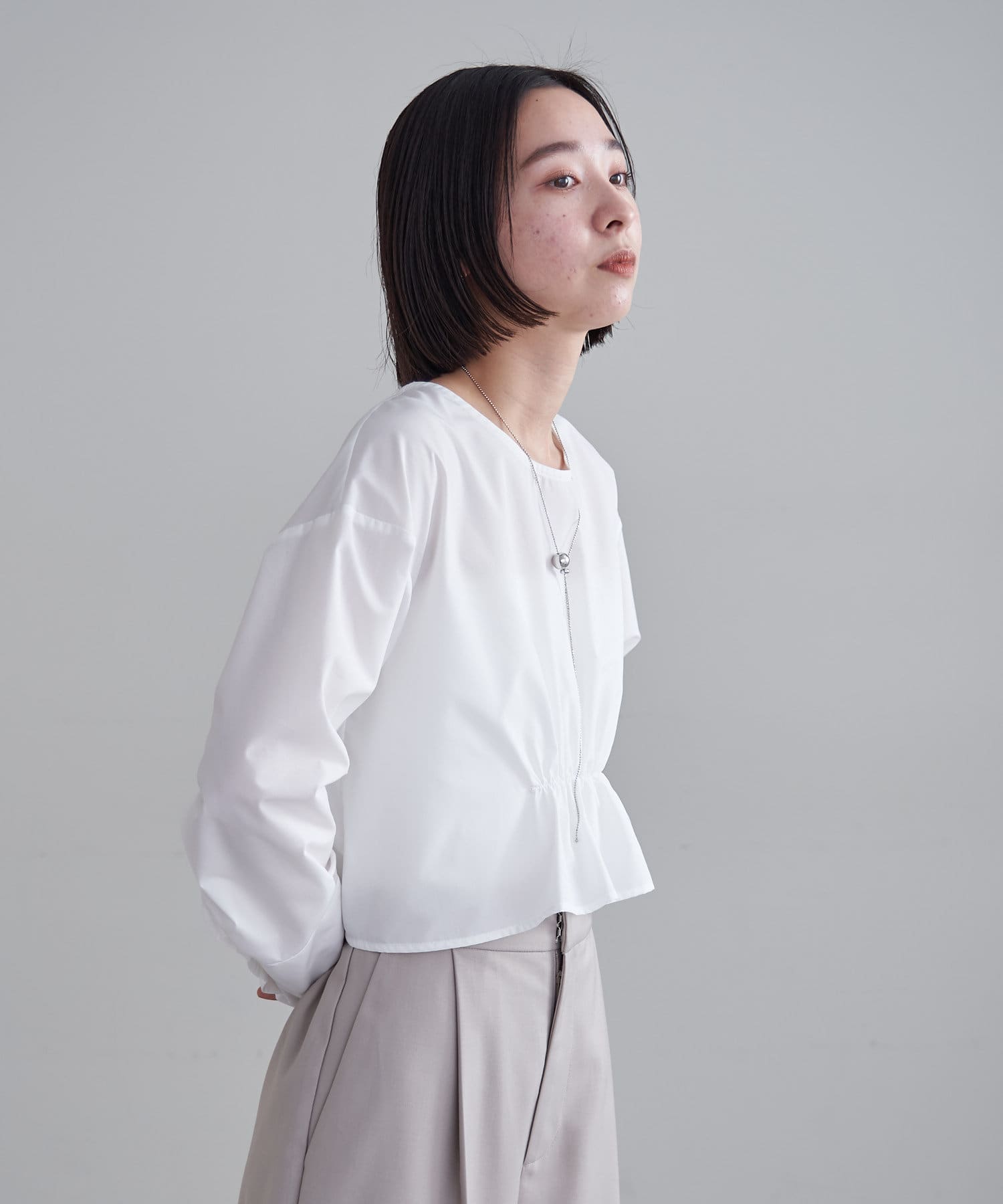 さりげないギャザーがポイントに。前後で印象の変わる着回しブラウス!