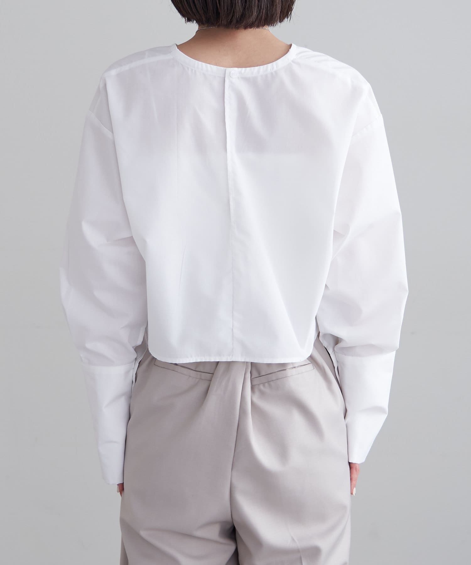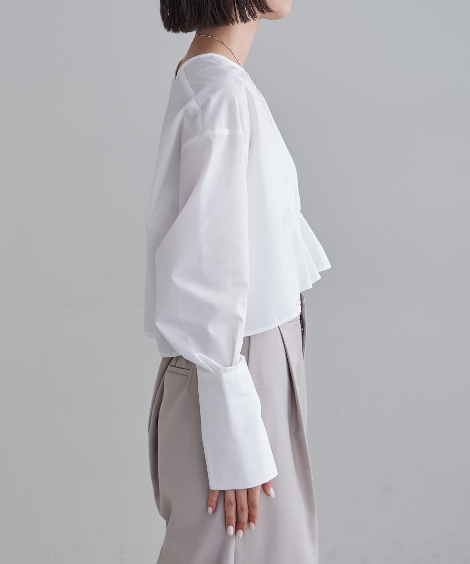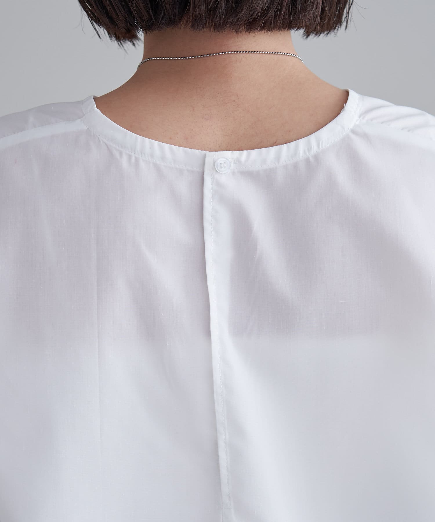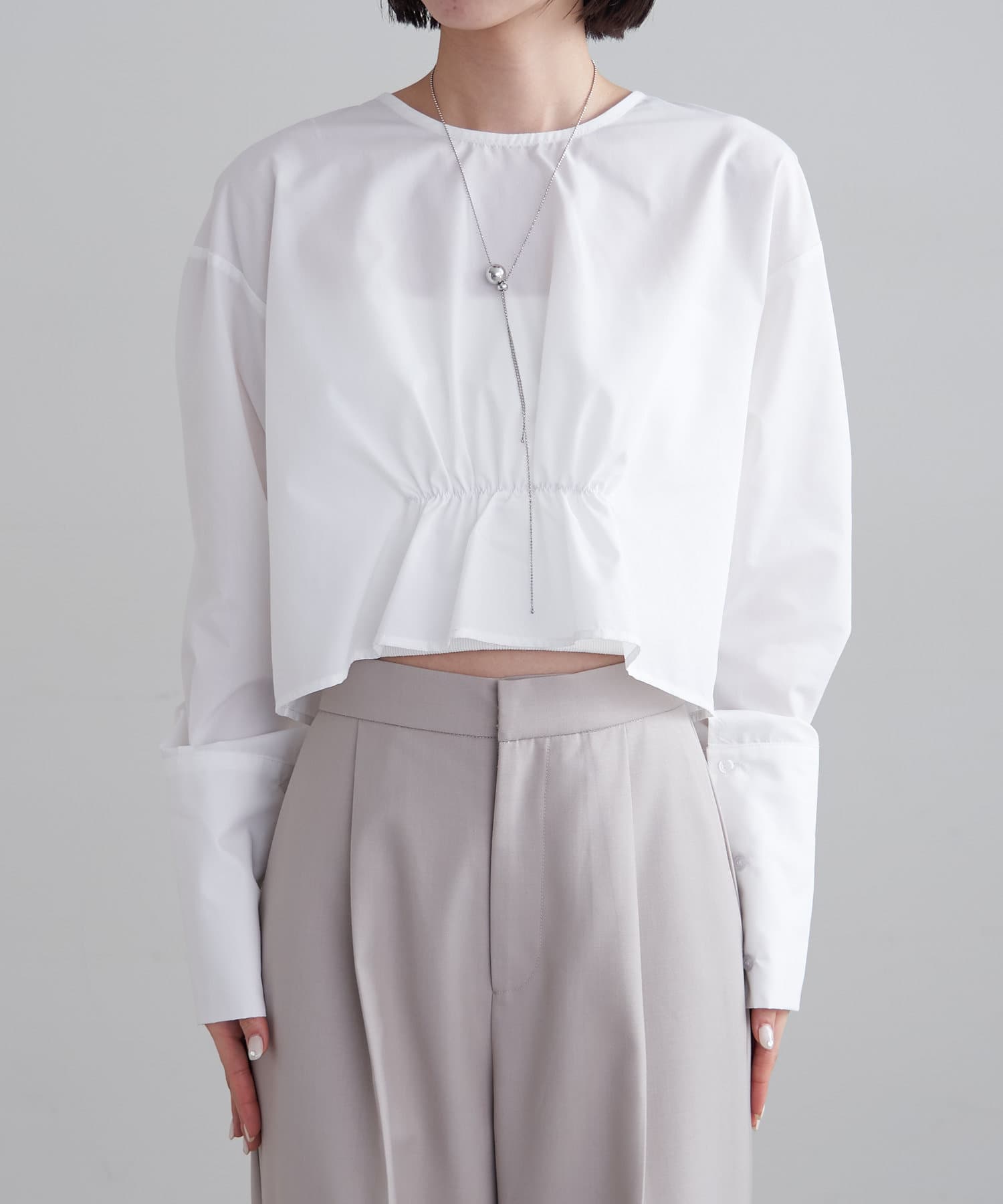 さりげないギャザーがポイントに。前後で印象の変わる着回しブラウス!