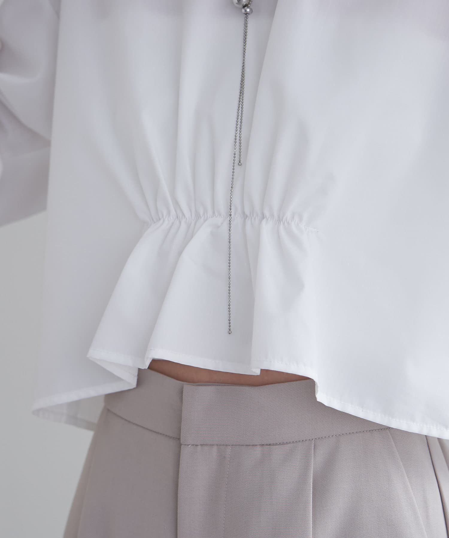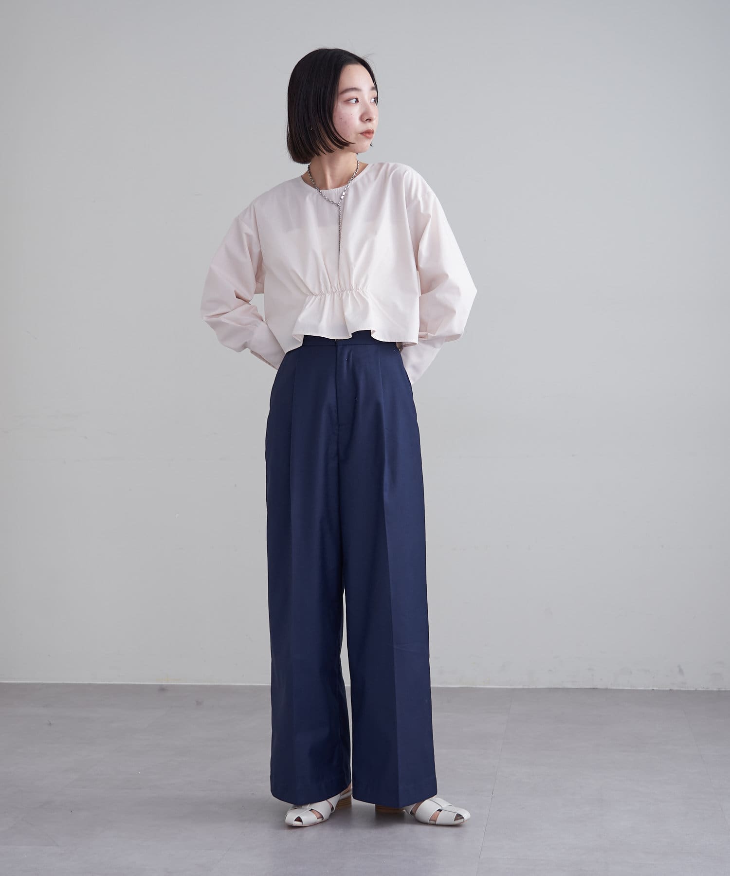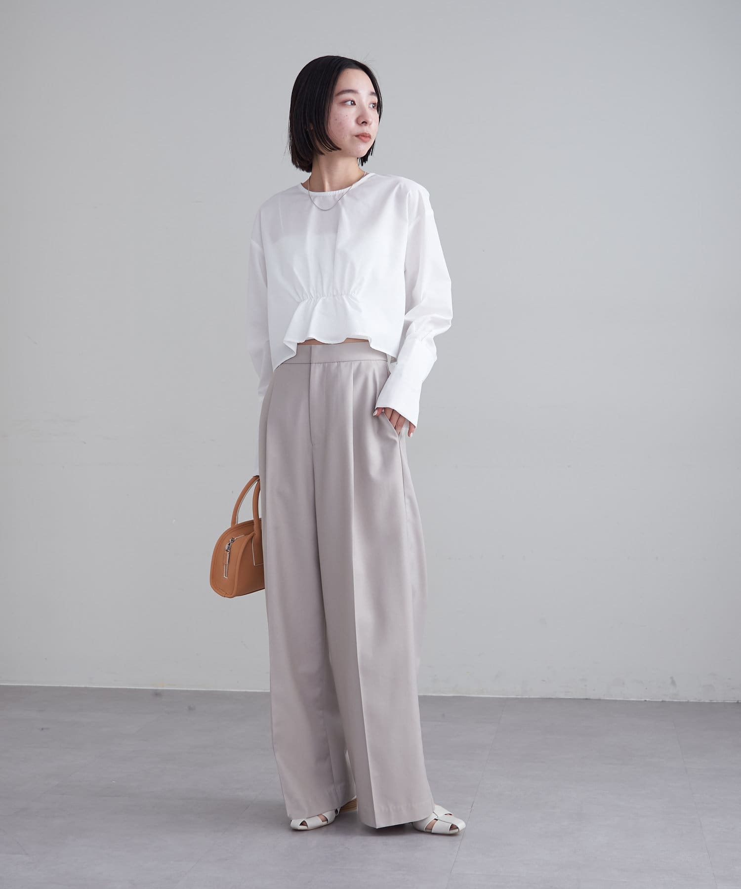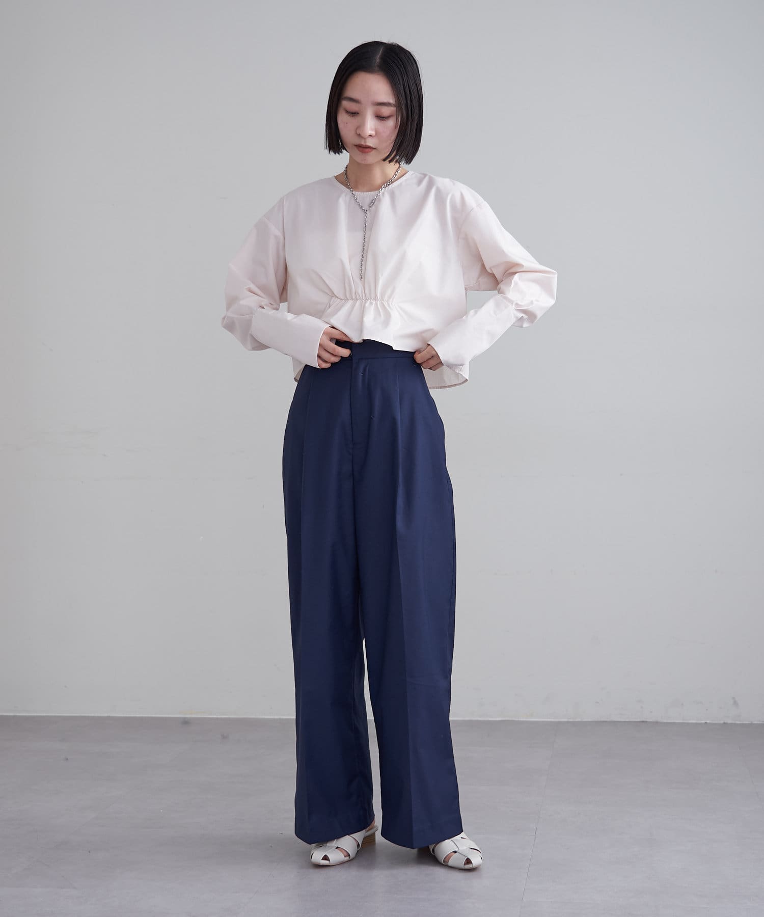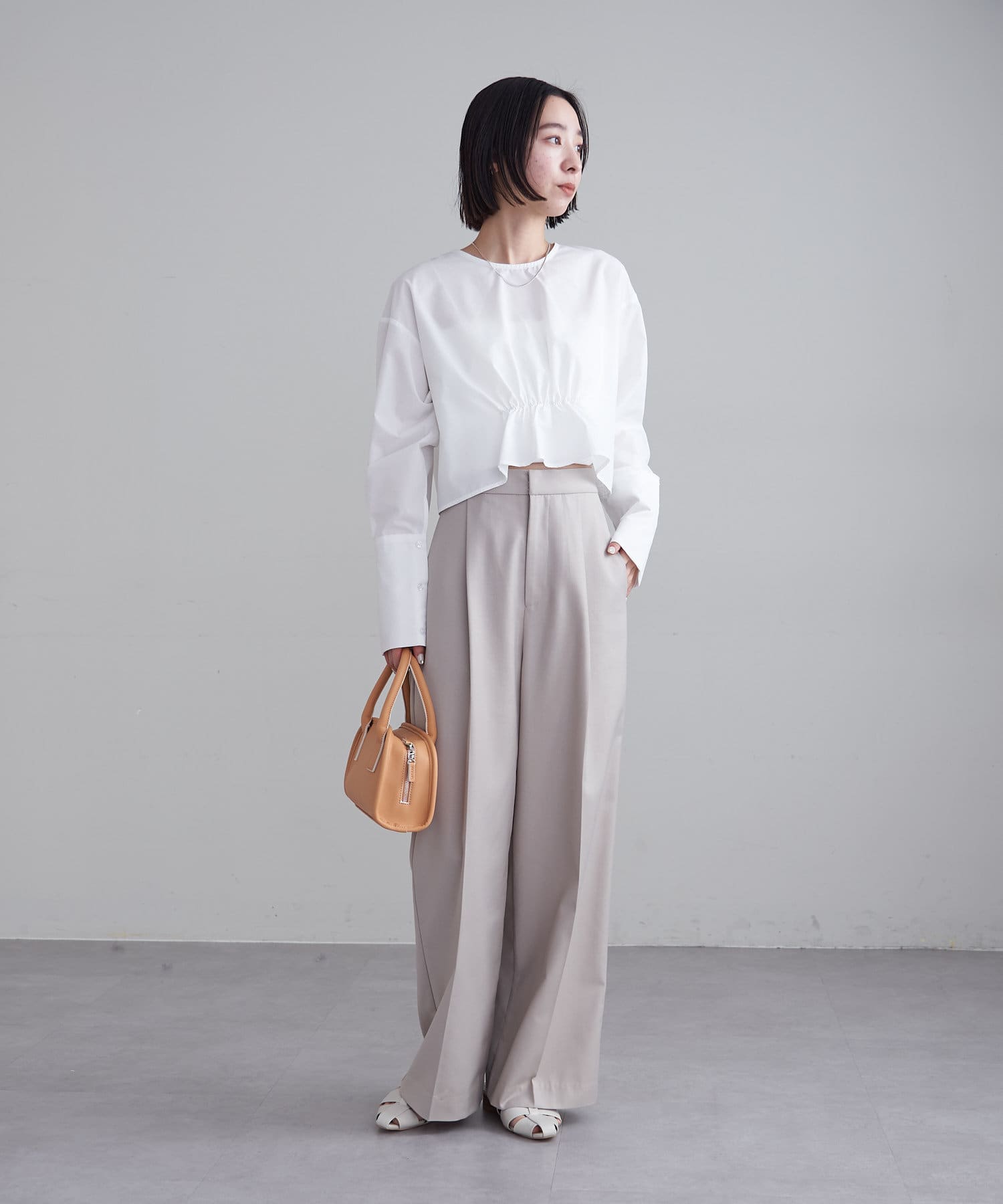 ・センターに入ったギャザーがスタイリングのさりげないポイントに。