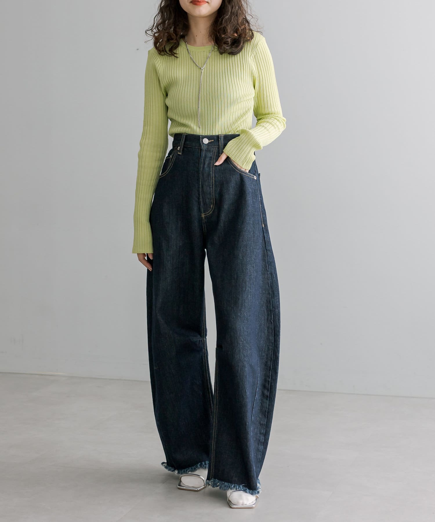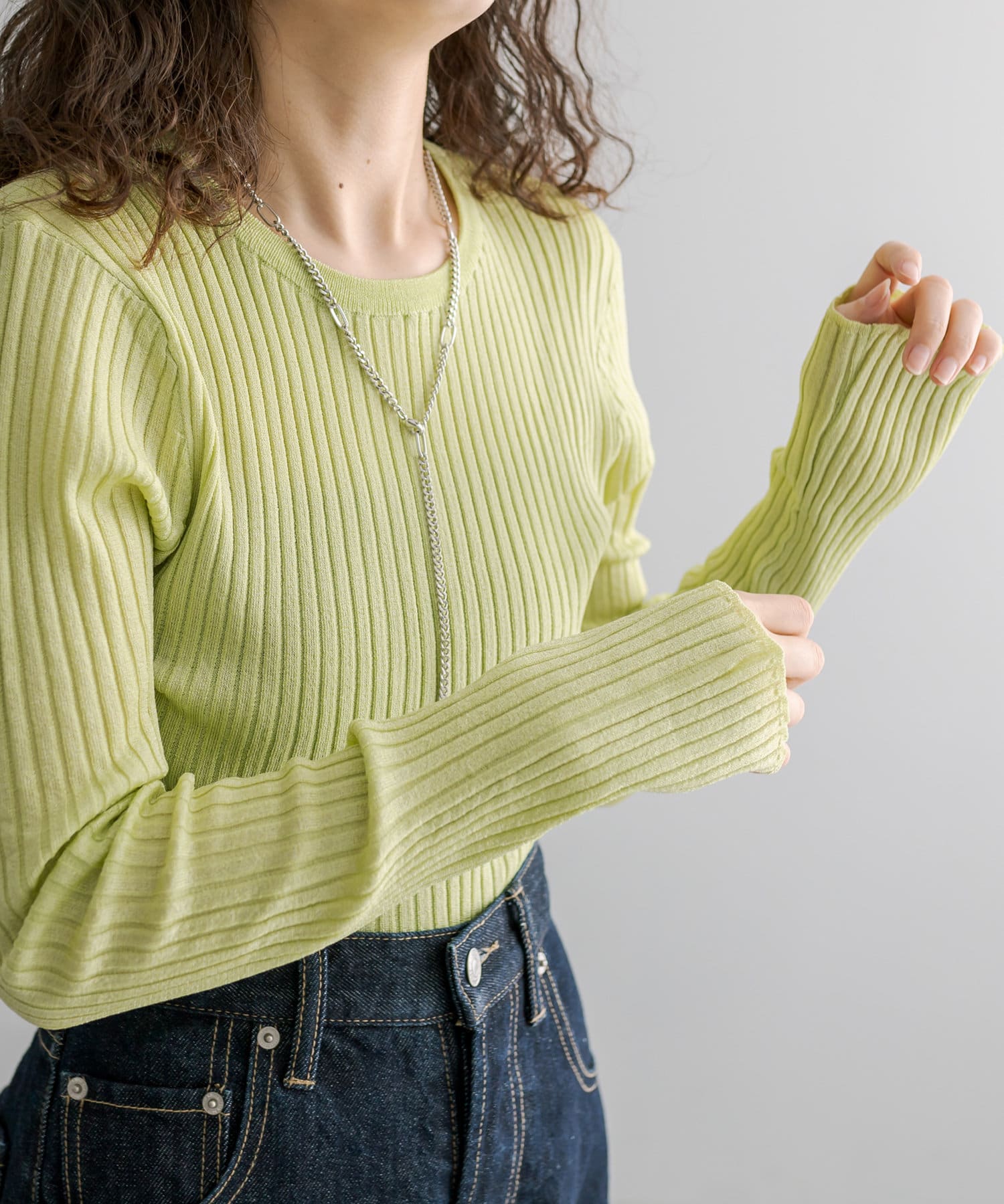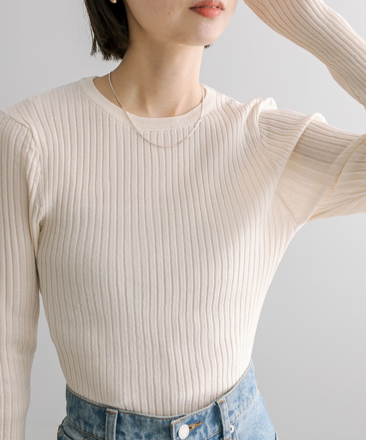 ・伸縮性のあるリブニットはボディラインに程よくフィットしてくれます。