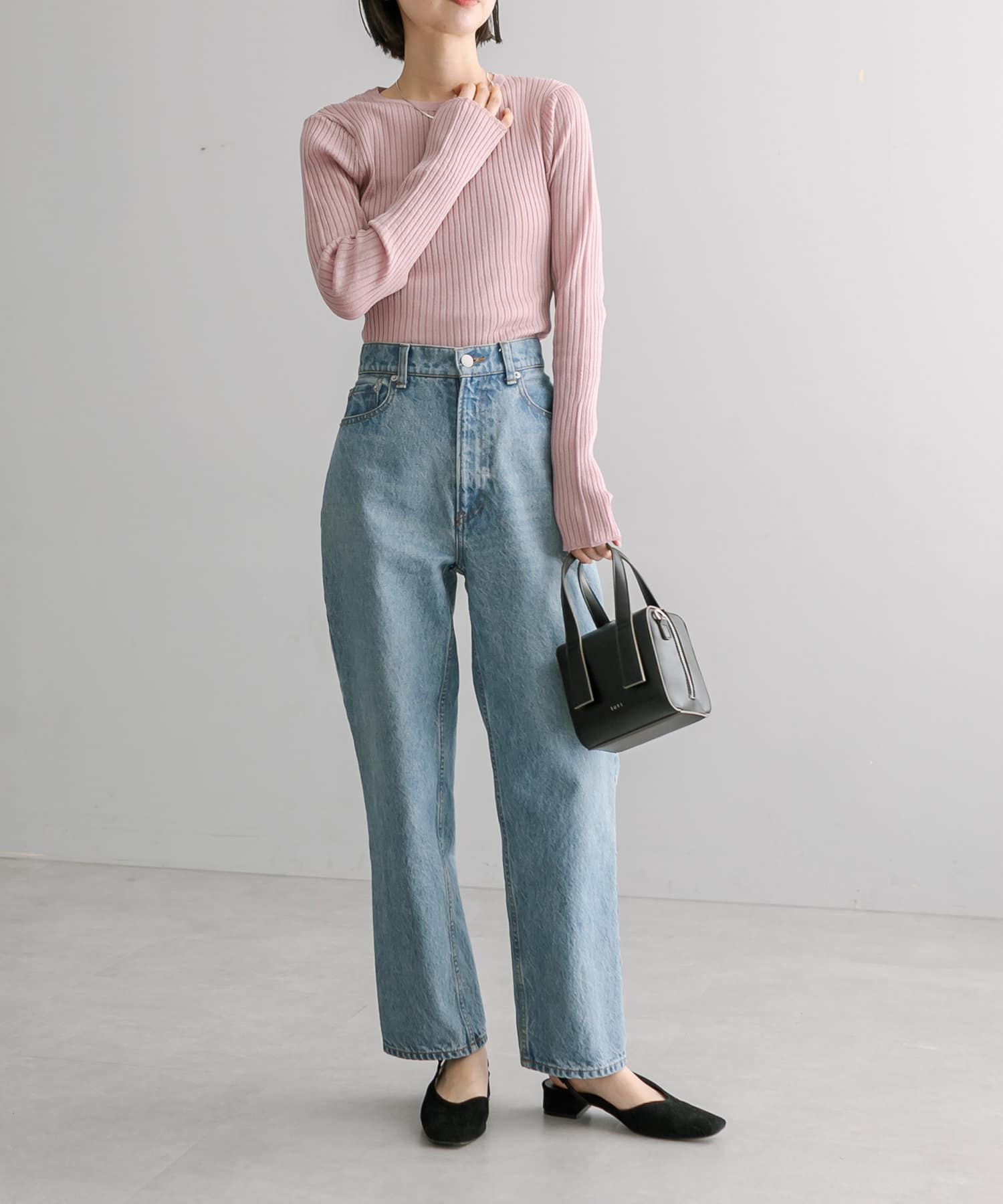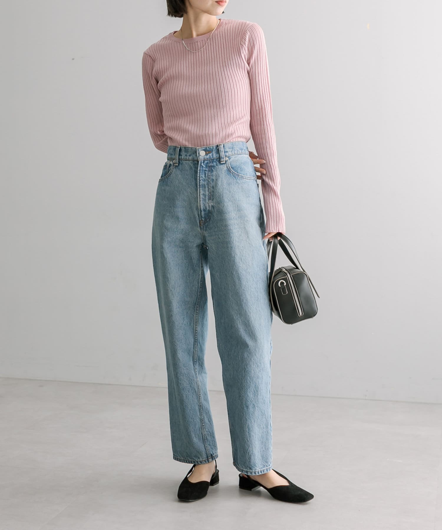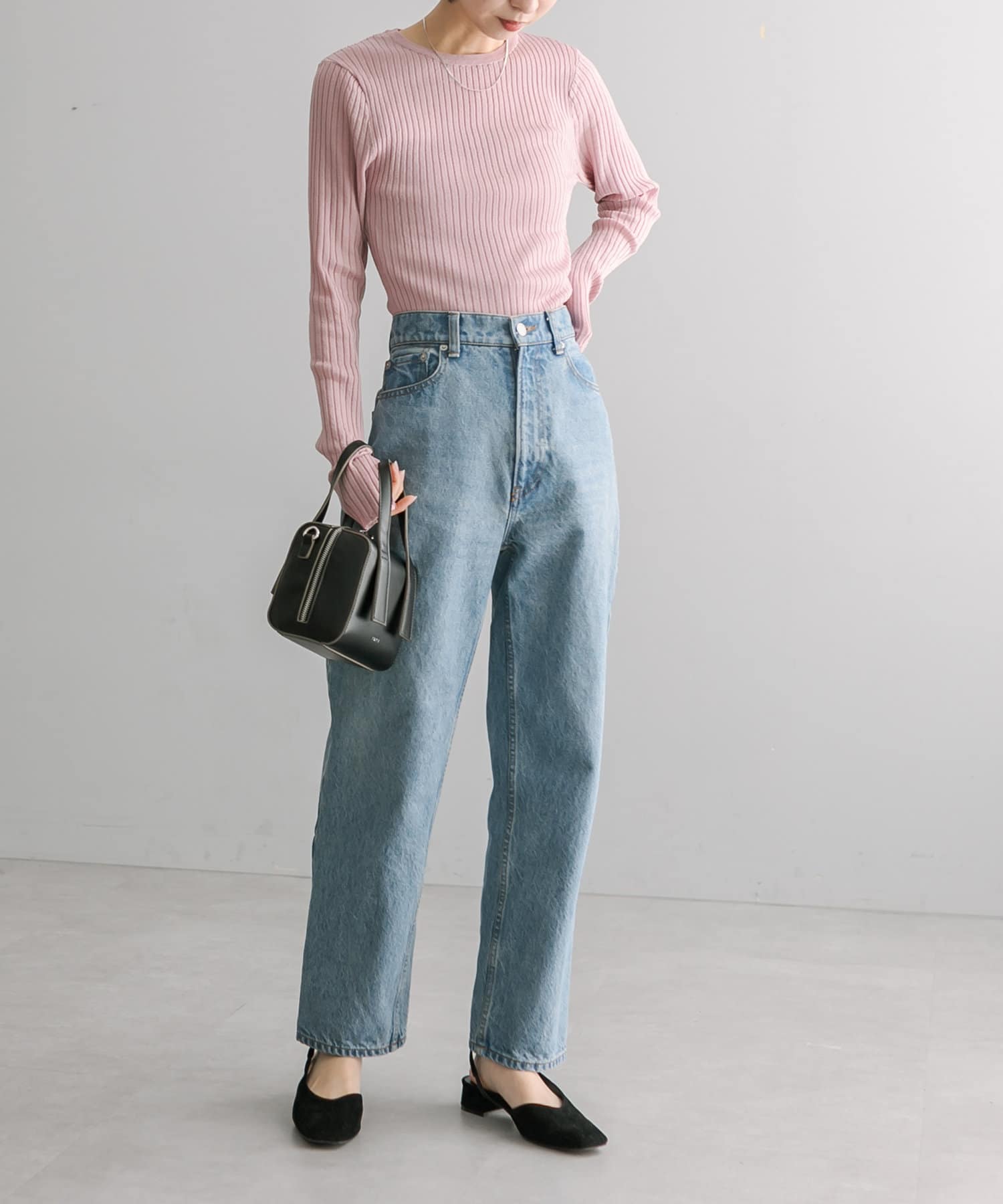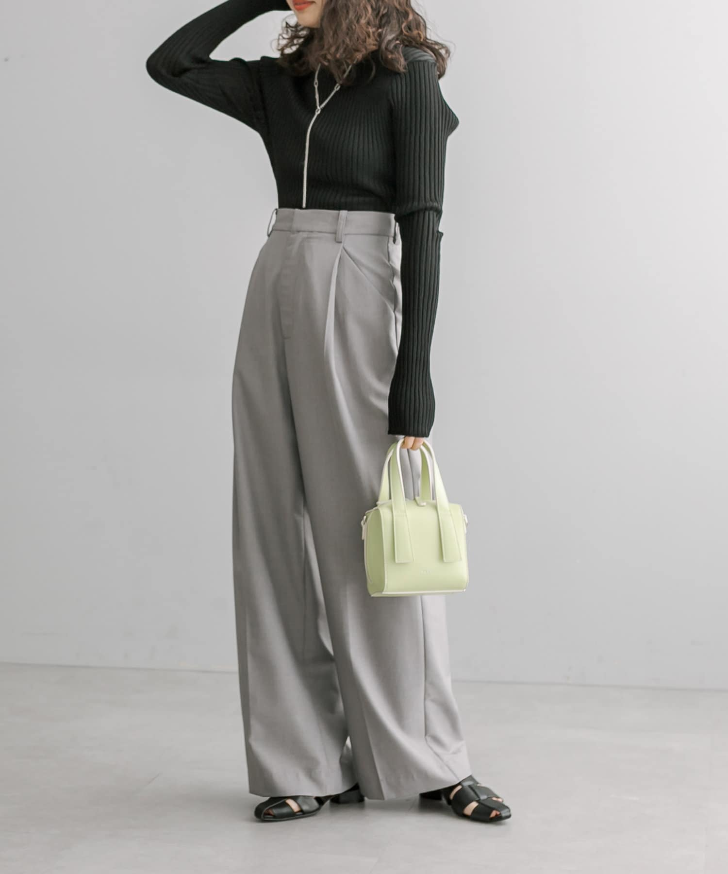 ・ハイウエストボトムと相性抜群!スラックスパンツやデニムなどベーシックなコーディネートに。