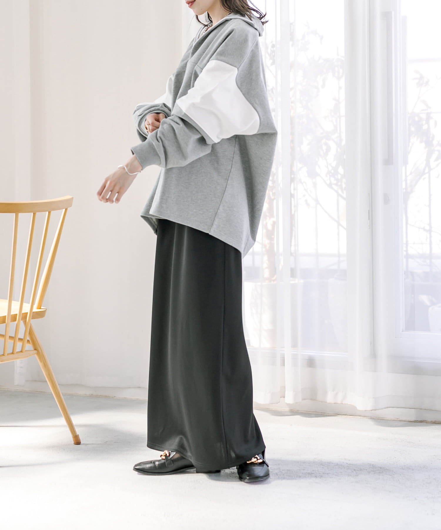 ・トレンドのロングスカパンやニットワンピースなどにレイヤードして女性らしいスタイリングに◎