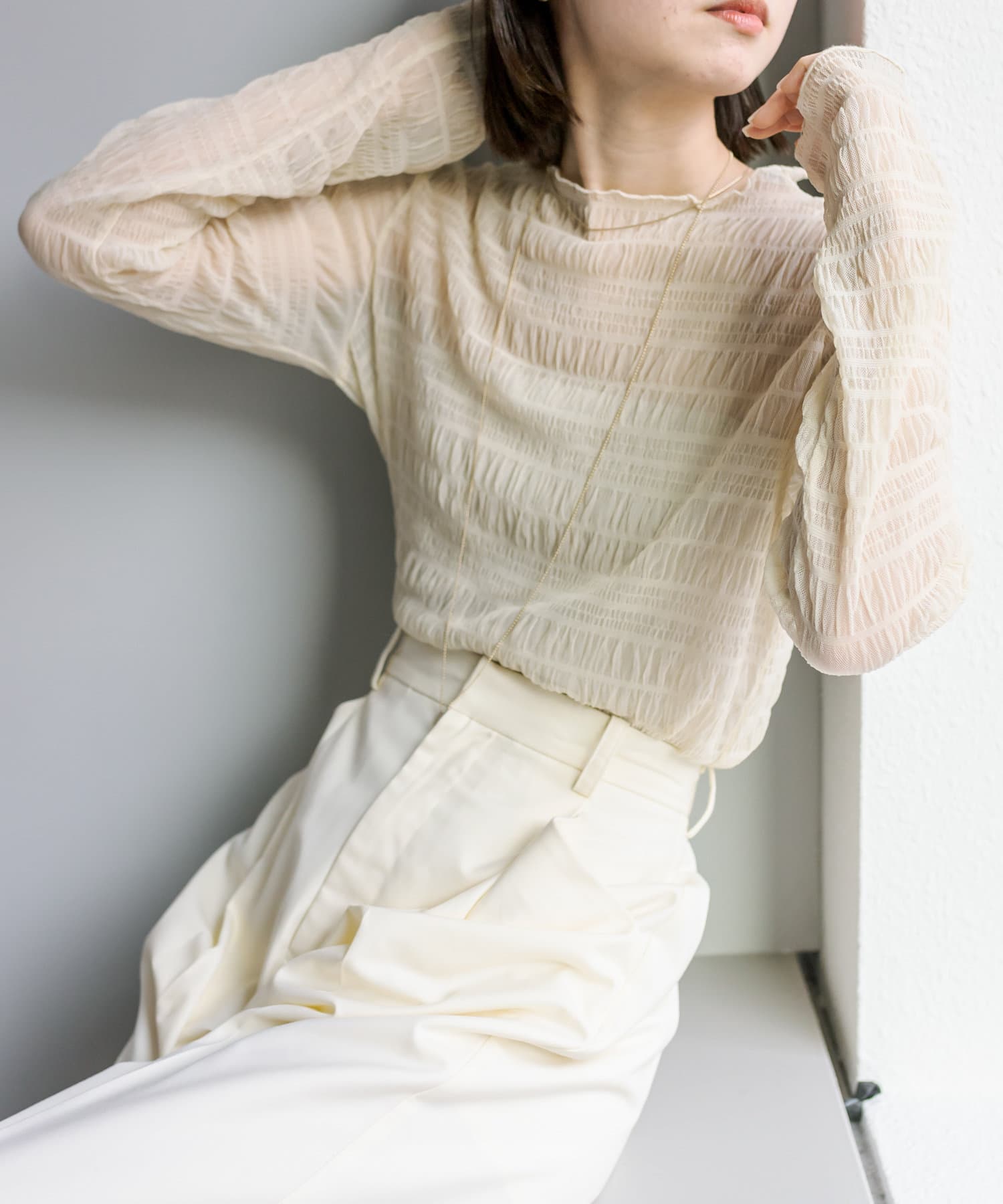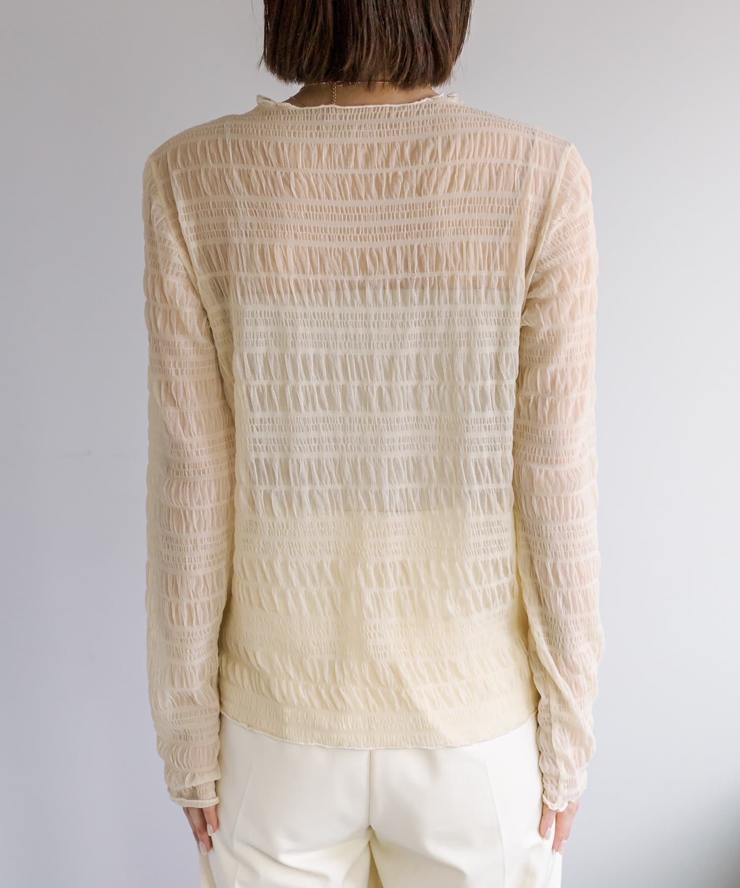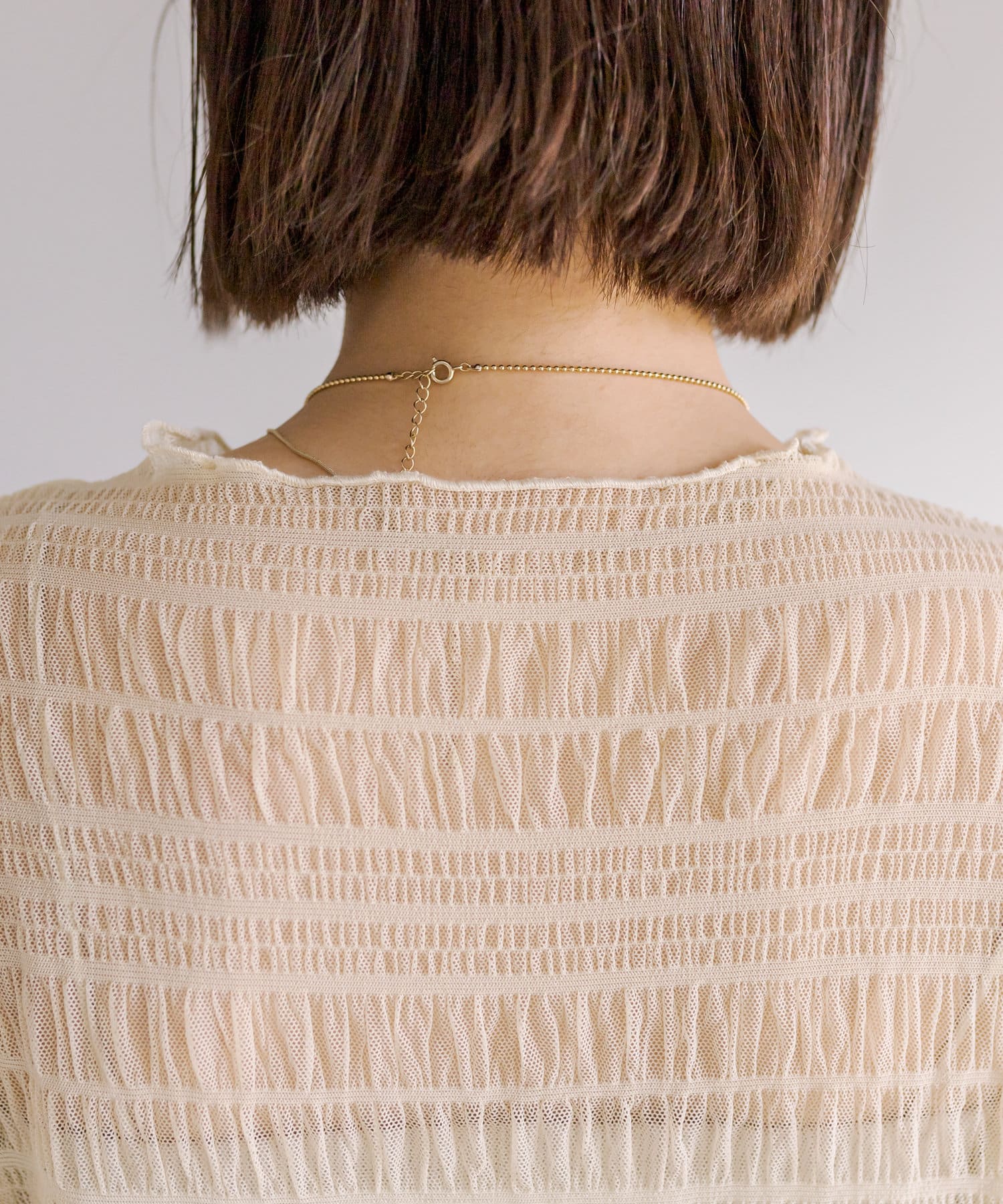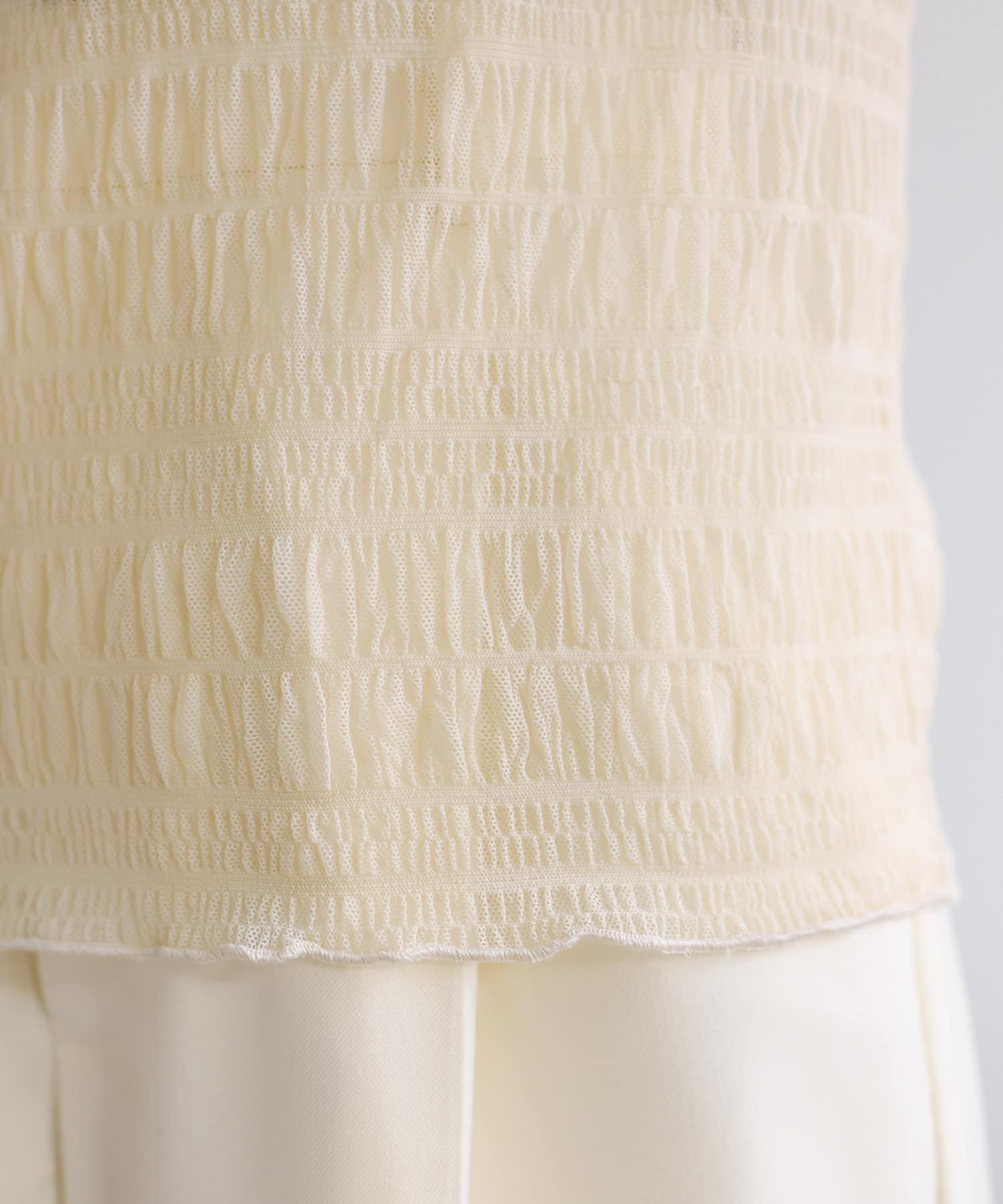 ・伸縮性のあるチュール素材で、ボディラインに程よくフィットし華奢見えするシルエットに。