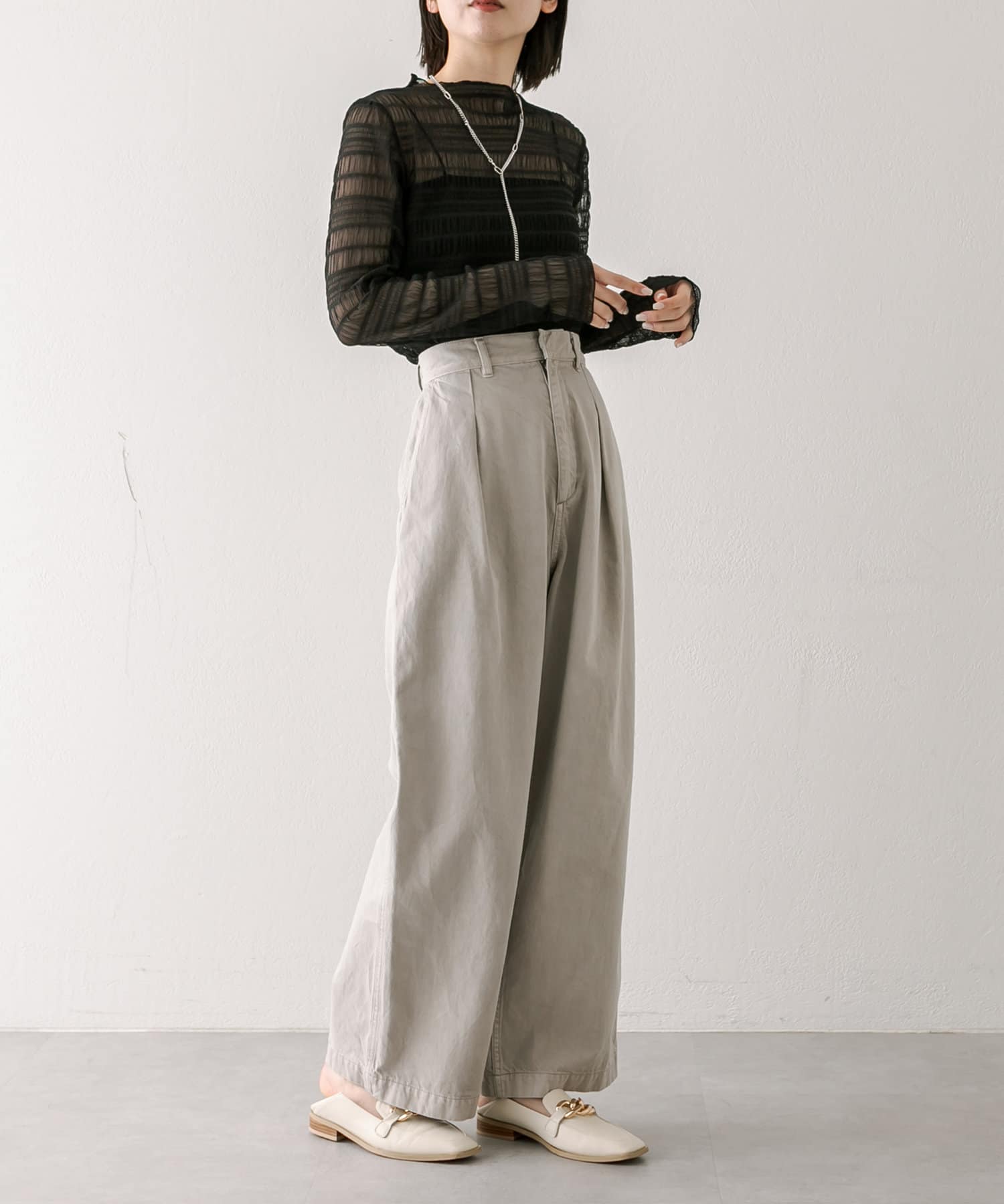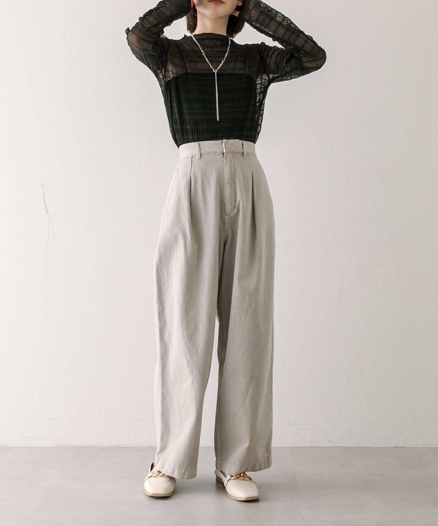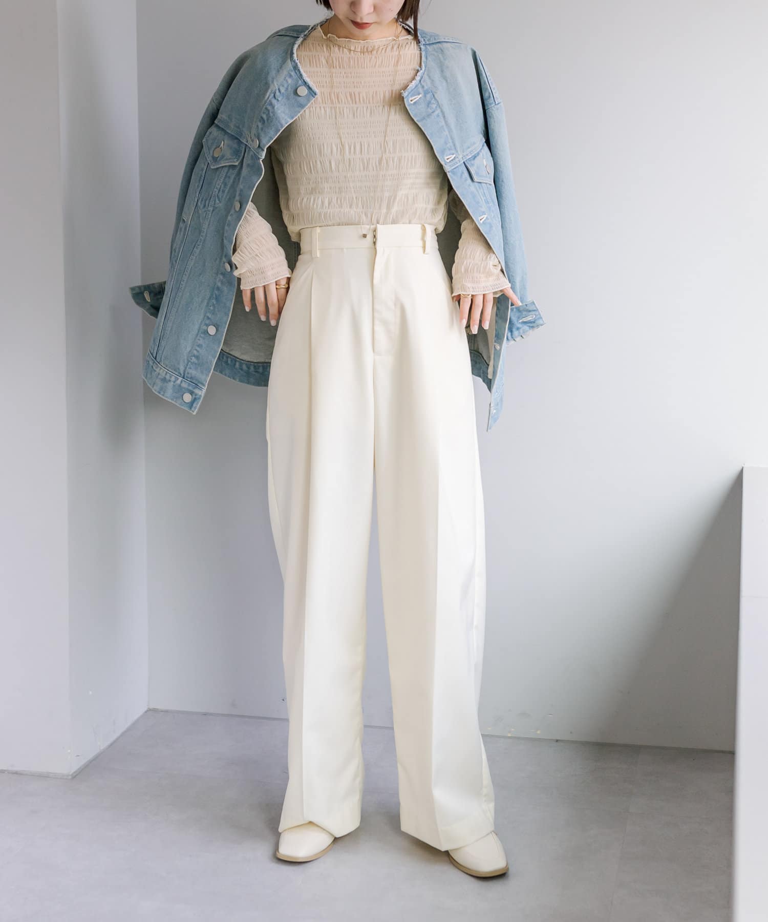 ・デニムやスラックスパンツに合わせたシンプルコーデ。