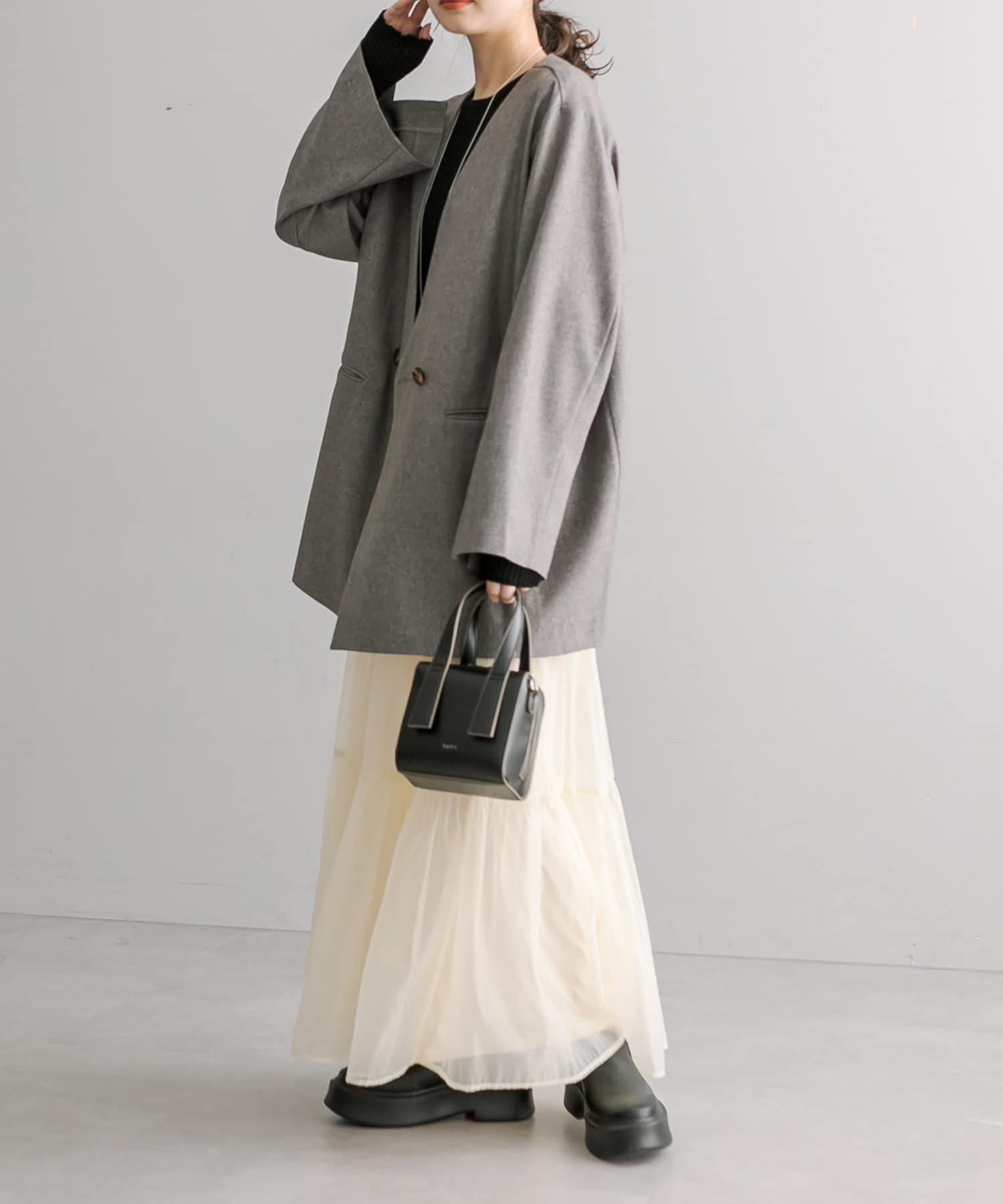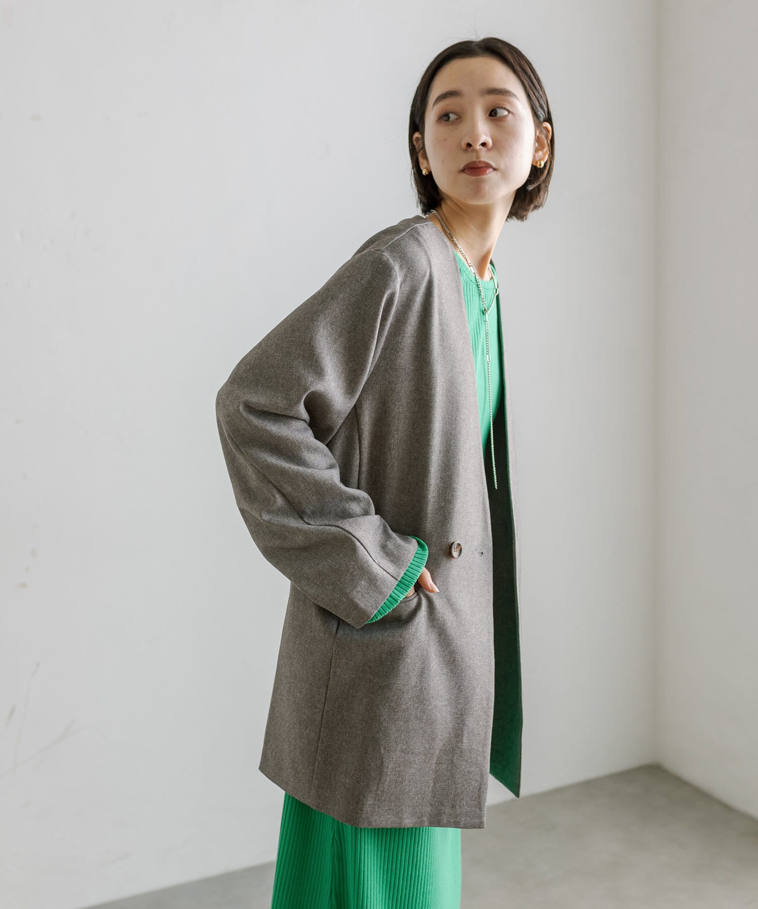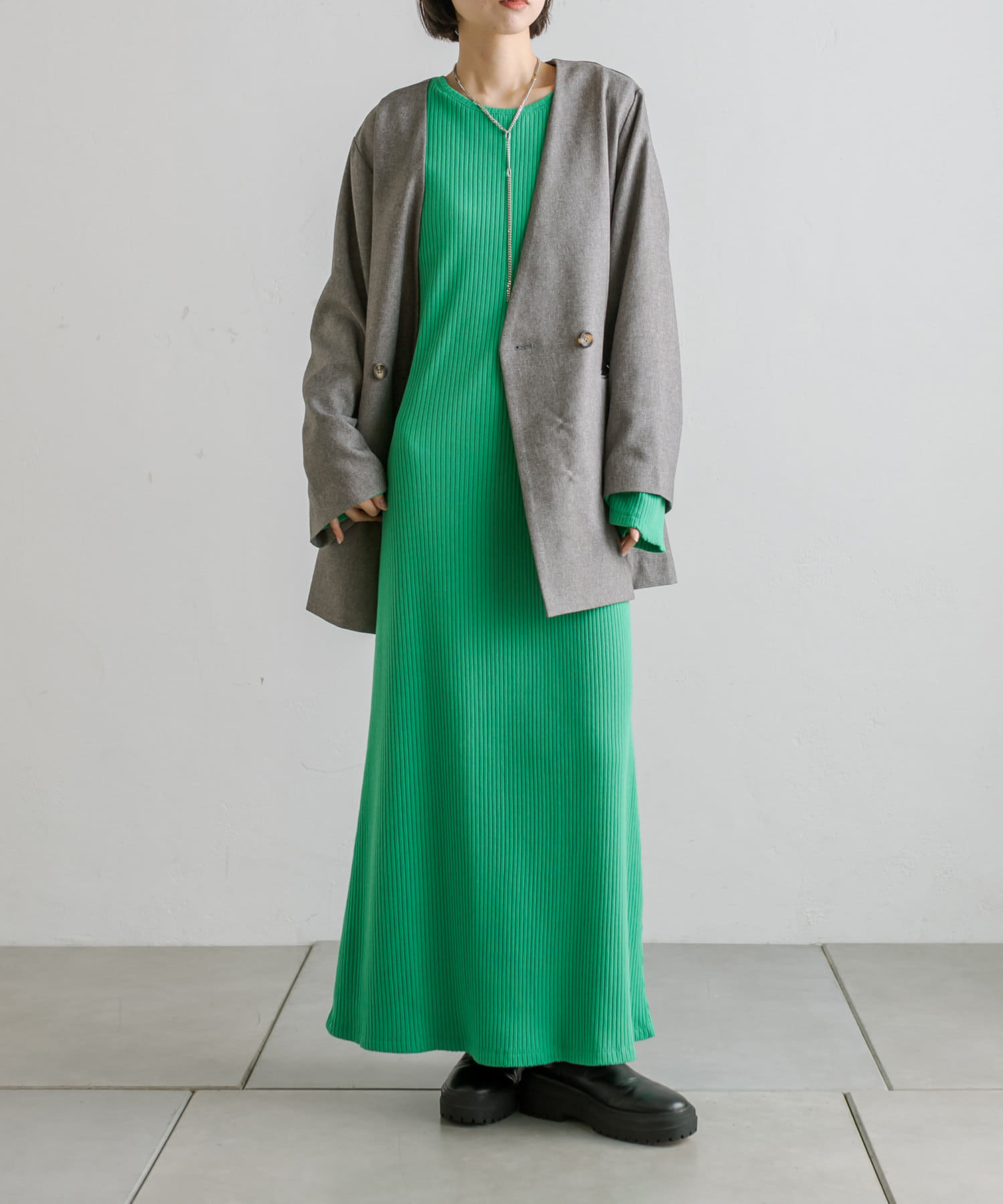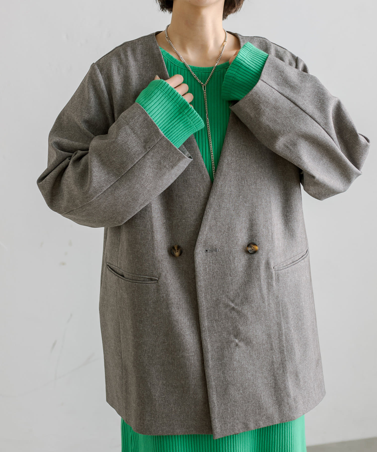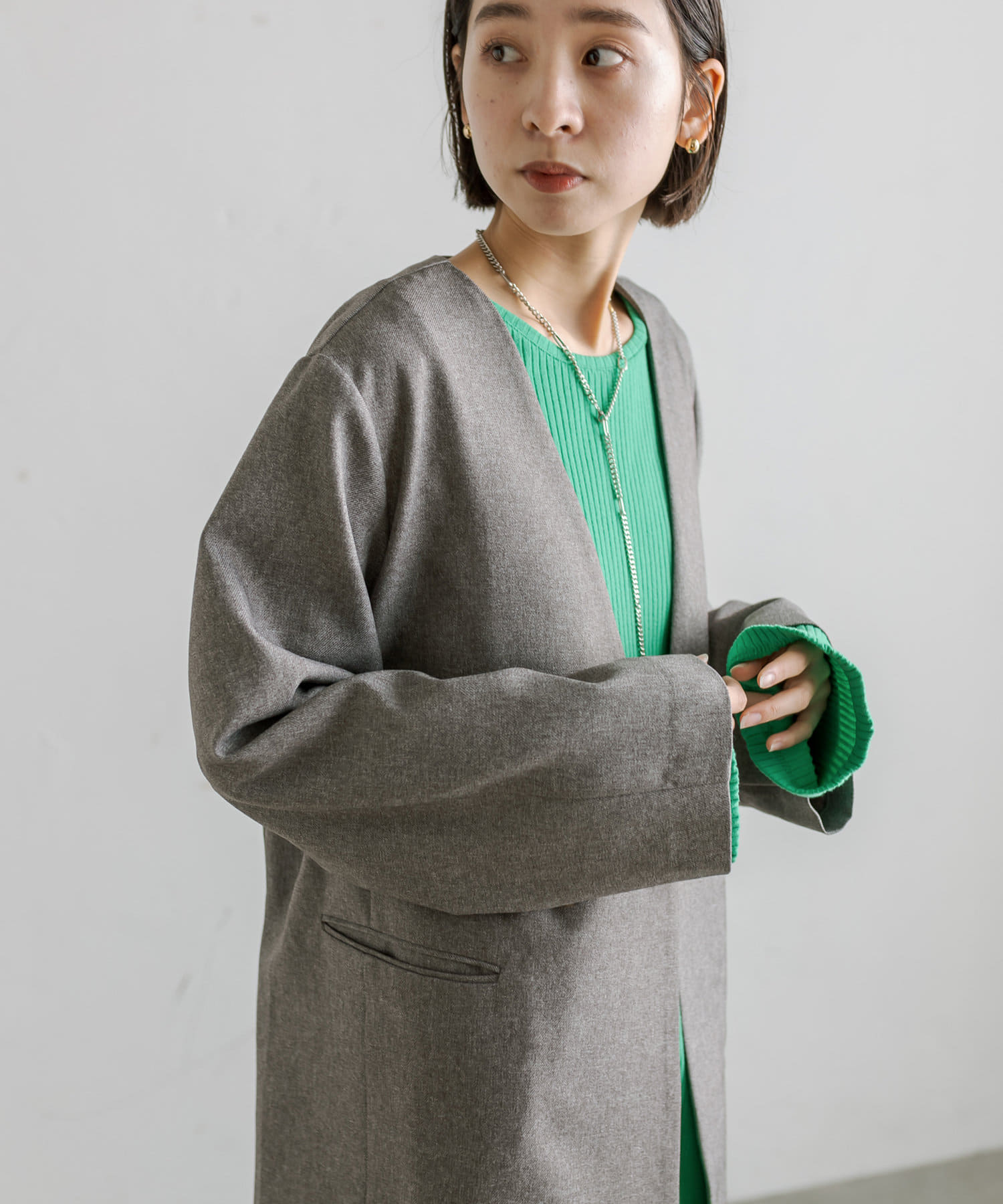 普段ジャケット着るとスーツみたいになったり着られてる感出るから似合わなかったけど、これはノーカラーだからそんなことなくてきやすい!