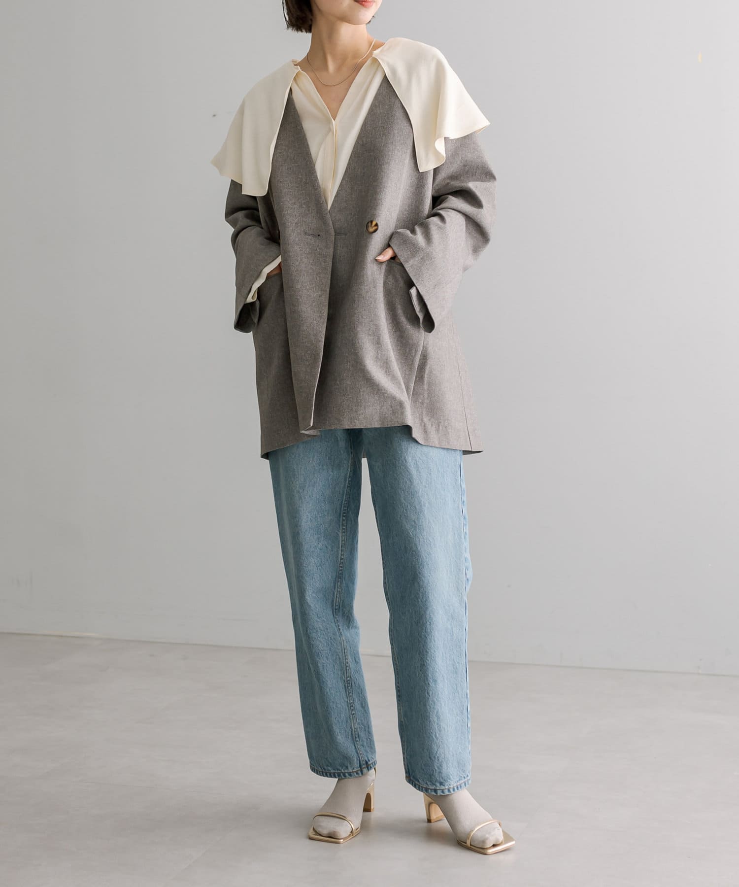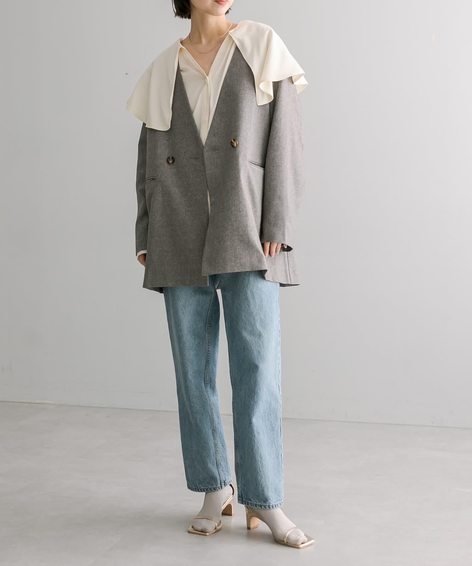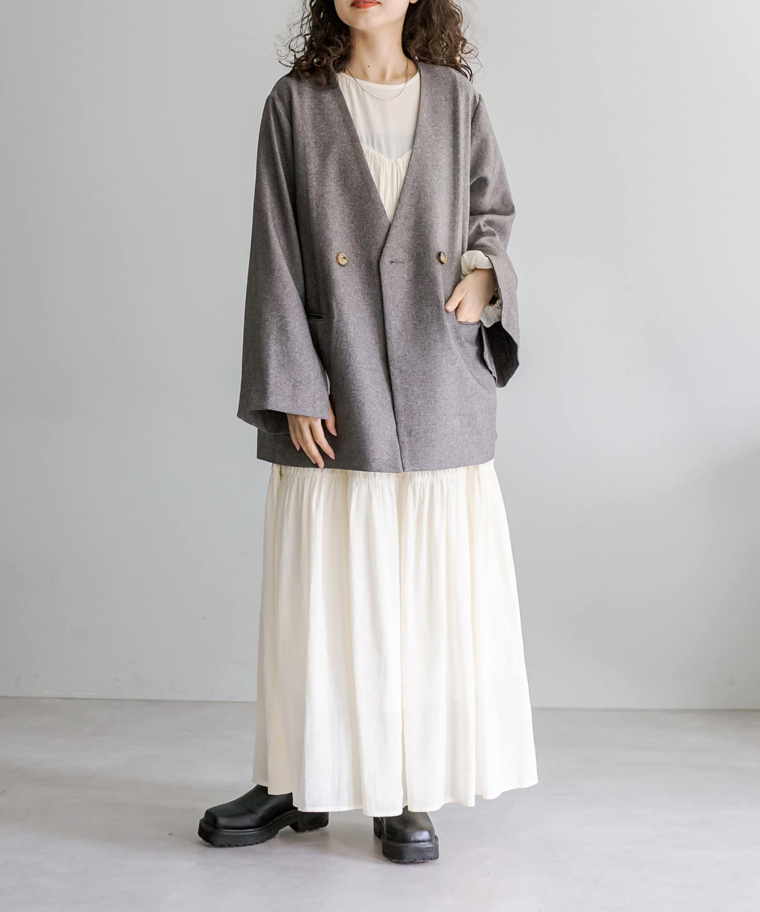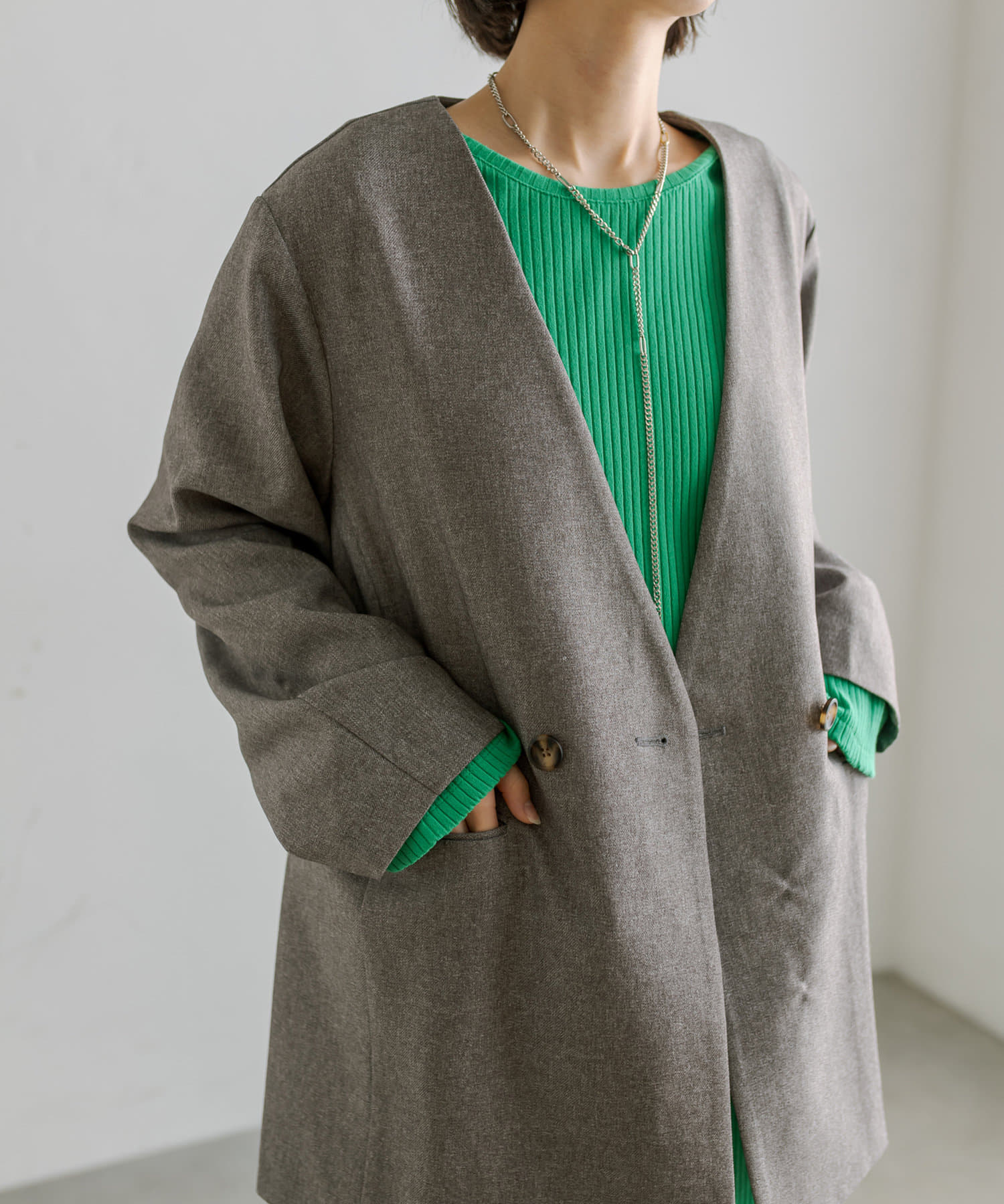 普段ジャケット着るとスーツみたいになったり着られてる感出るから似合わなかったけど、これはノーカラーだからそんなことなくてきやすい!