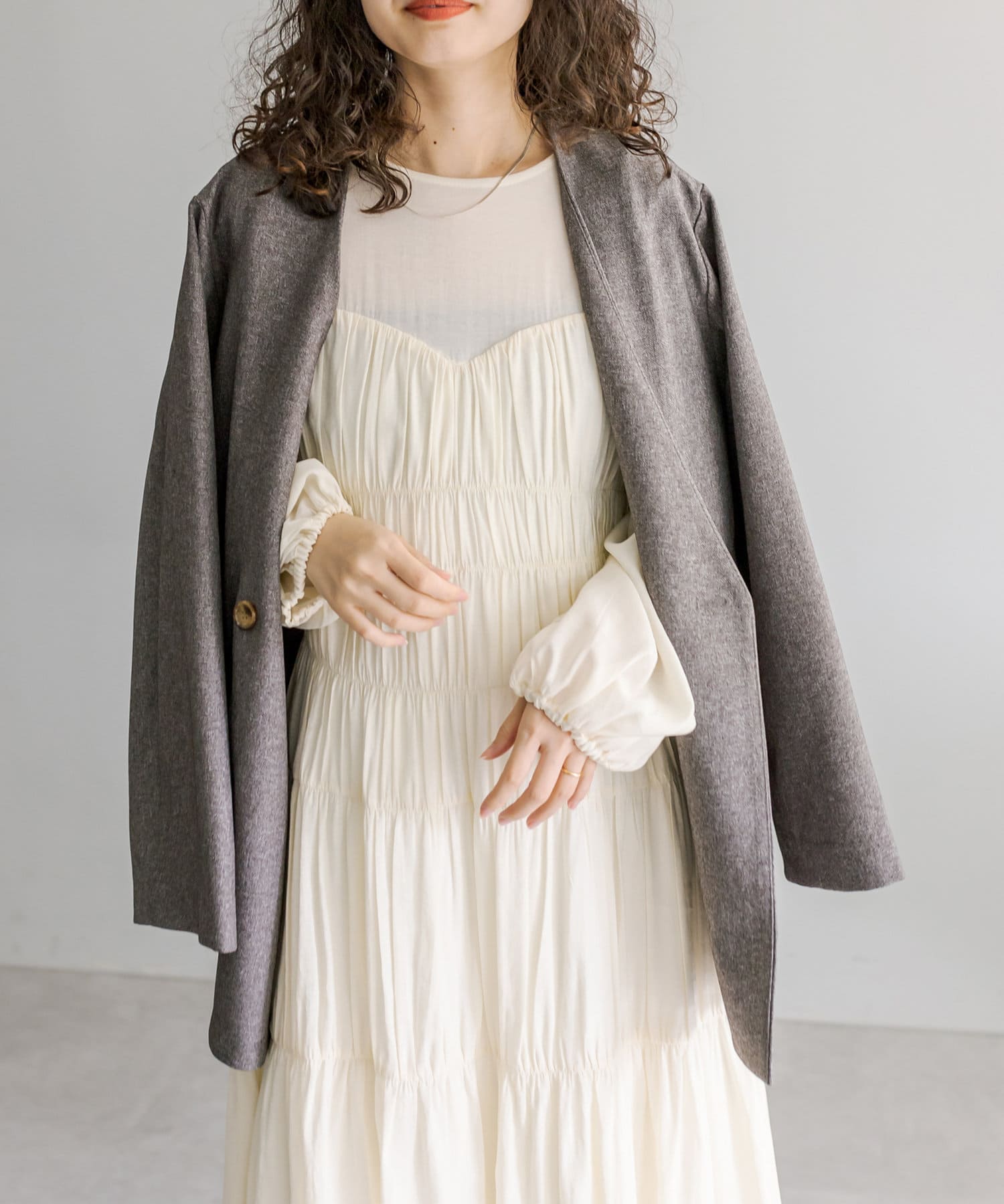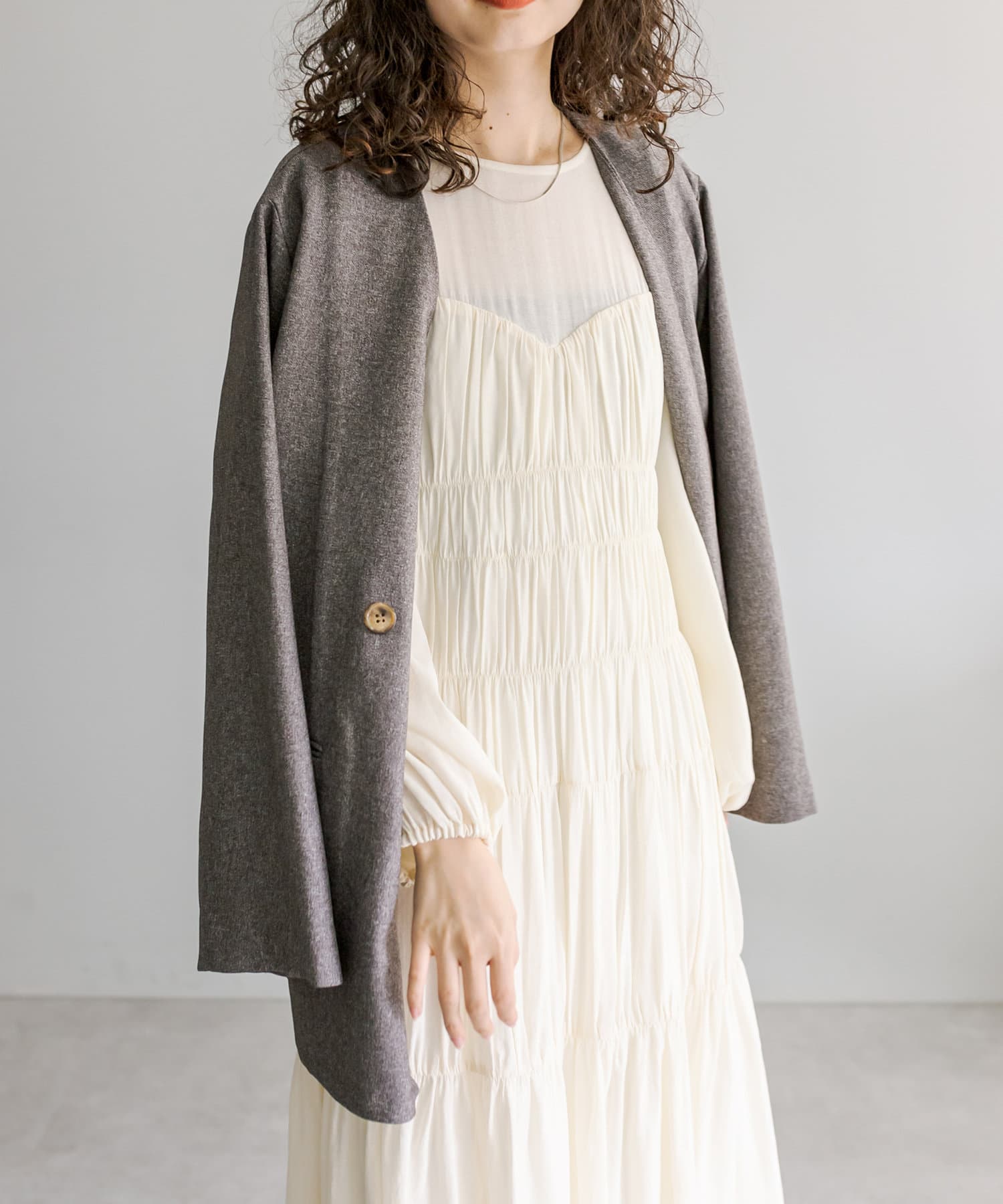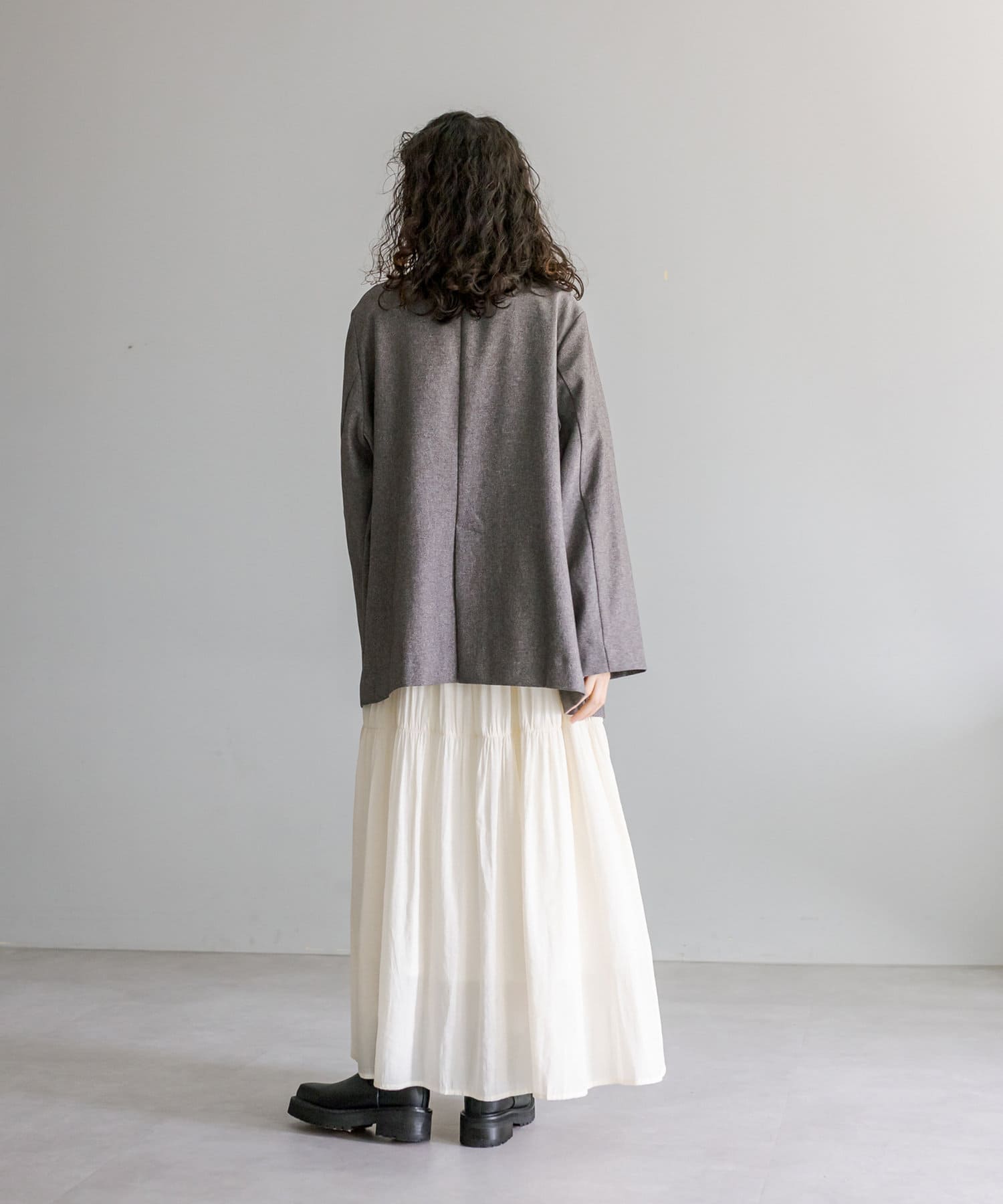 ・ヒップラインが隠れる長めのシルエット。カチッとしすぎず普段使いしやすい1枚。