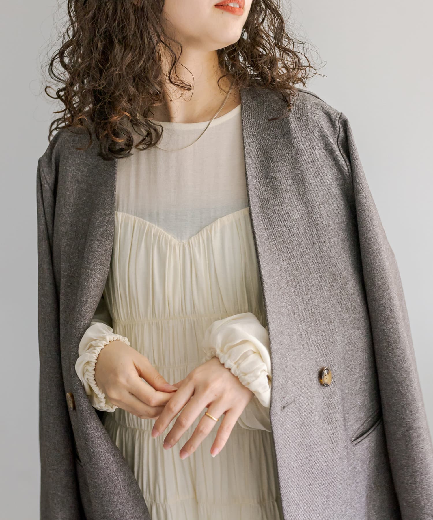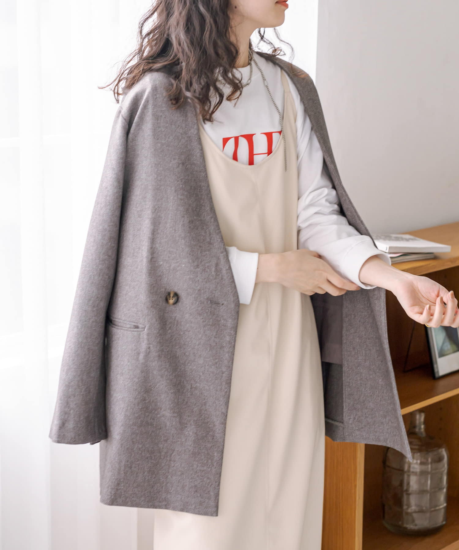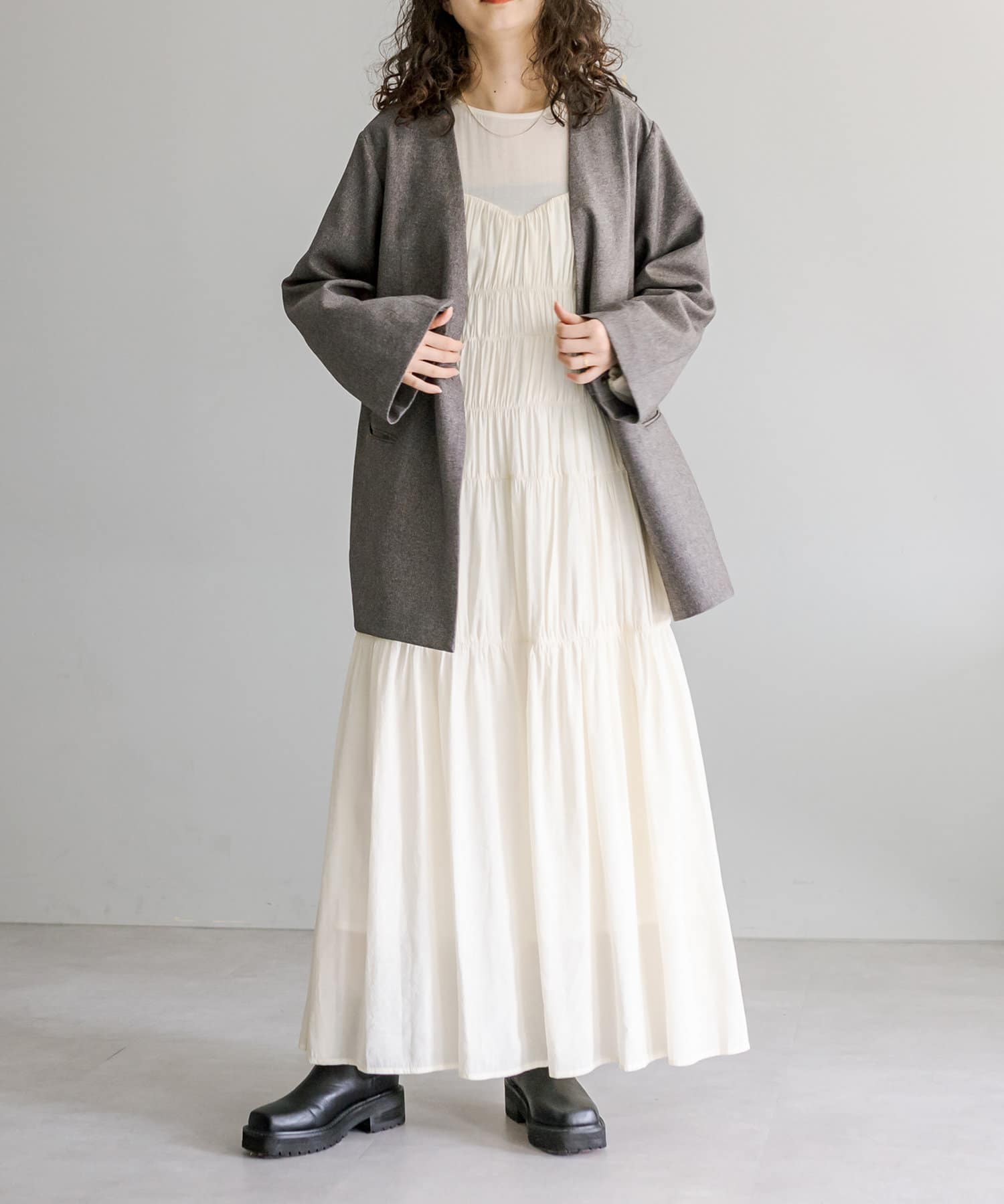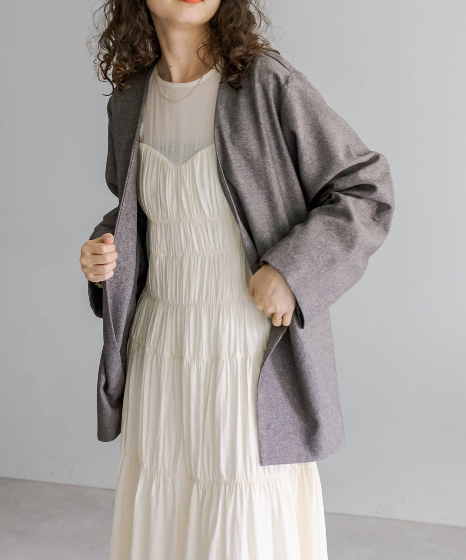 ・ヒップラインが隠れる長めのシルエット。カチッとしすぎず普段使いしやすい1枚。