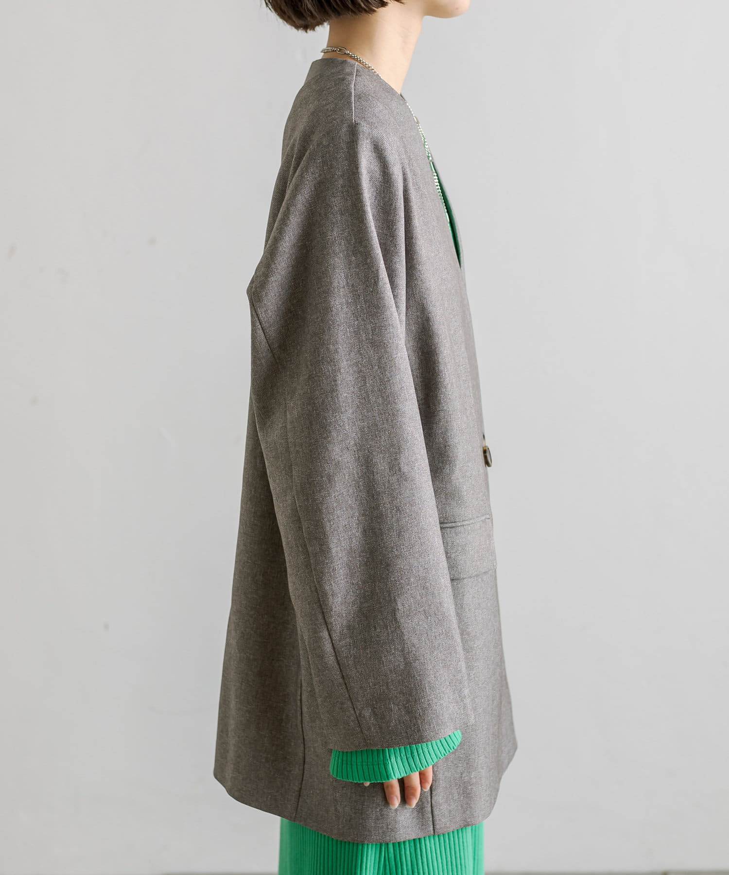 ノーカラー袖スリットジャケット
