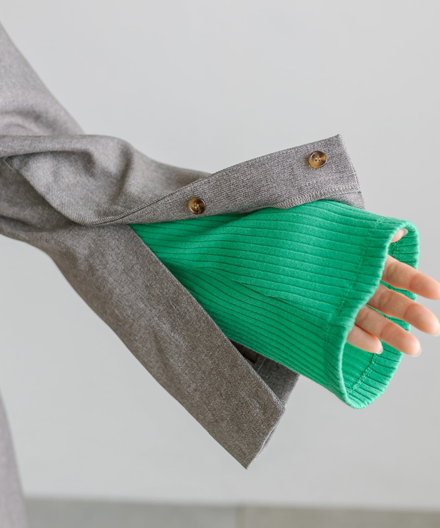 ・袖の内側にボタンがついており、外して頂くとスリット風のデザインに。