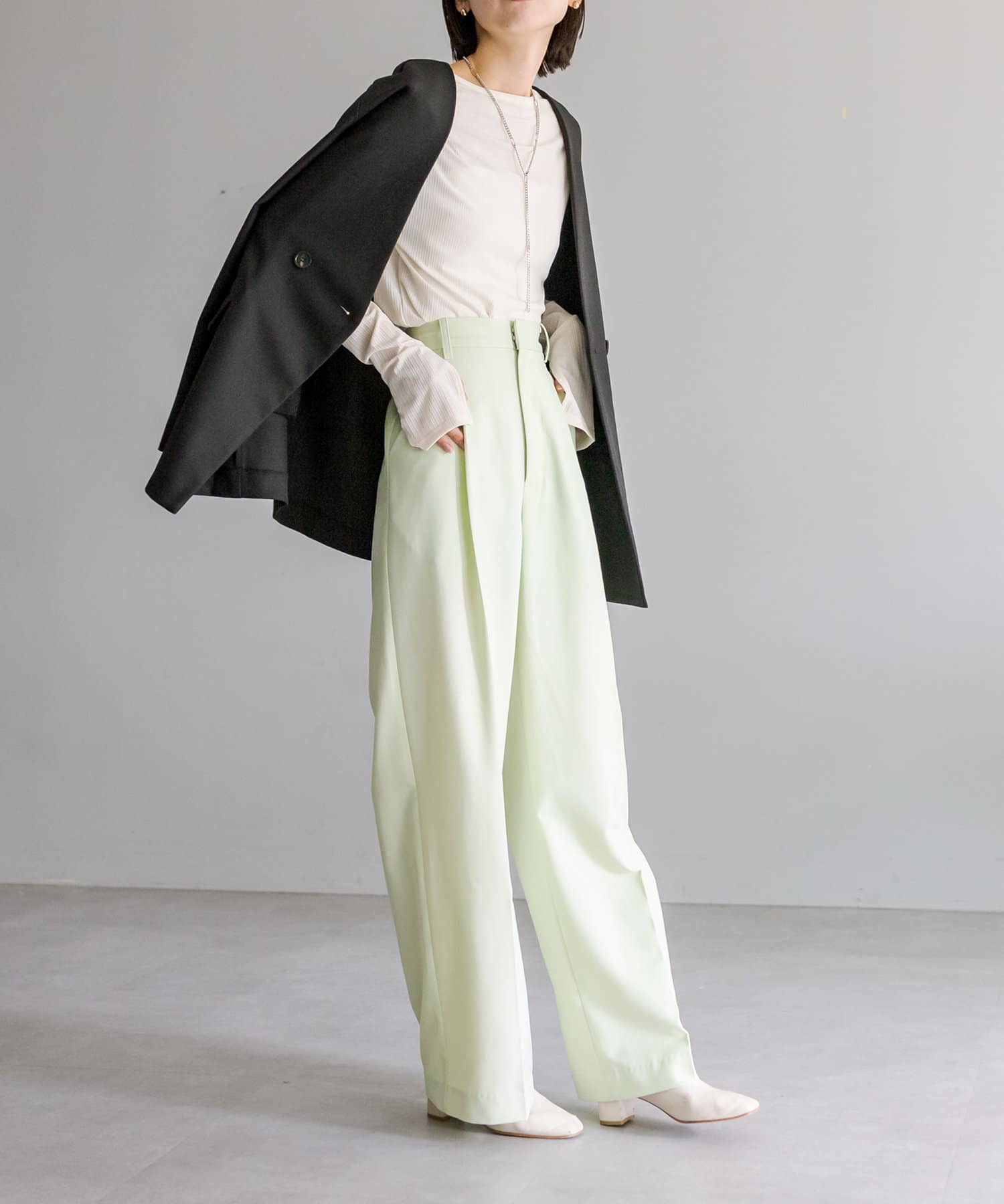 ・パンツスタイルはもちろん、ワンピースやミニボトムなどとスタイリングして頂けます。