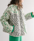 ・細かな花柄はプリントされた存在感のあるジャケット。