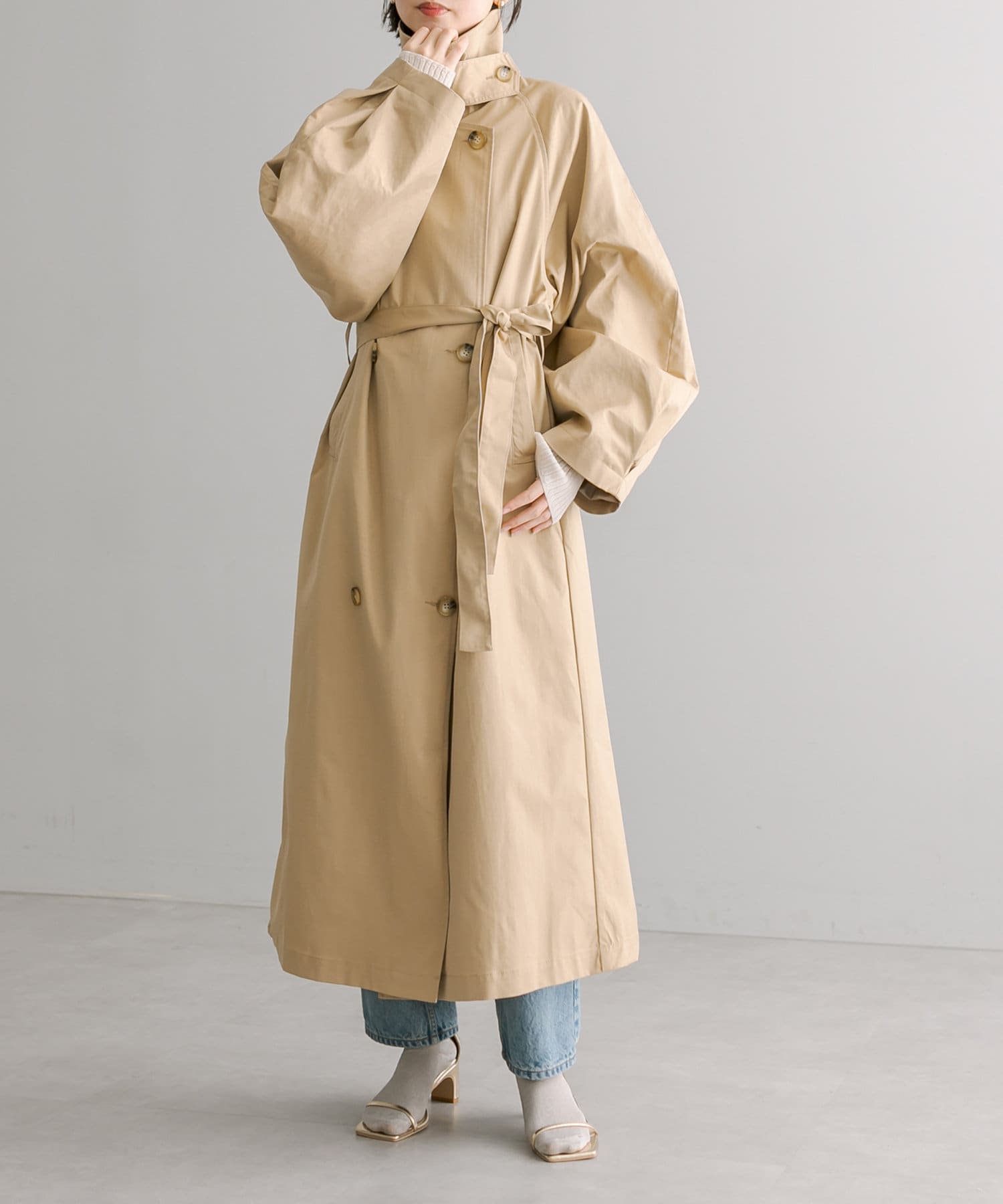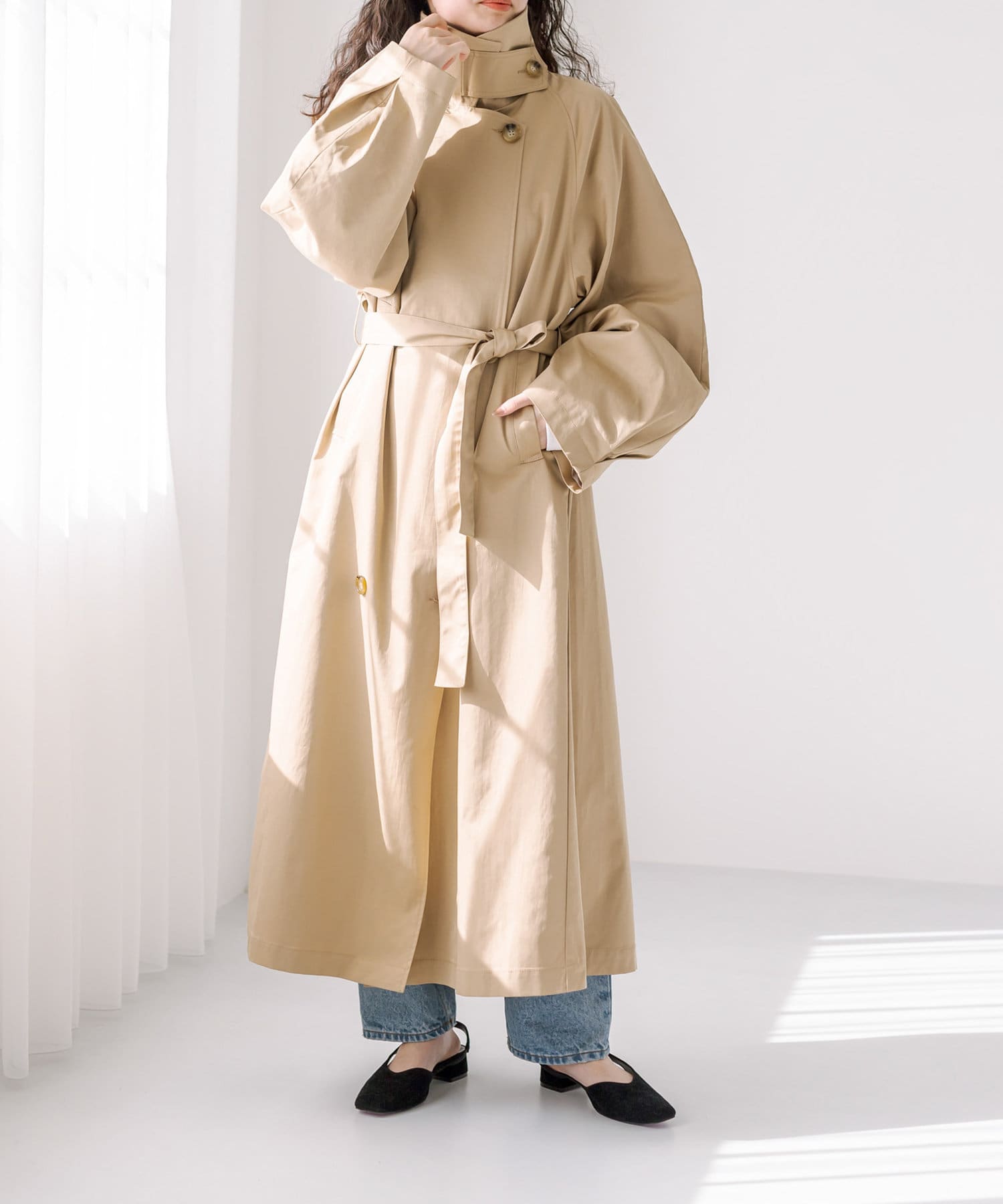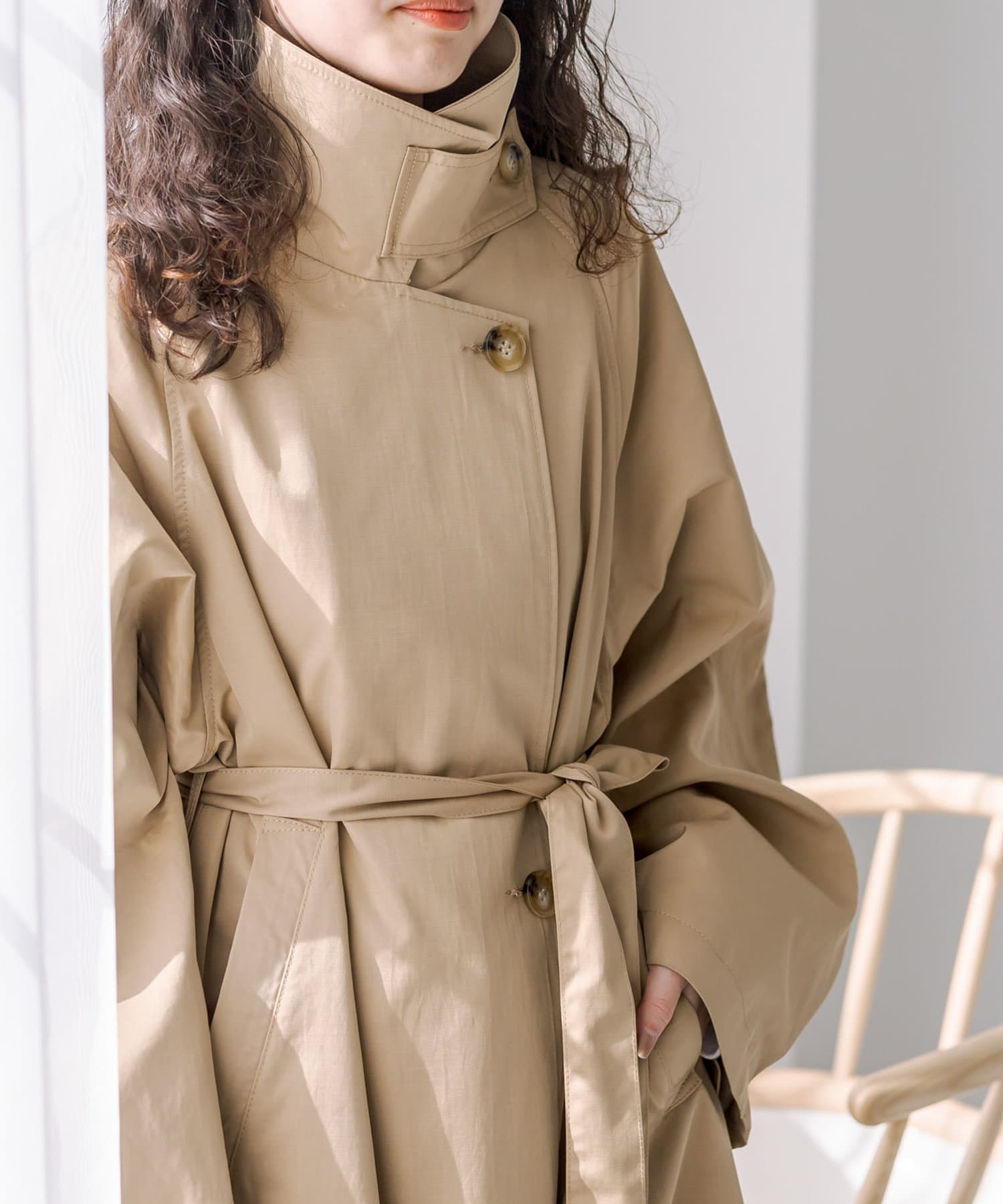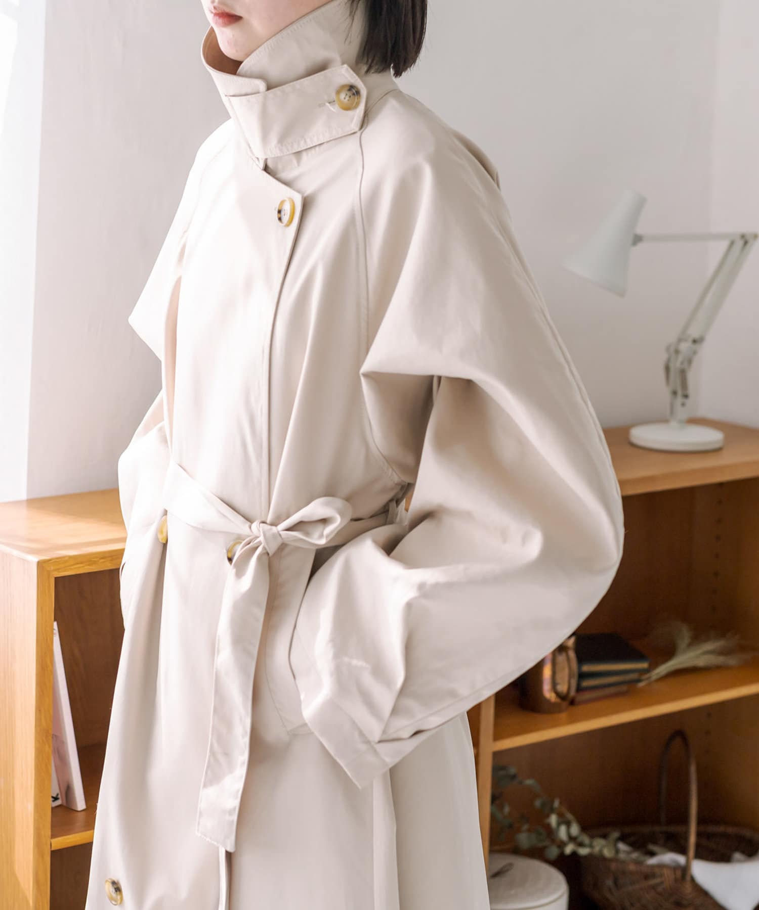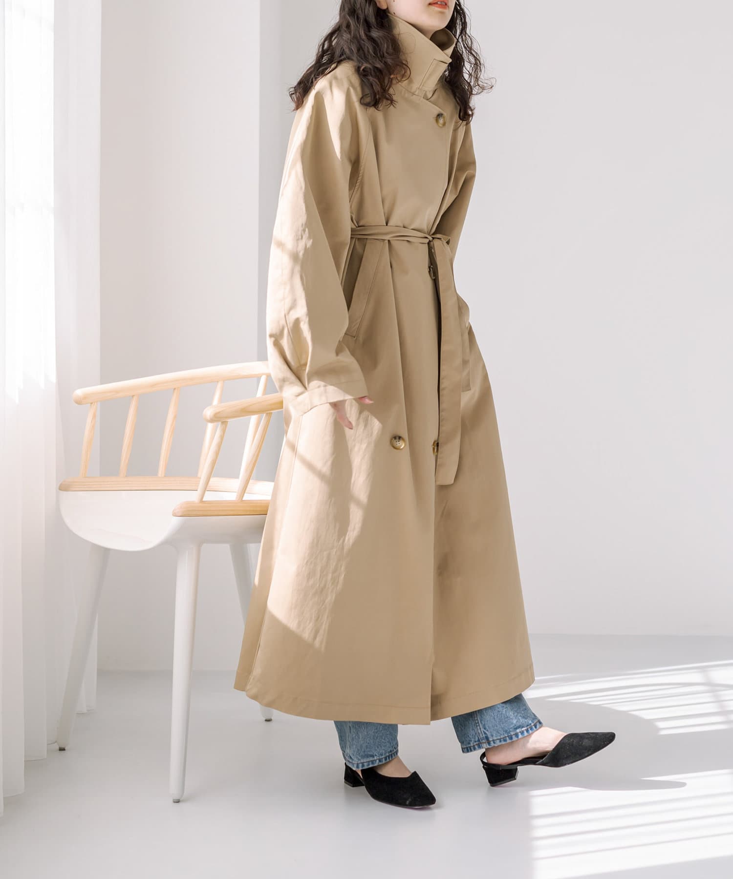 ・スタンドカラーのデザインが上品な印象に見せてくれるトレンチコート。