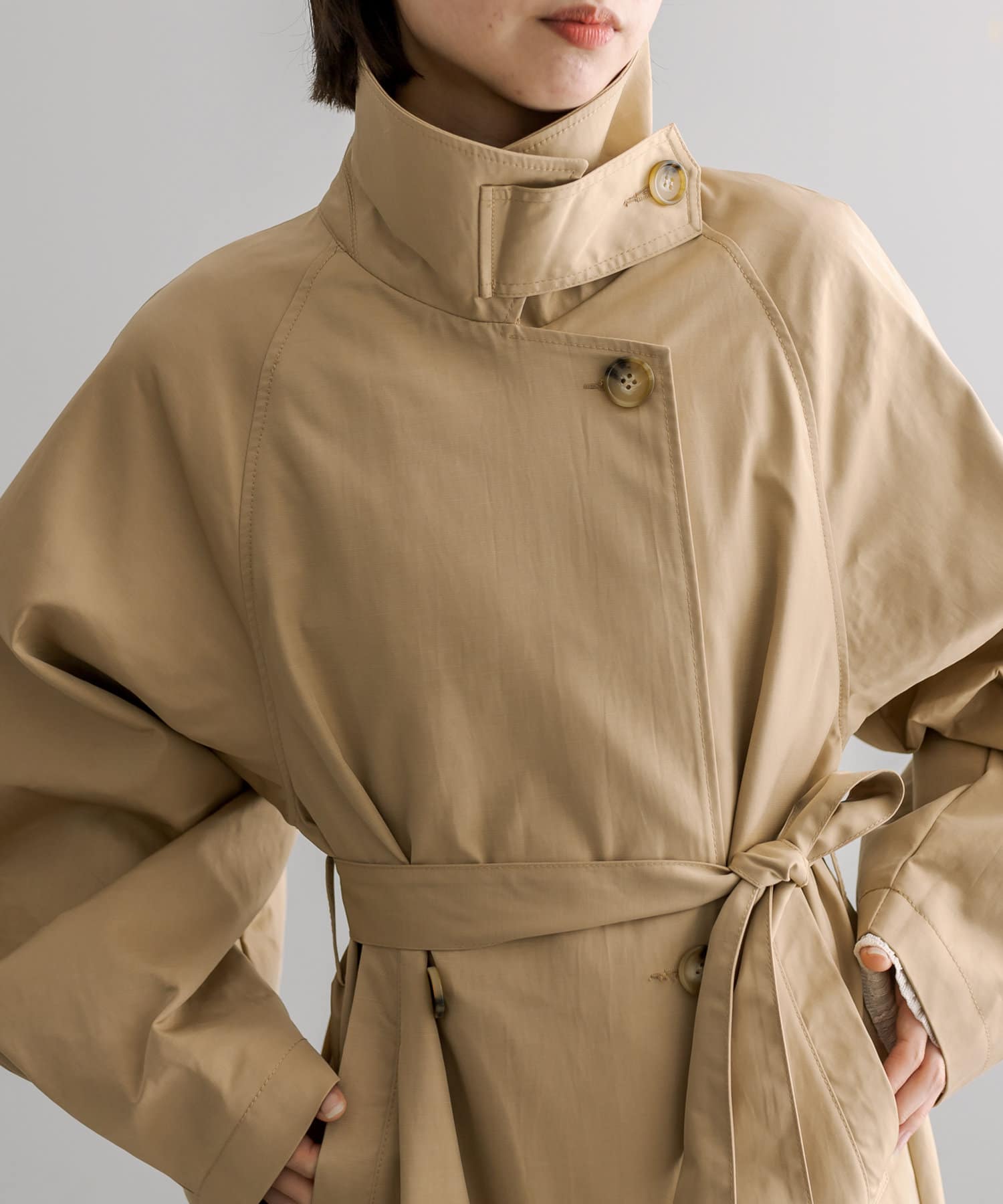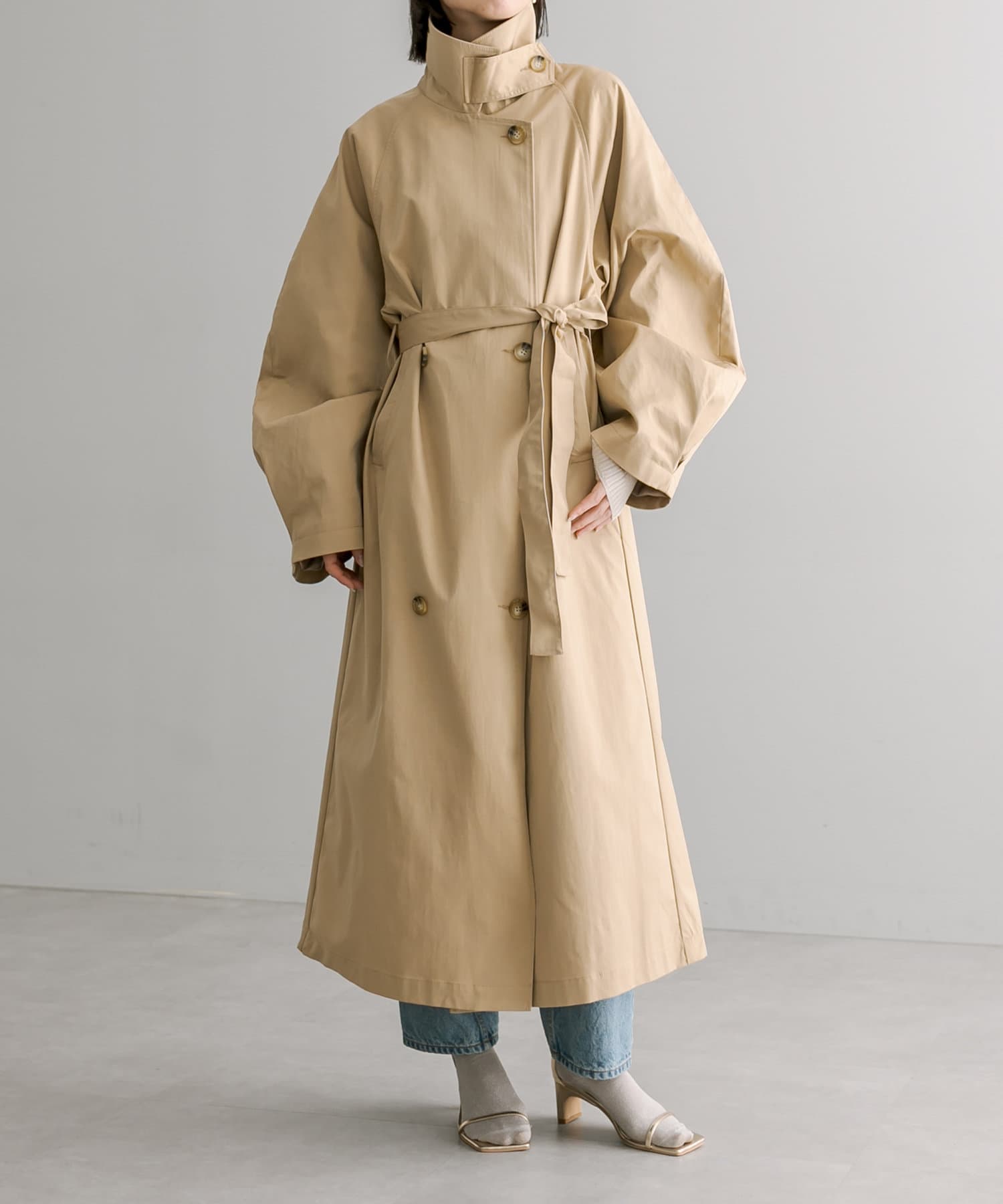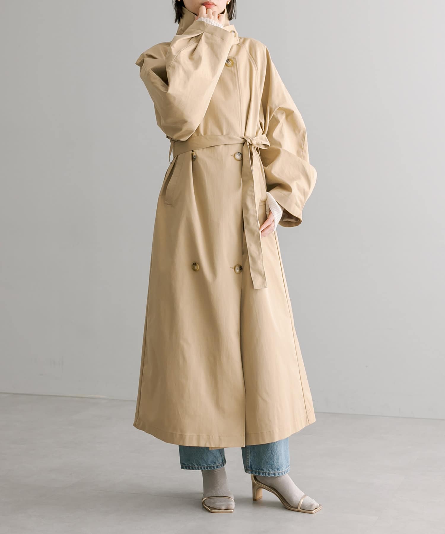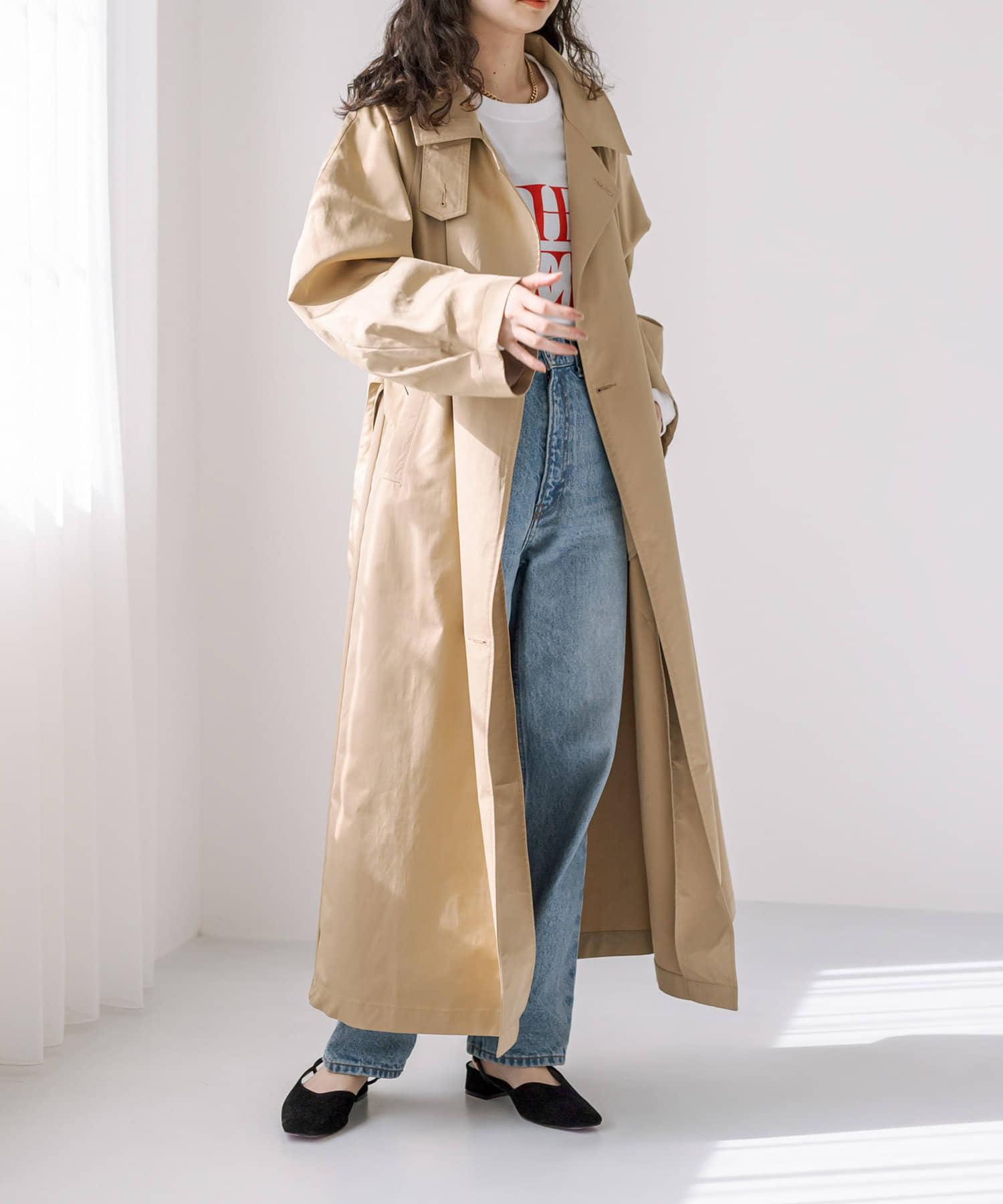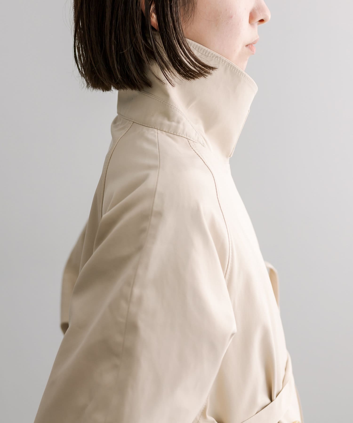 ・スタンドカラーのデザインが上品な印象に見せてくれるトレンチコート。