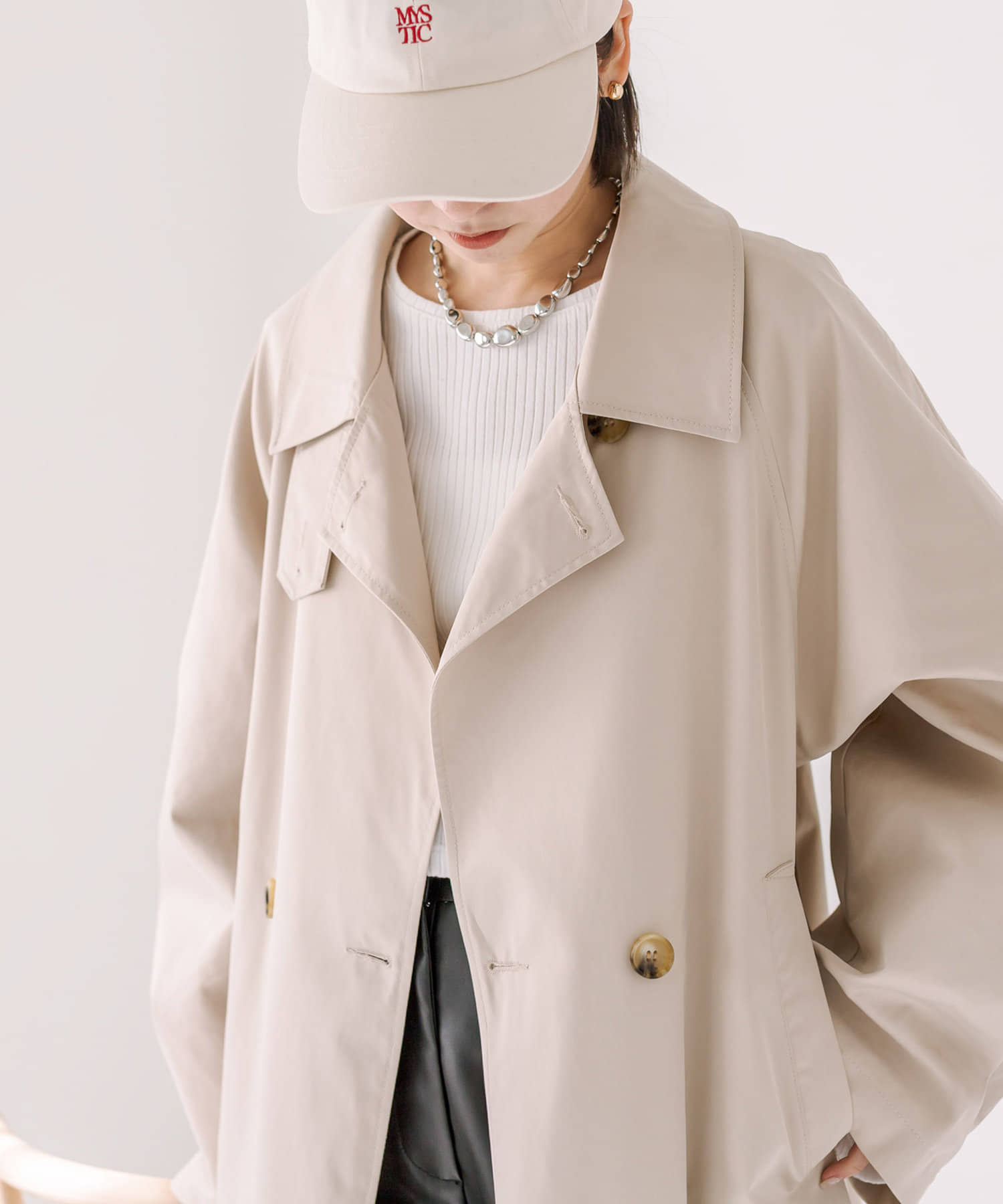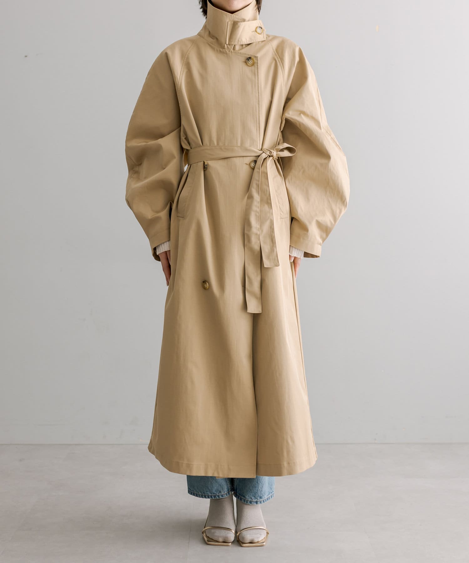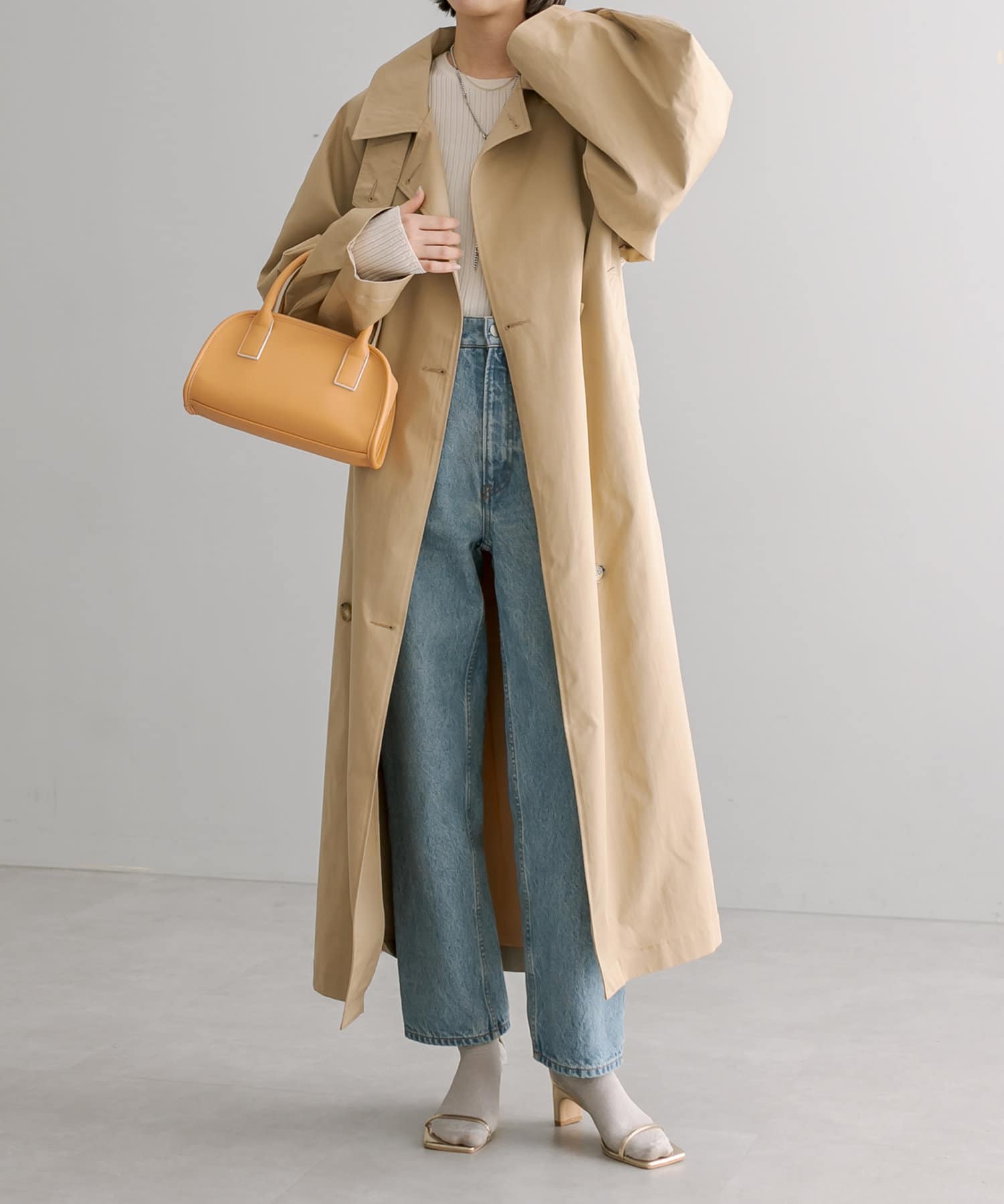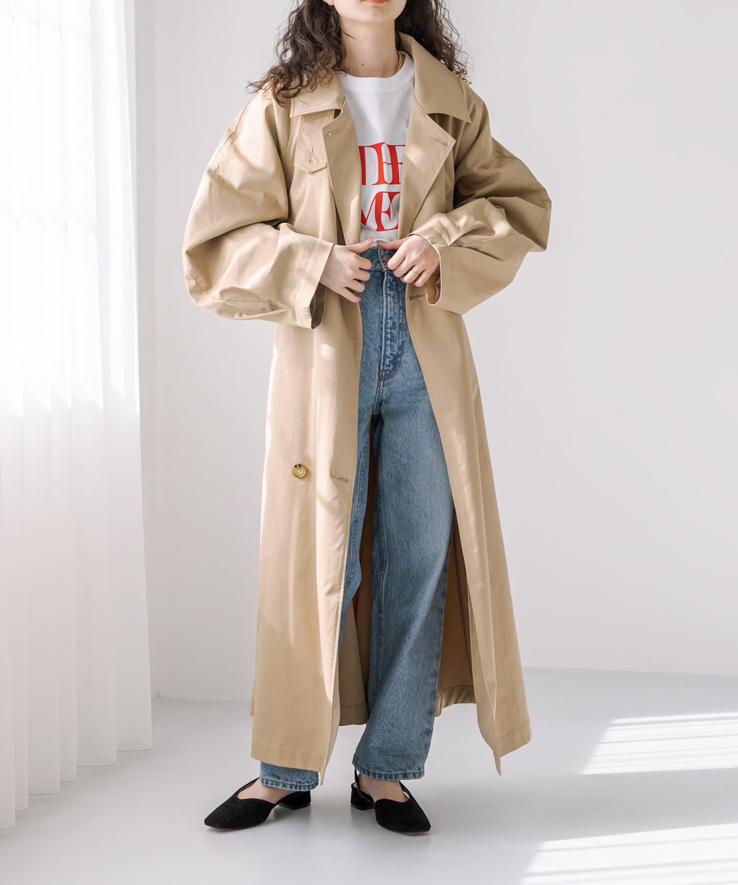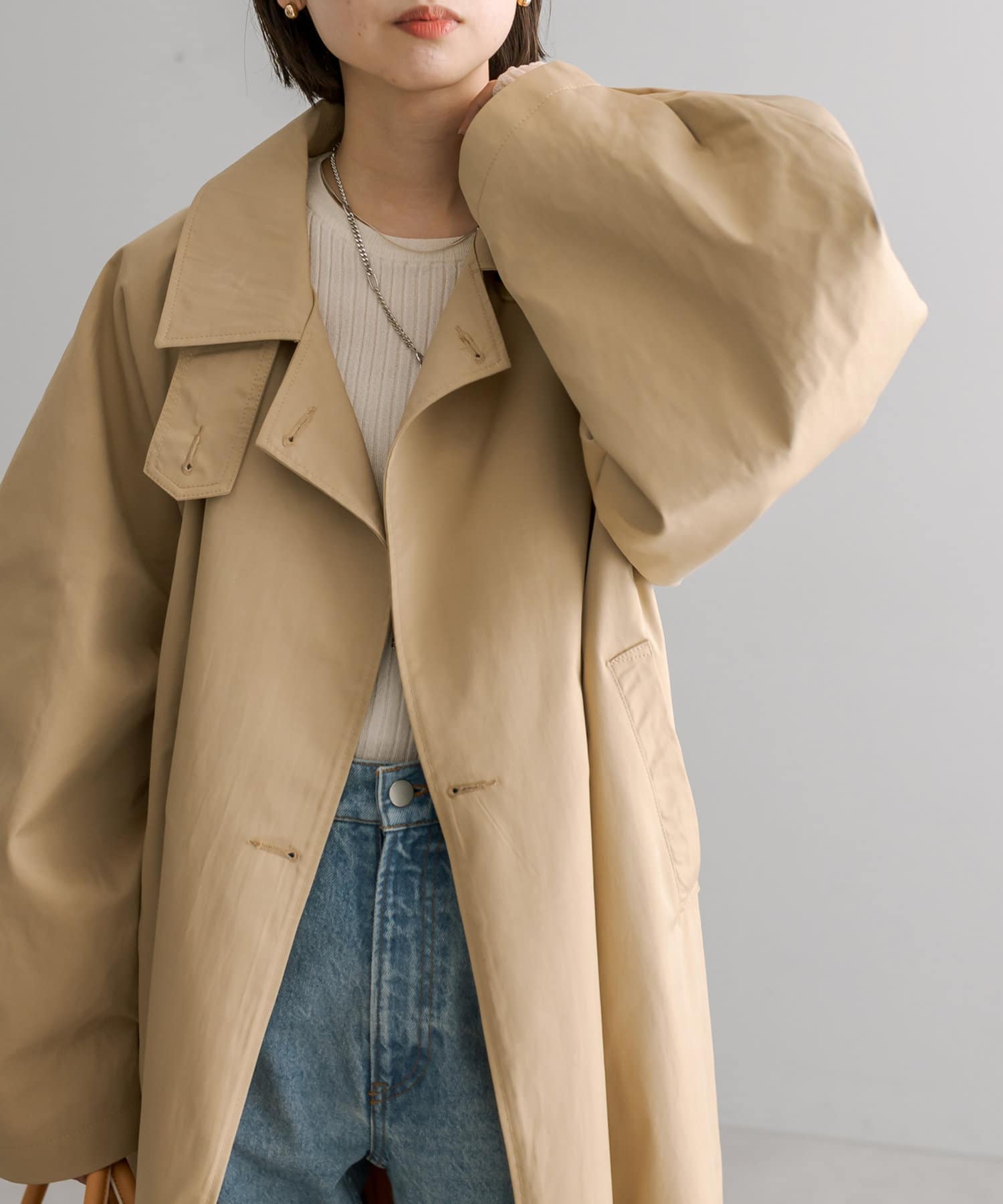 ・スタンドカラーのデザインが上品な印象に見せてくれるトレンチコート。