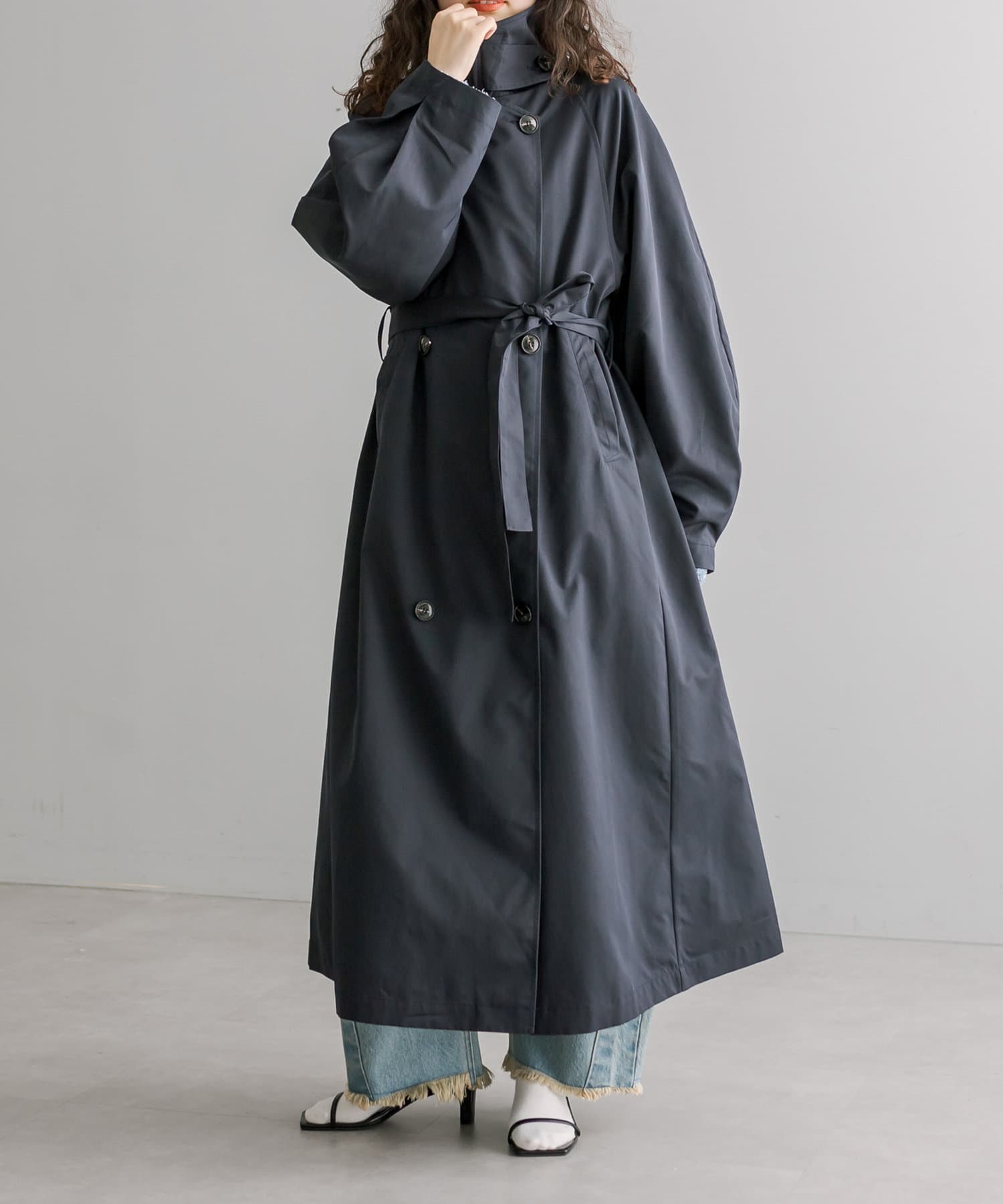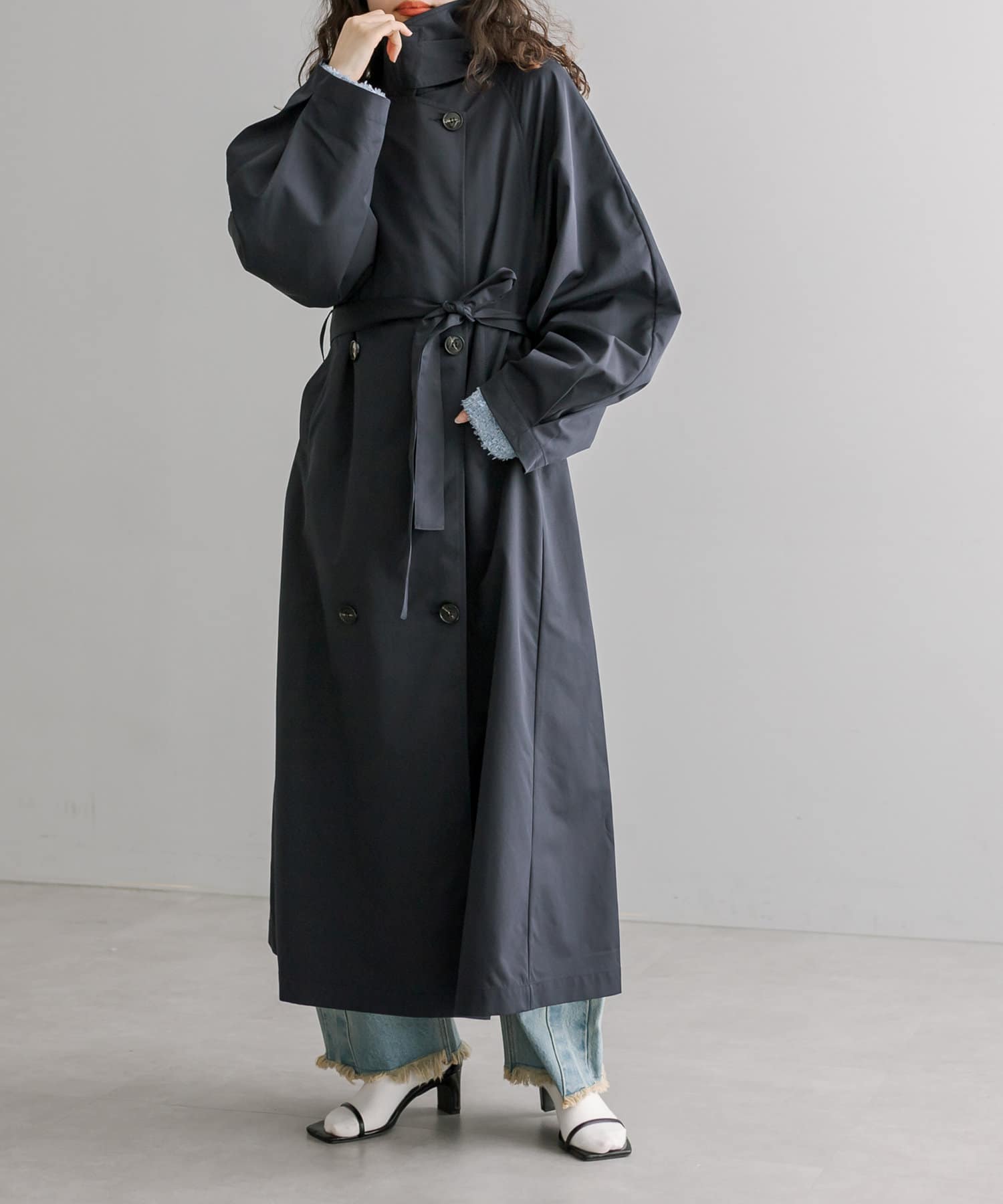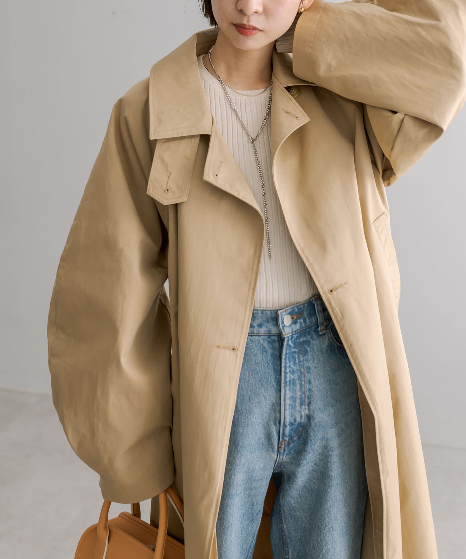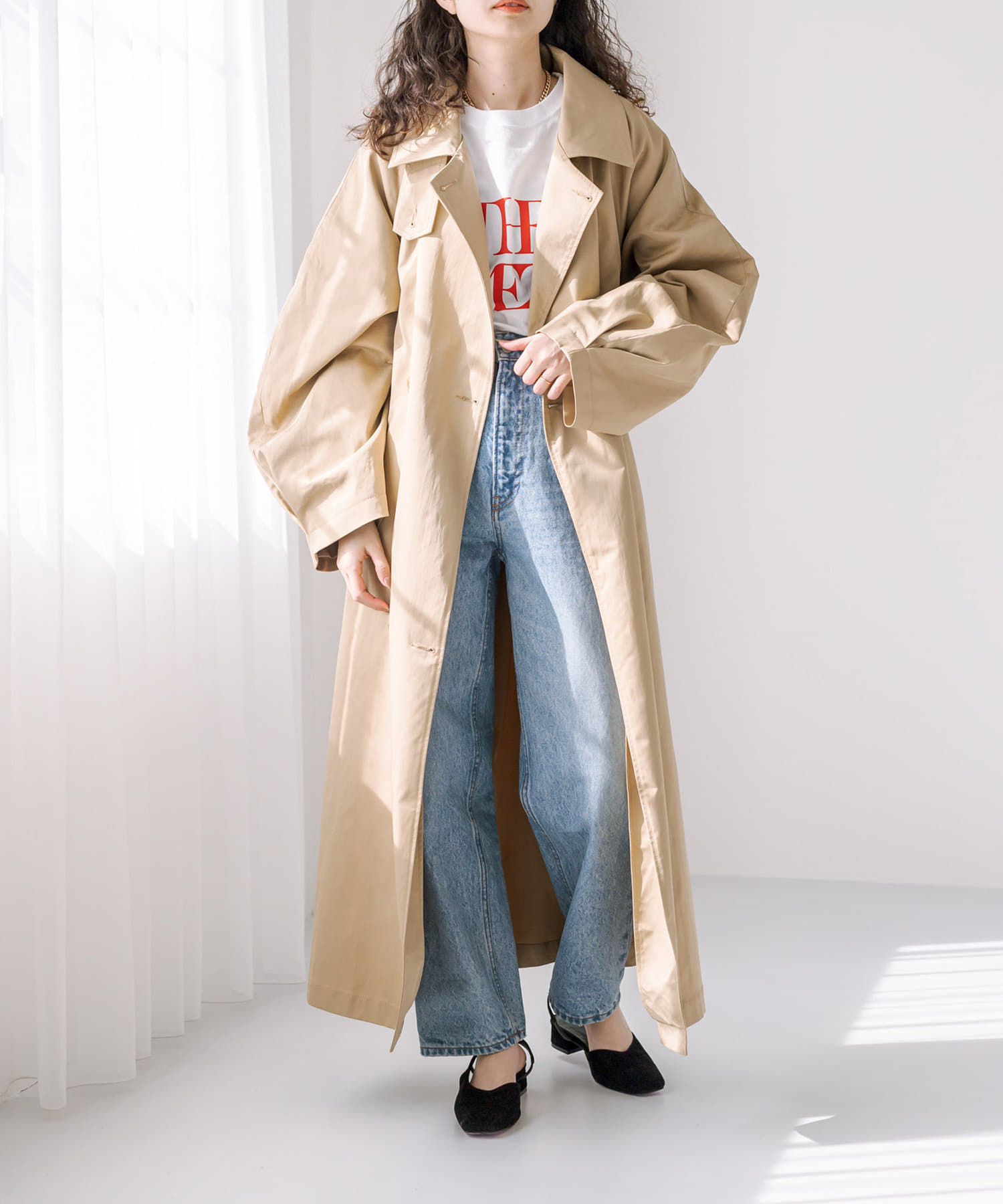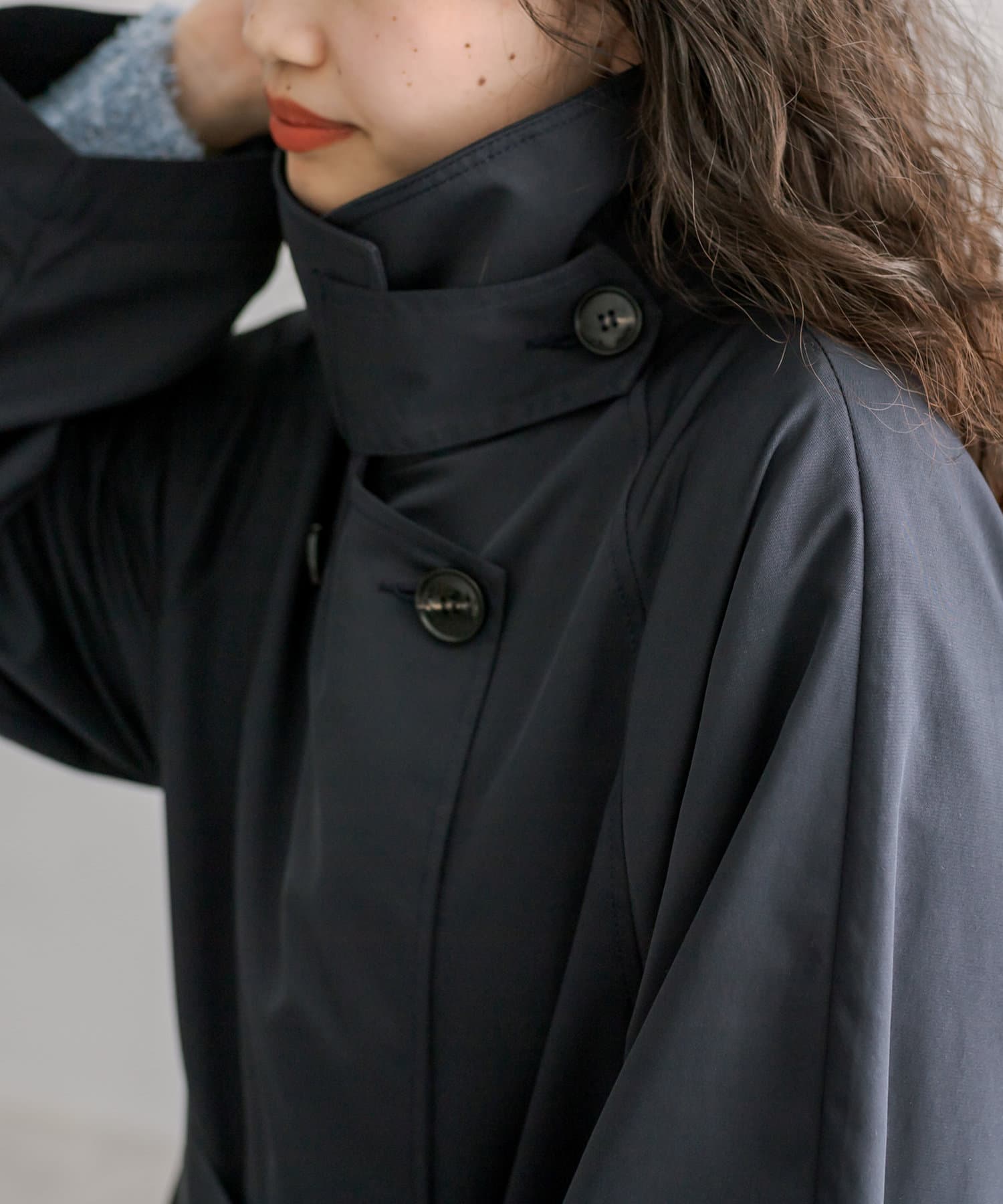・スタンドカラーのデザインが上品な印象に見せてくれるトレンチコート。