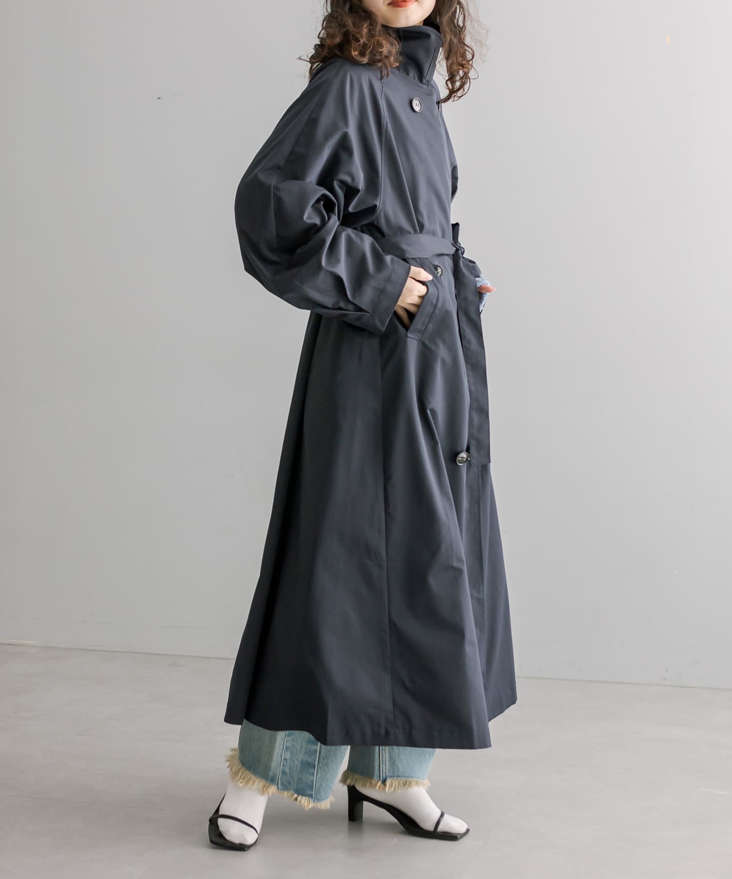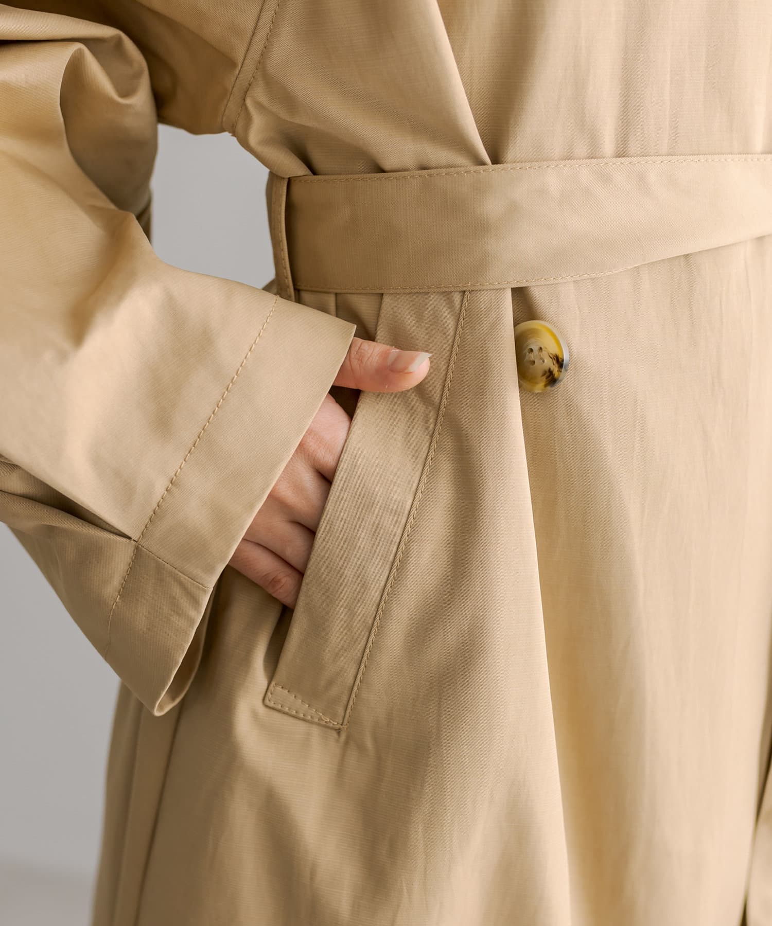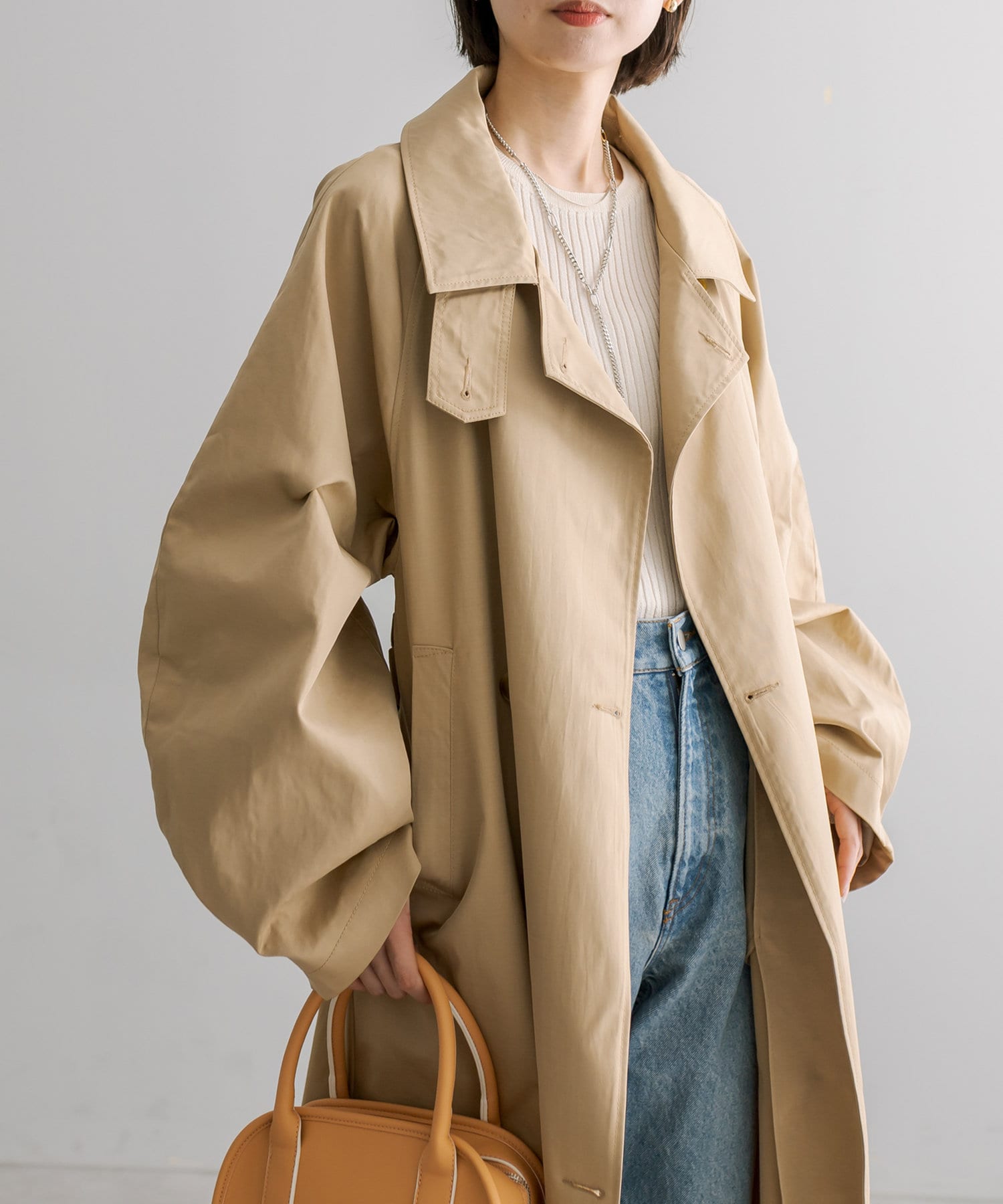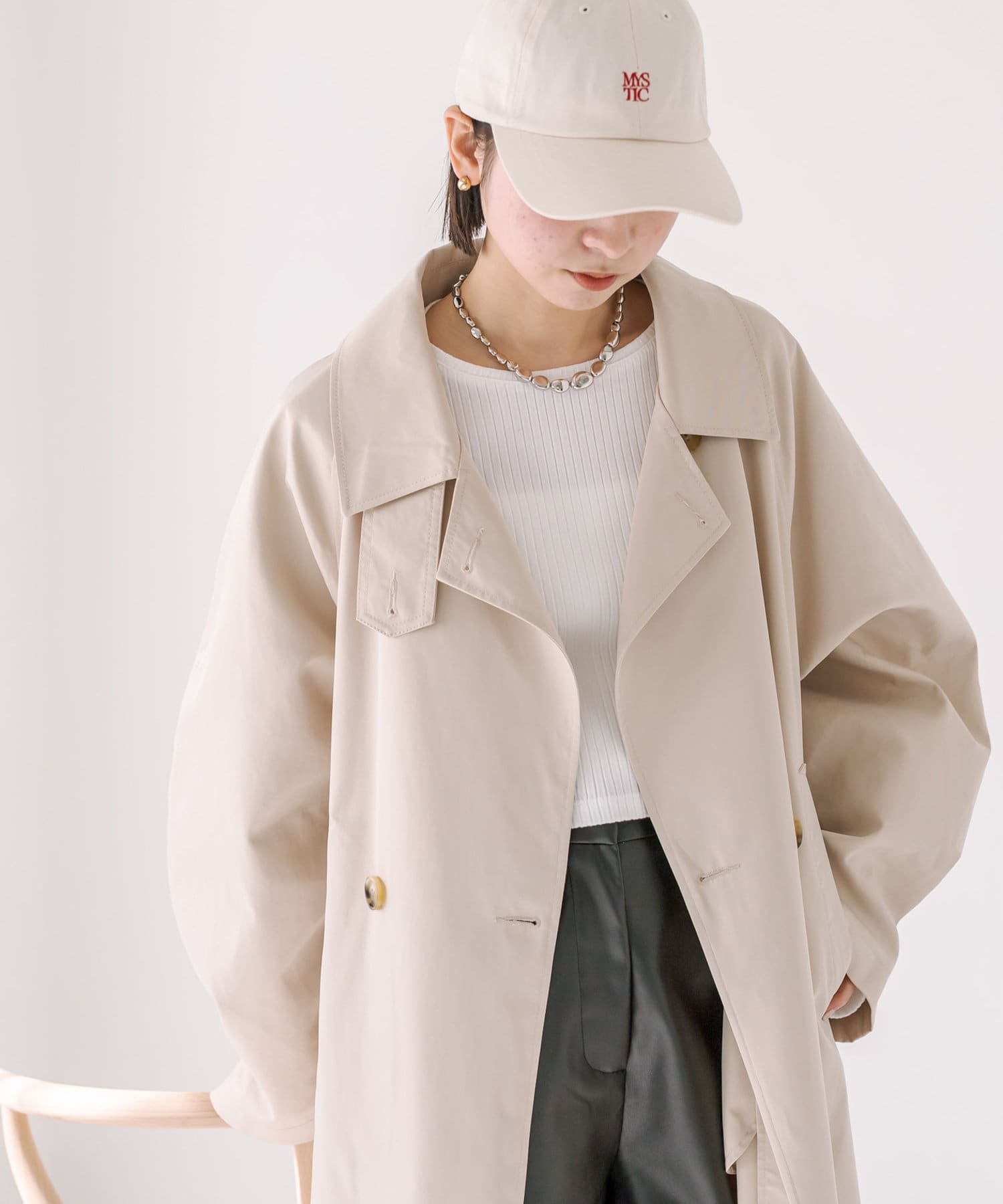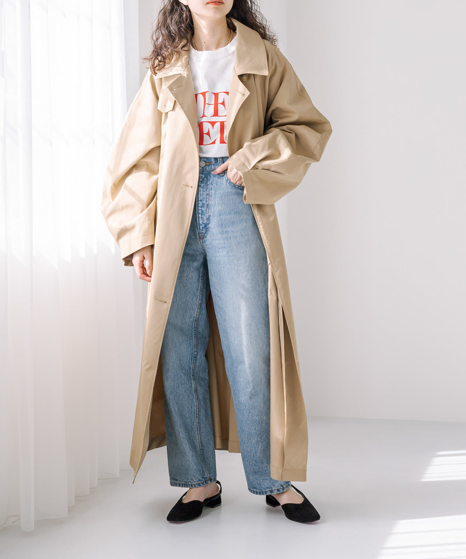 ・スタンドカラーのデザインが上品な印象に見せてくれるトレンチコート。