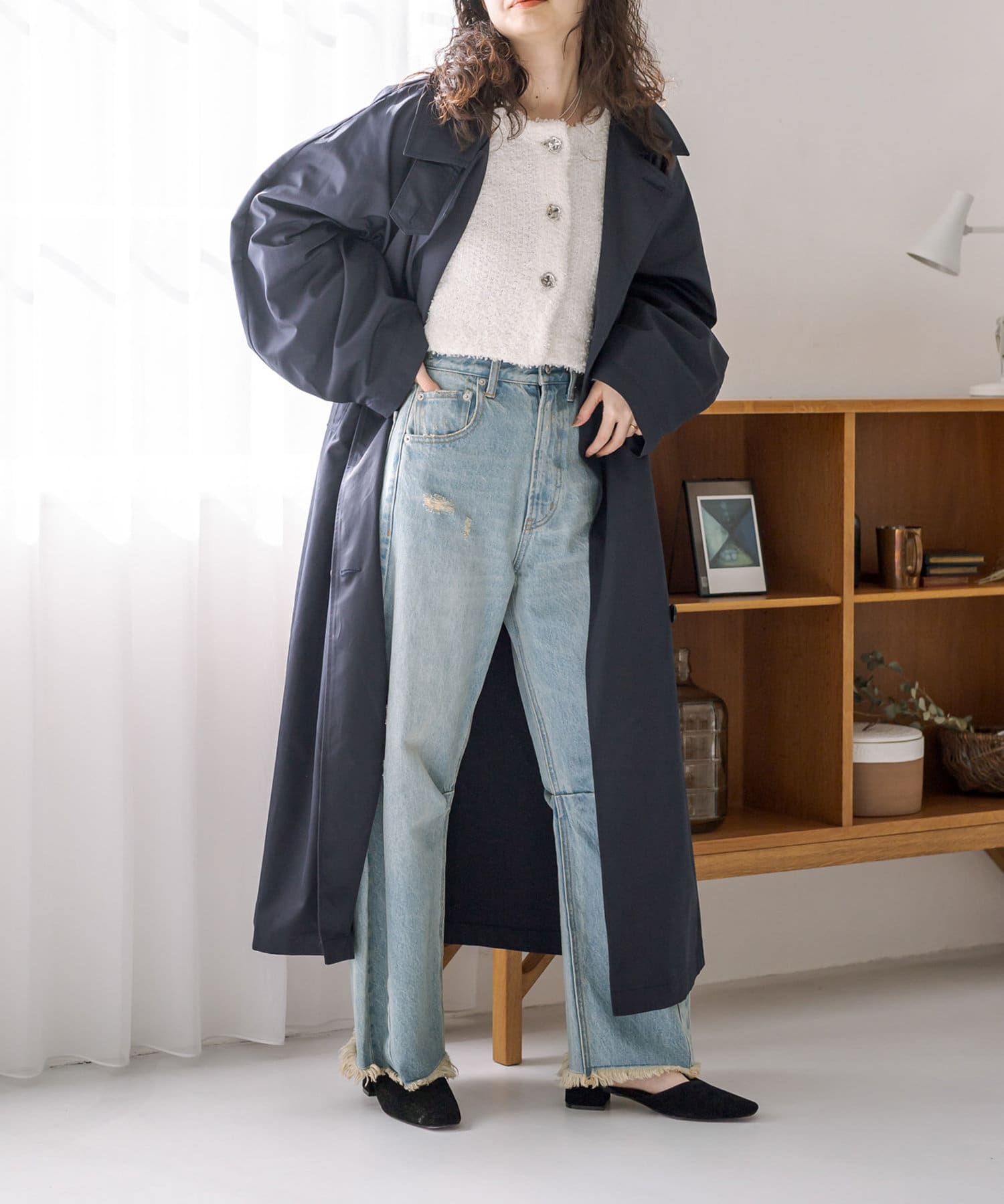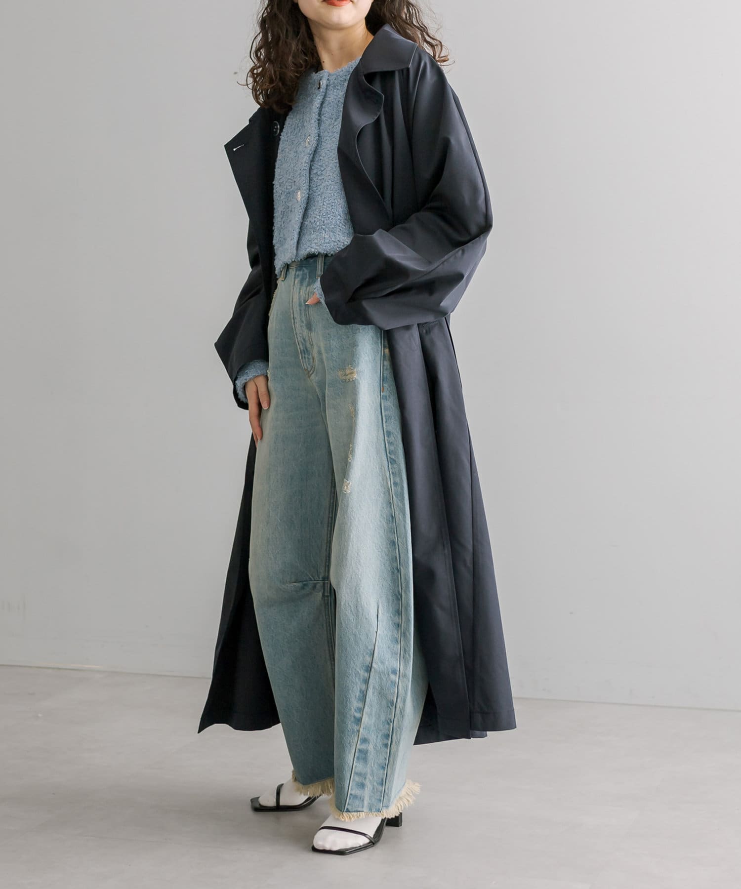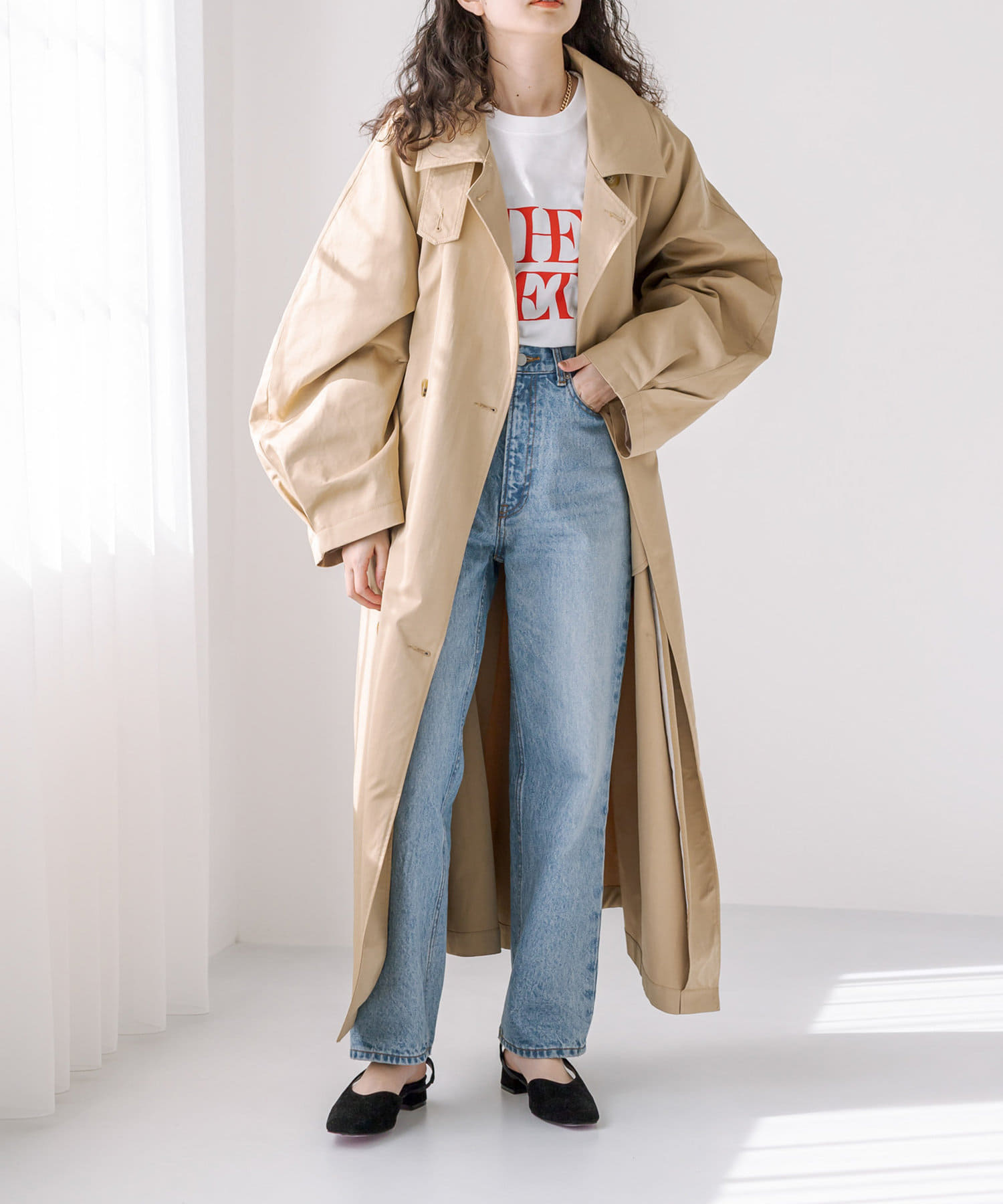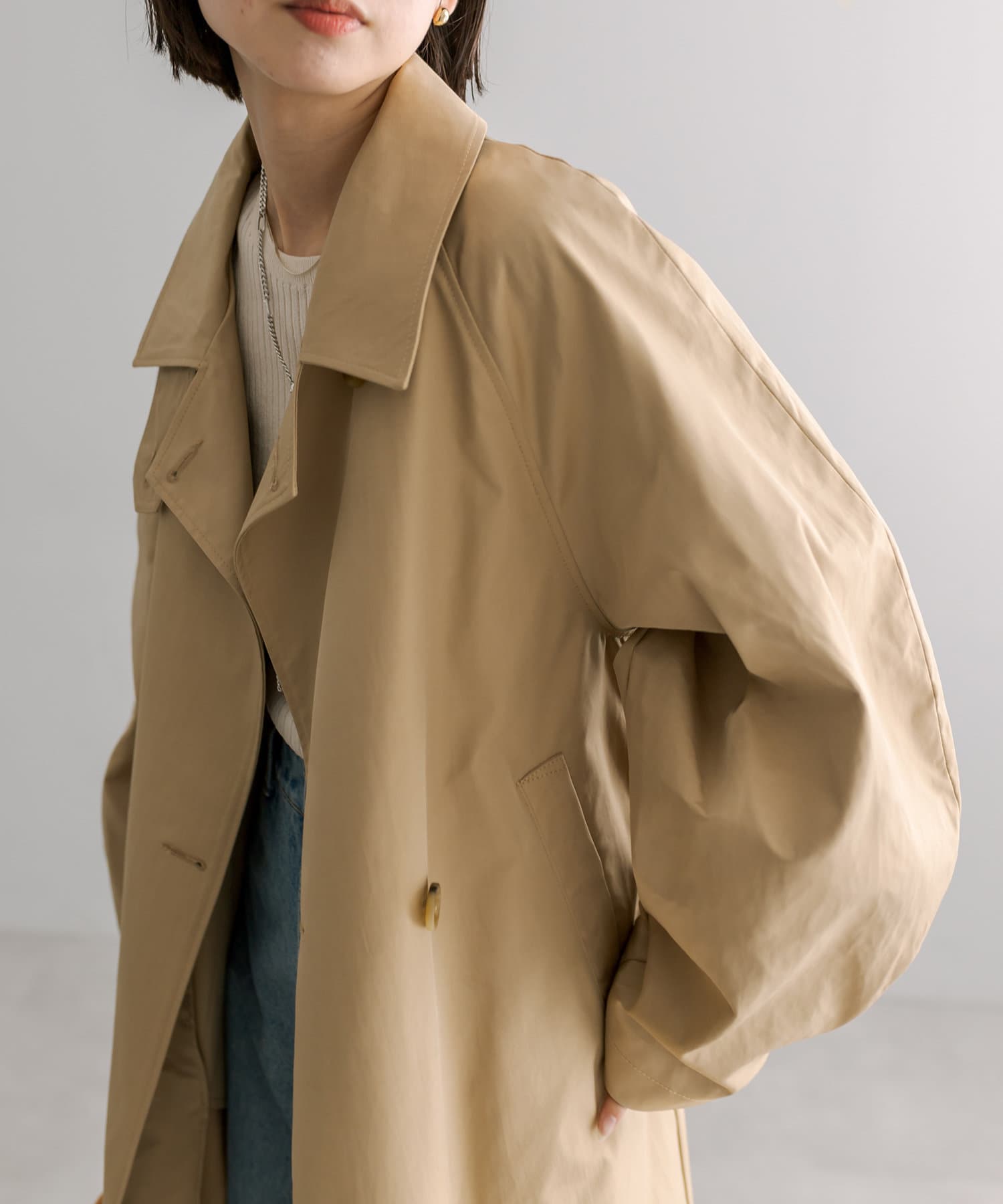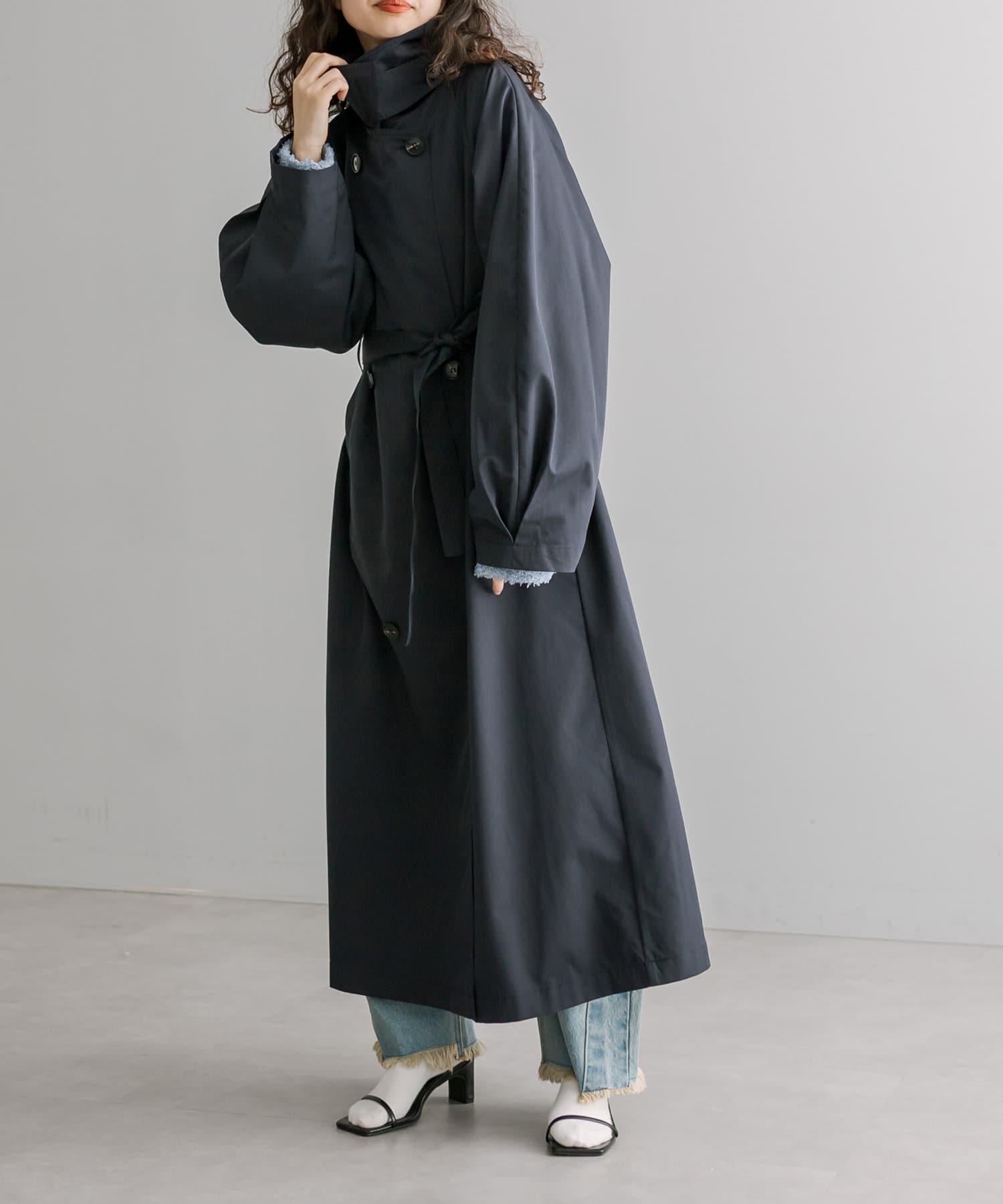 ・スタンドカラーのデザインが上品な印象に見せてくれるトレンチコート。