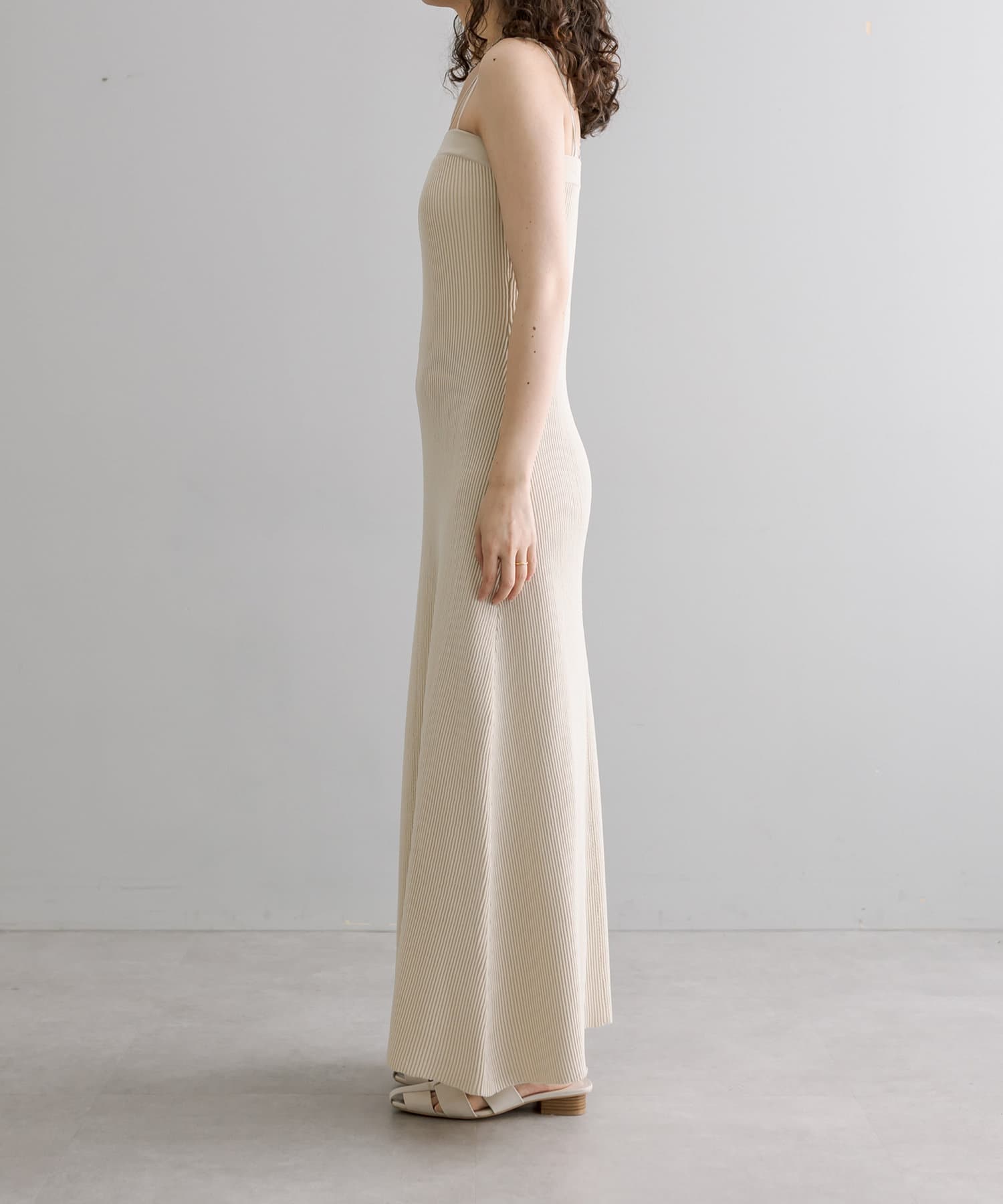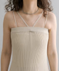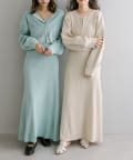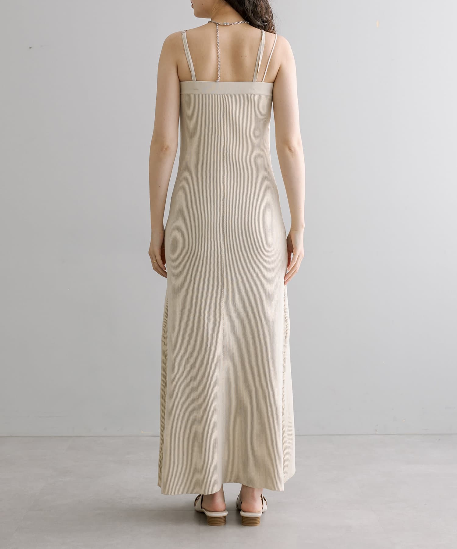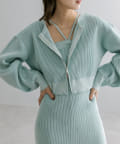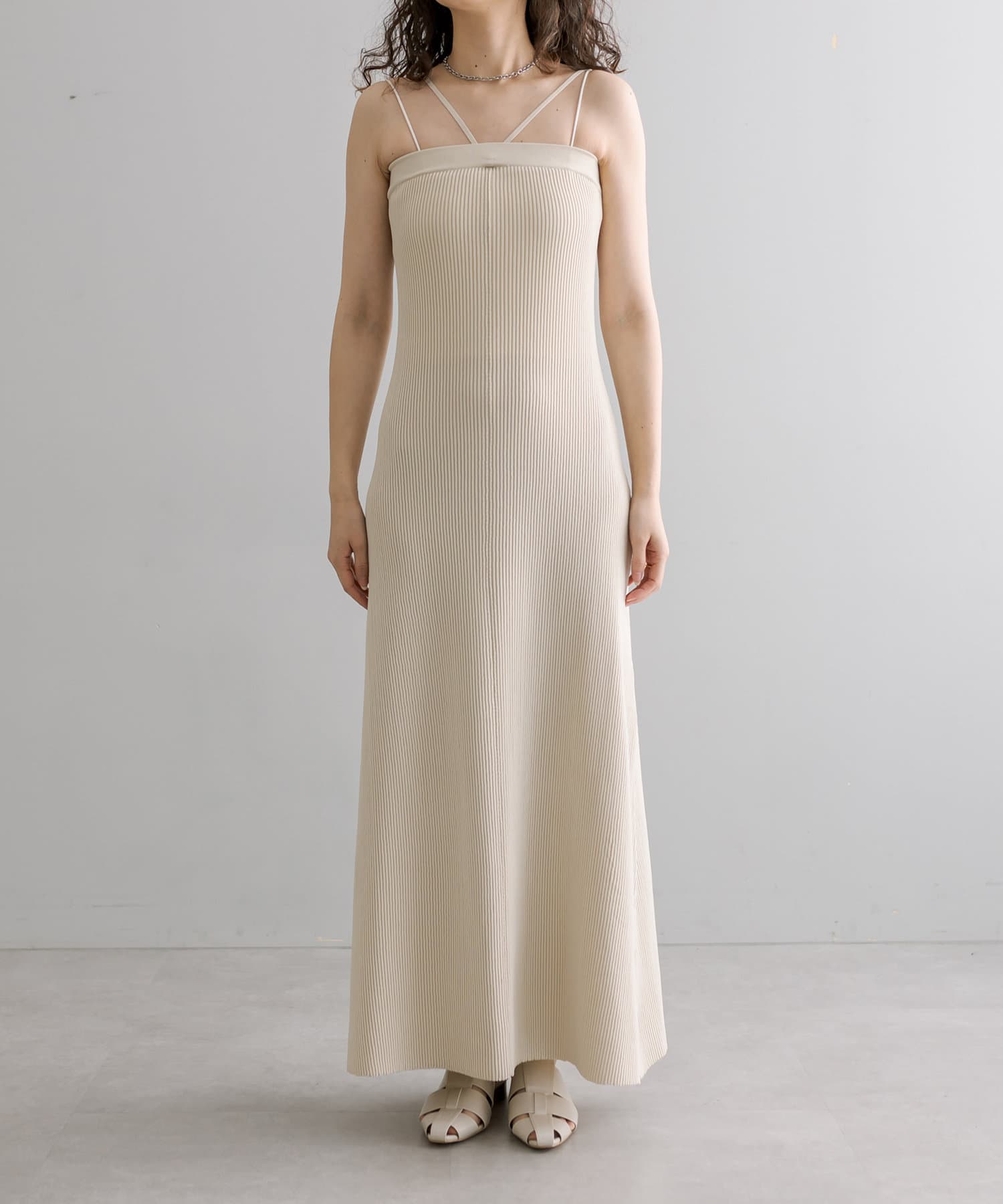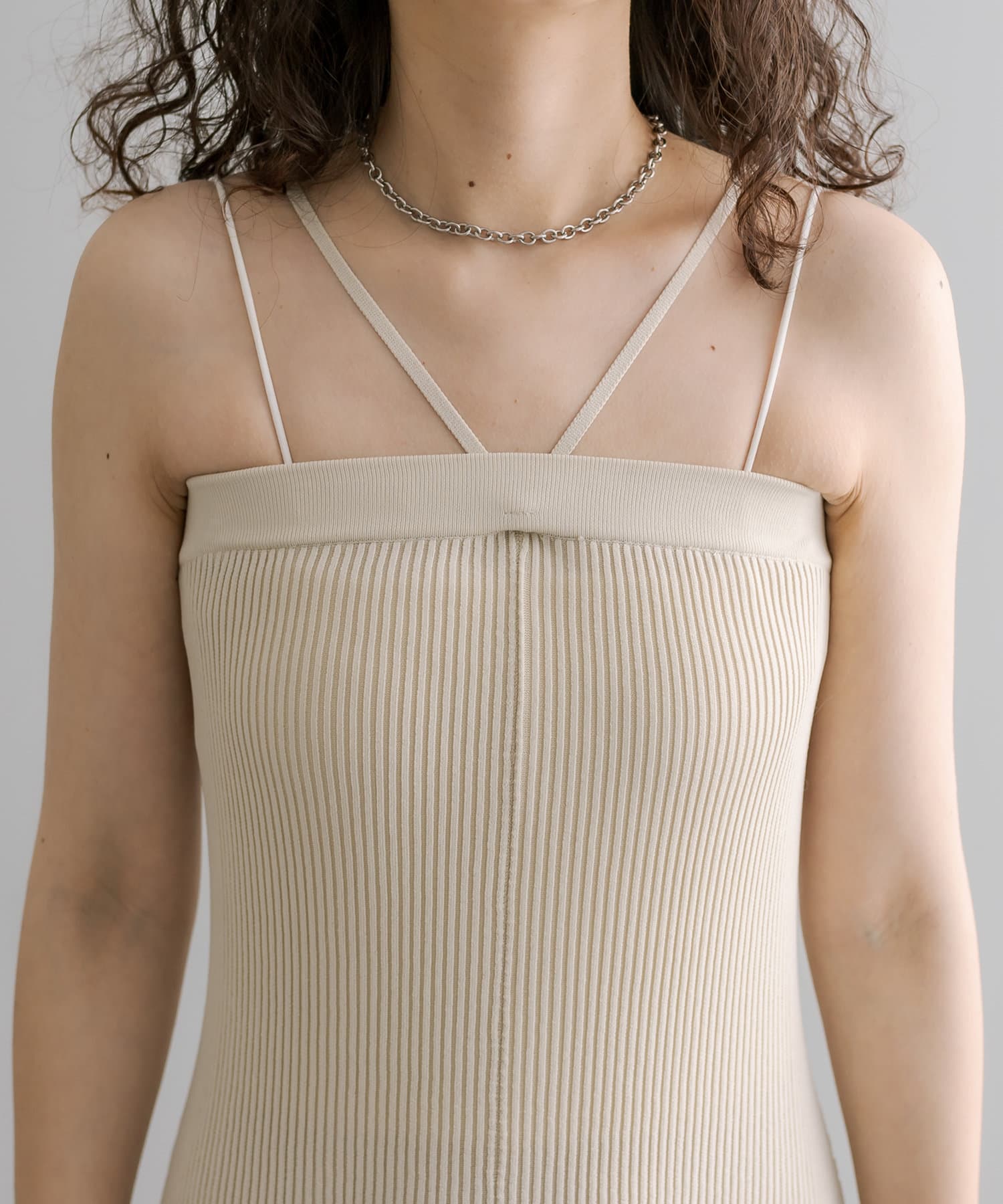 ・細身のリブデザインのロングワンピースとショートトップスがセットになったワンピース。