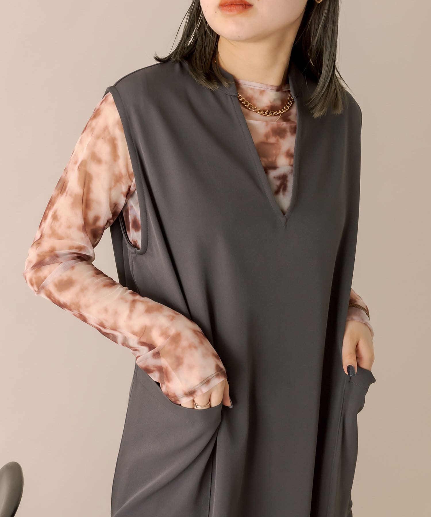 大人な印象に仕上がるレイヤードアイテムとしてもオススメのベストワンピース!