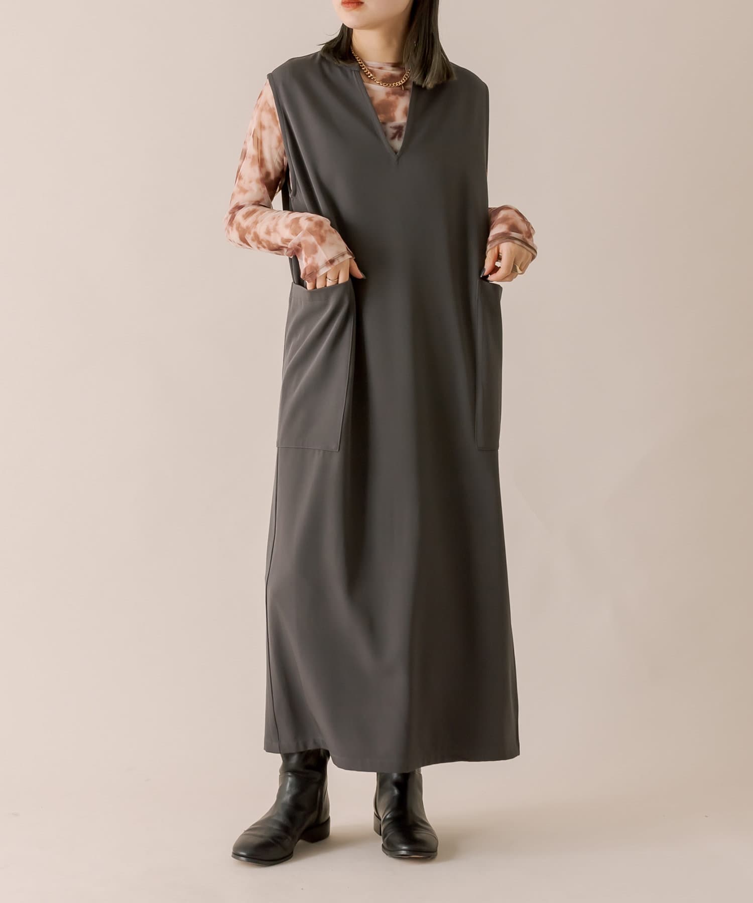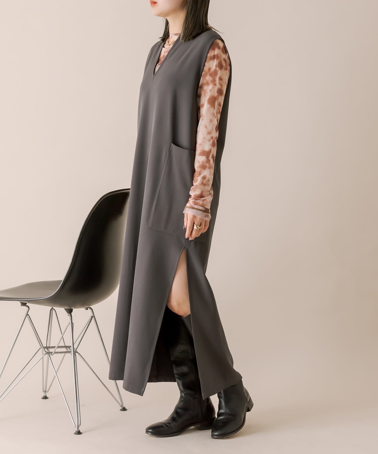 大人な印象に仕上がるレイヤードアイテムとしてもオススメのベストワンピース!