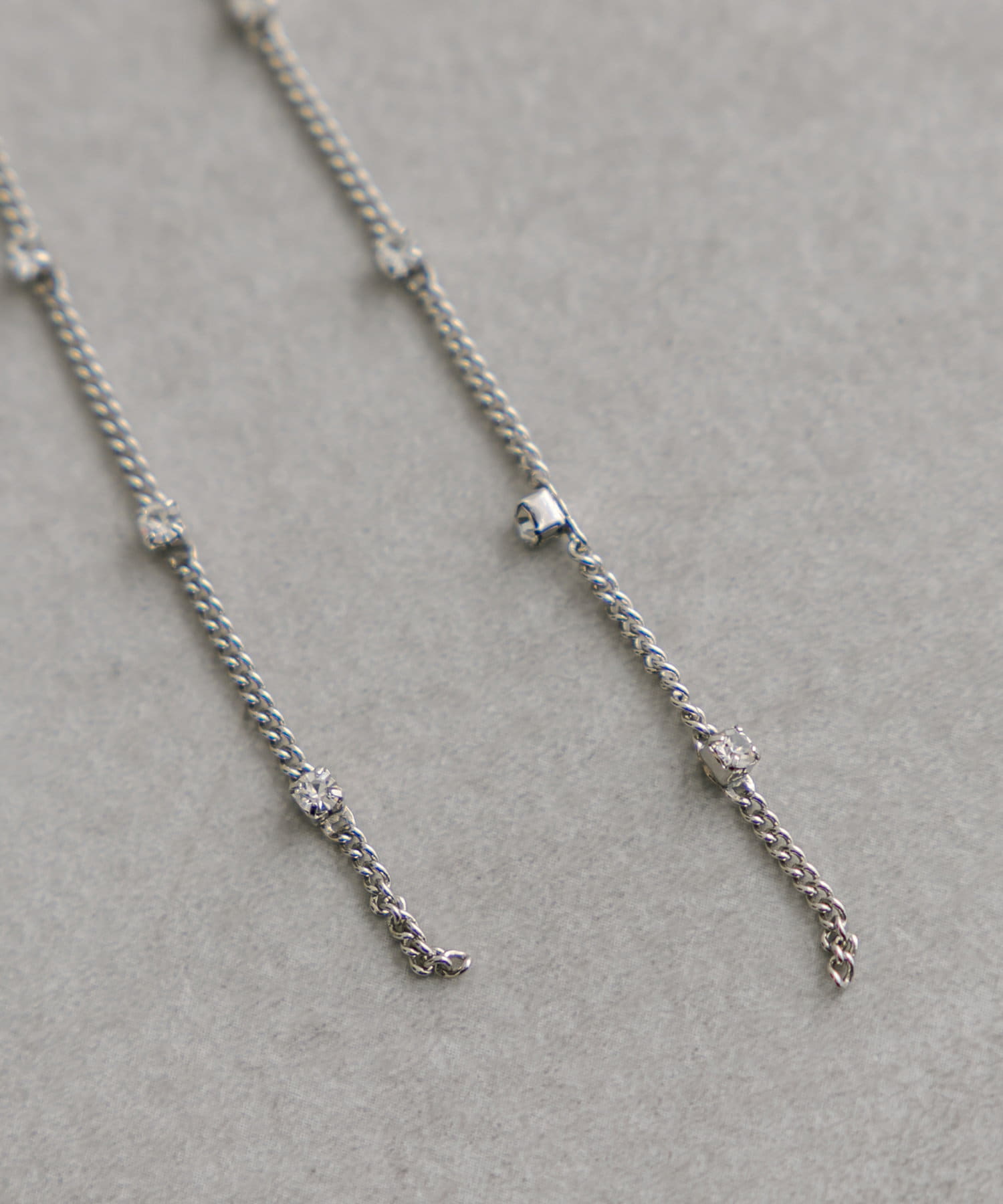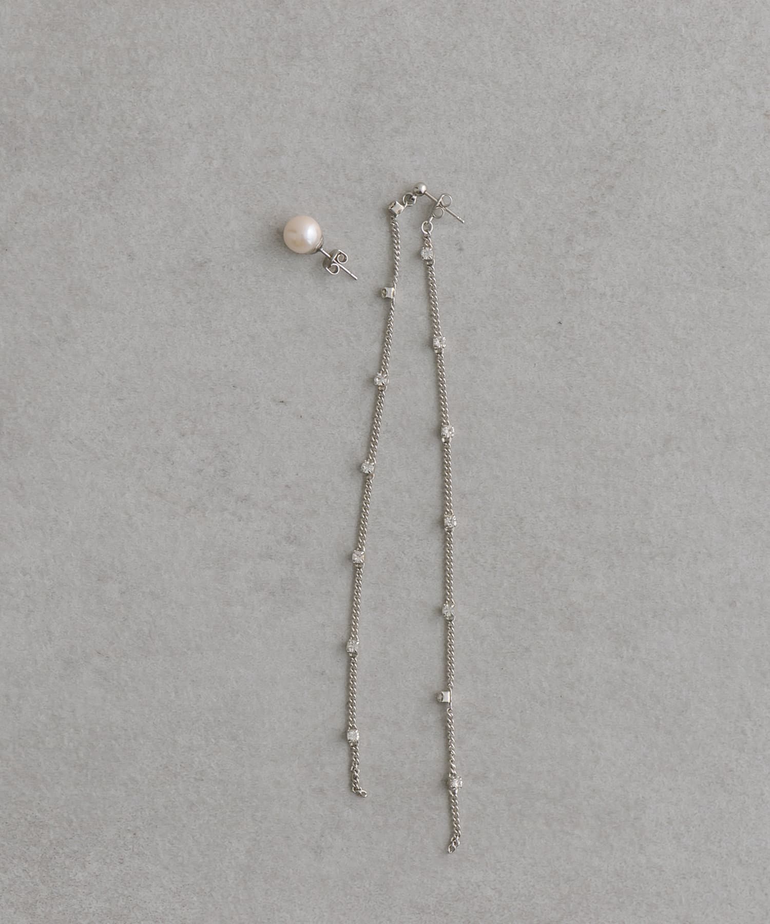 ・華奢なロングチェーンとコンパクトなパールの左右異なるデザイン。